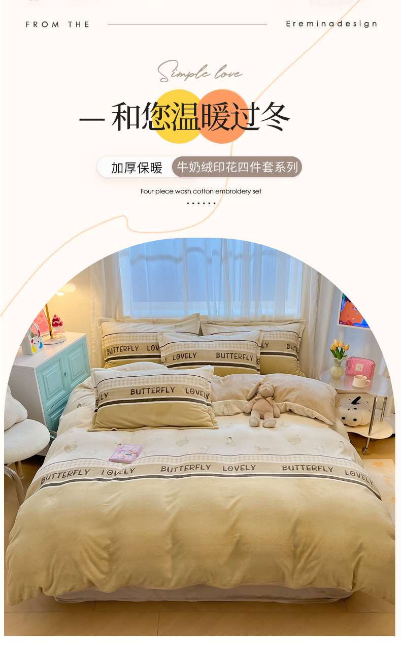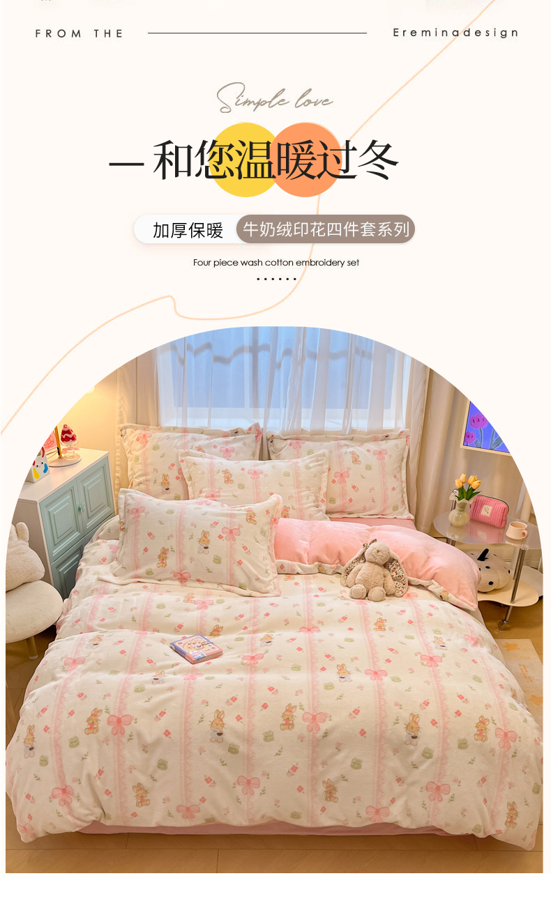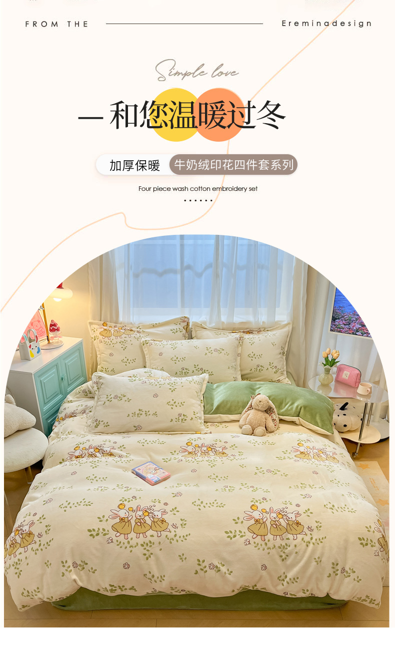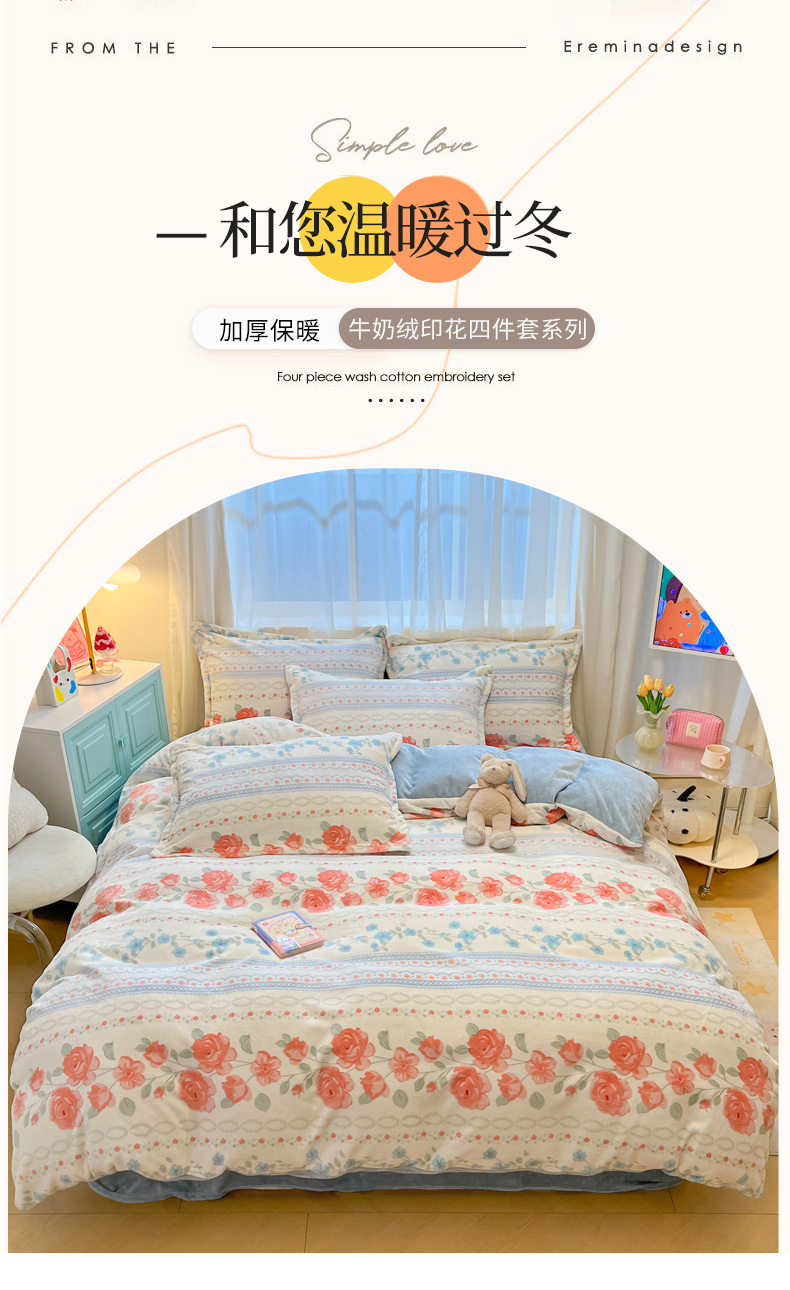 牛奶绒保暖三件套/四件套 可以裸睡的牛奶绒 舒适又安心