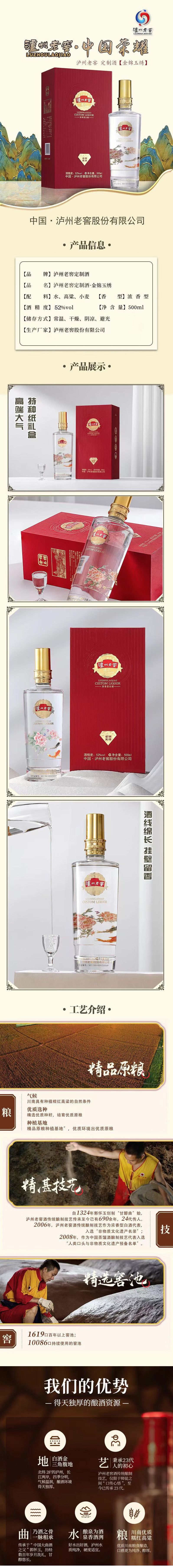 【福利好价】泸州老窖 金锦玉绣 浓香型白酒 52度/42度 500ml*6原箱