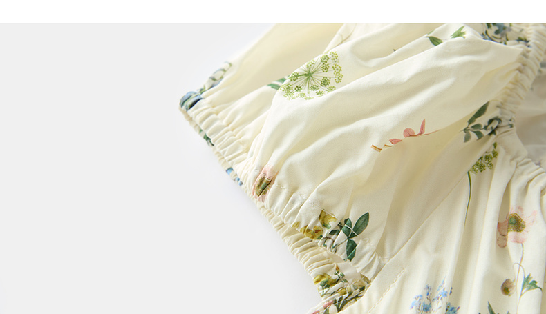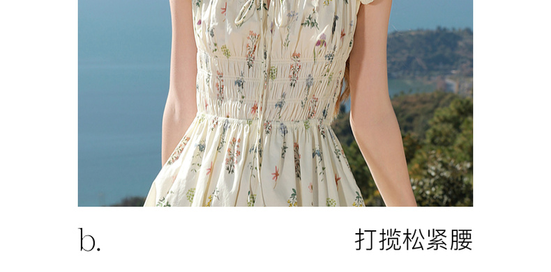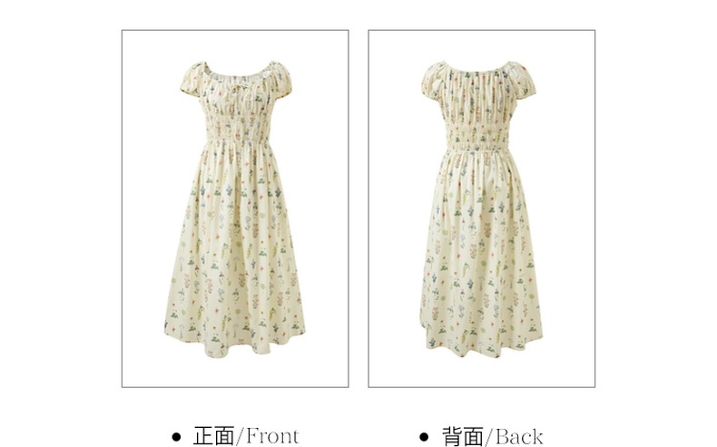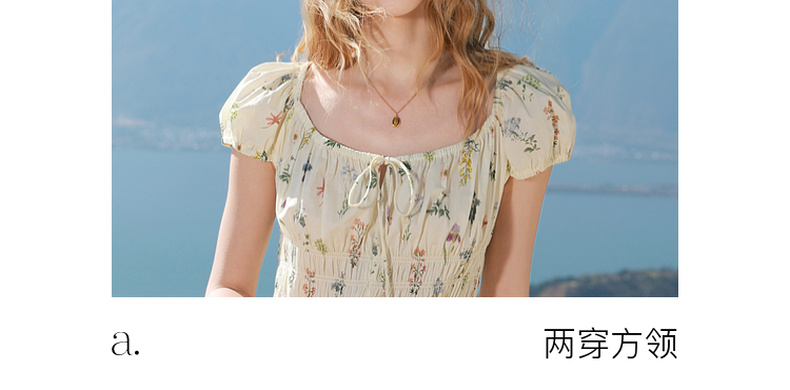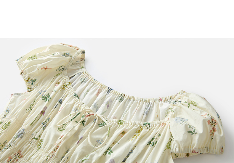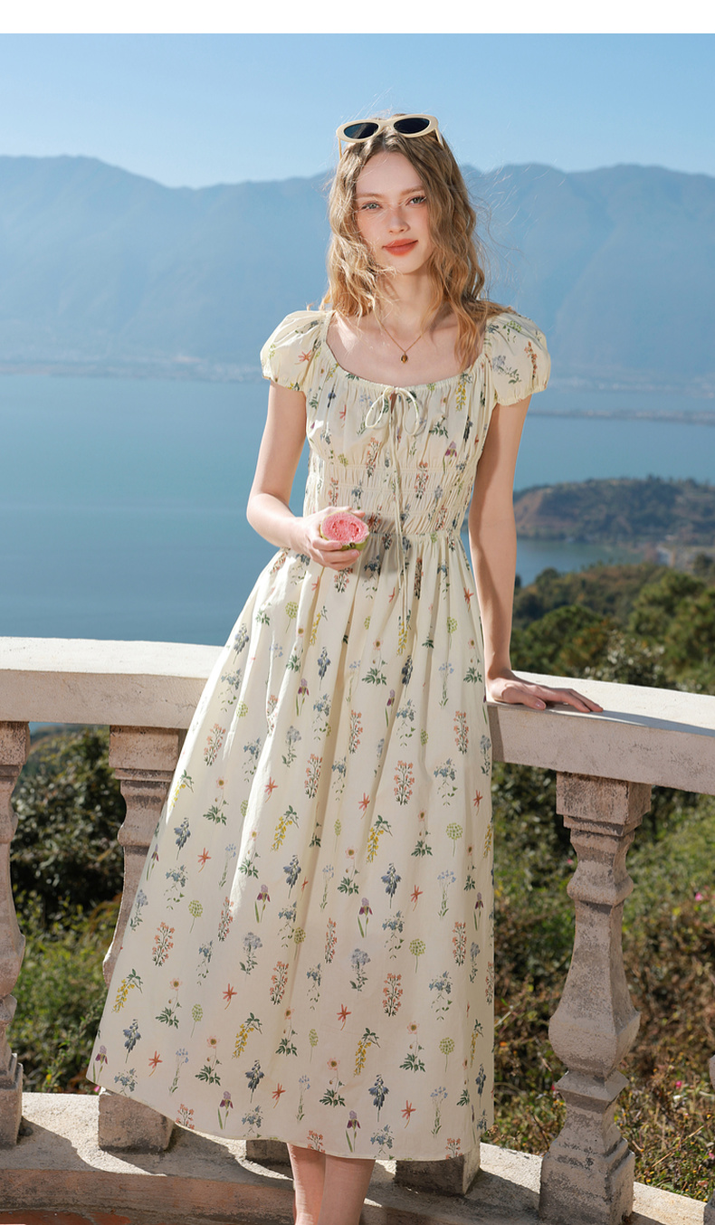 【100棉】三彩2026春季新款系带方领碎花裙法式连衣裙长裙浪漫M
