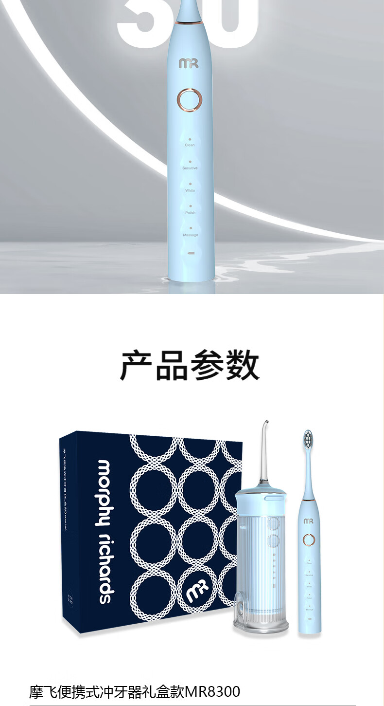 摩飞(MORPHYRICHARDS) 冲牙器洗牙器水牙线洁牙器家用便携抽拉水箱清洁器手持立式设计 节日礼物企业礼品冲牙器礼盒款-白色MR8300