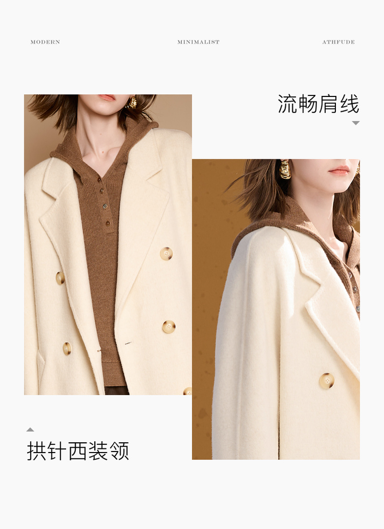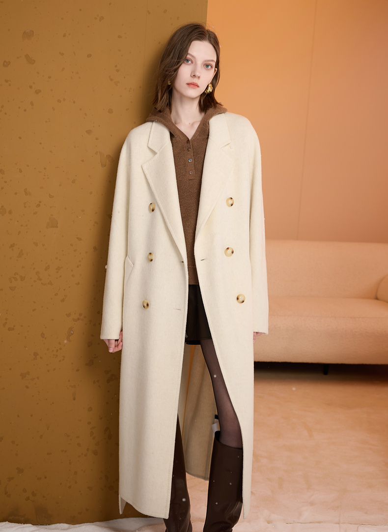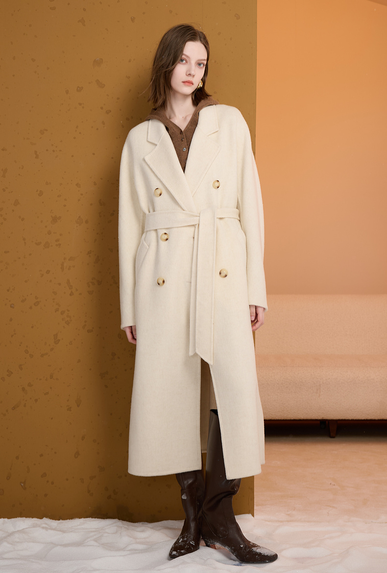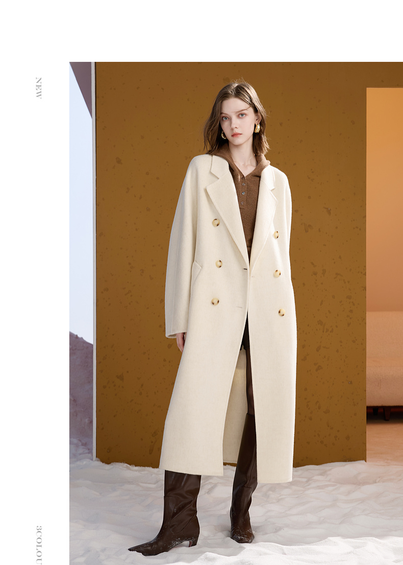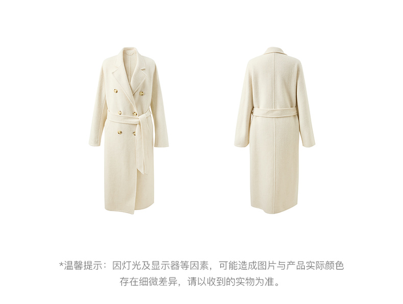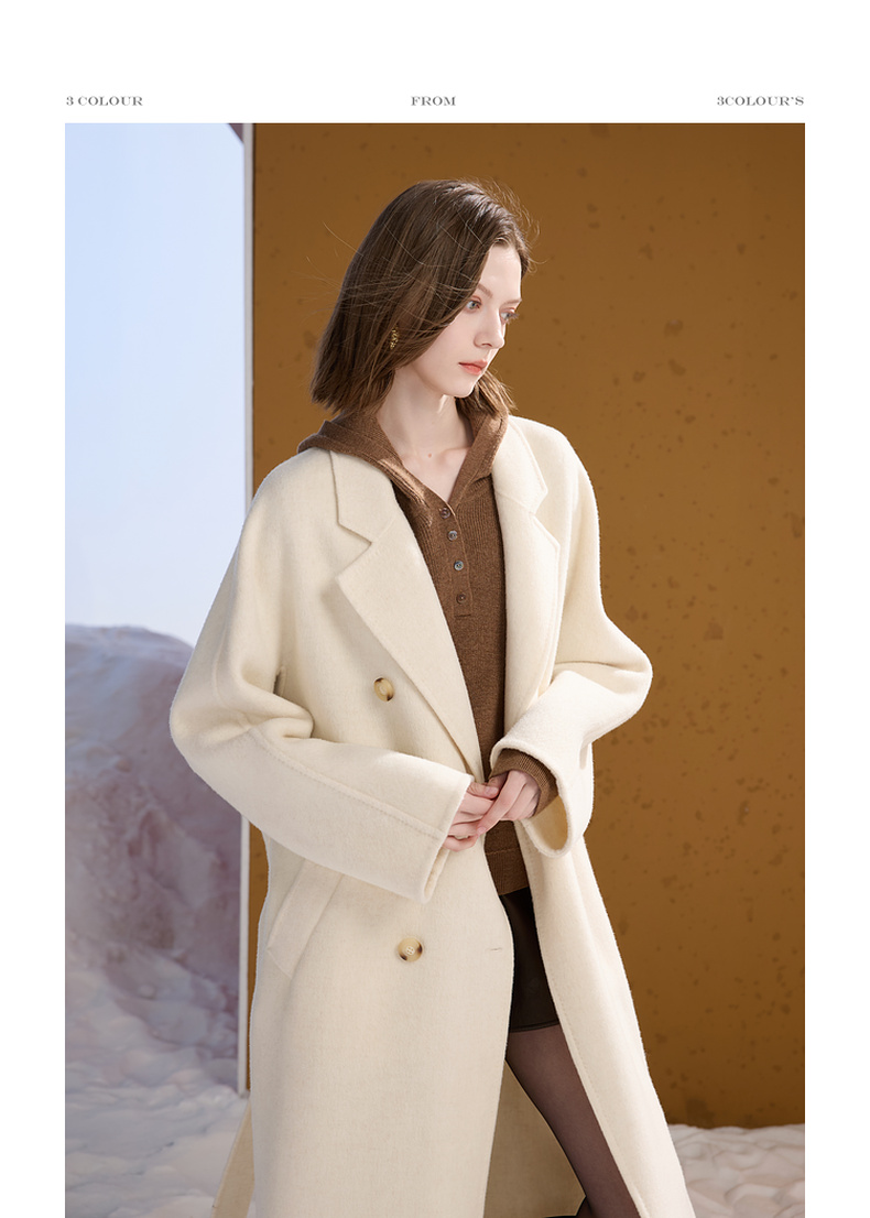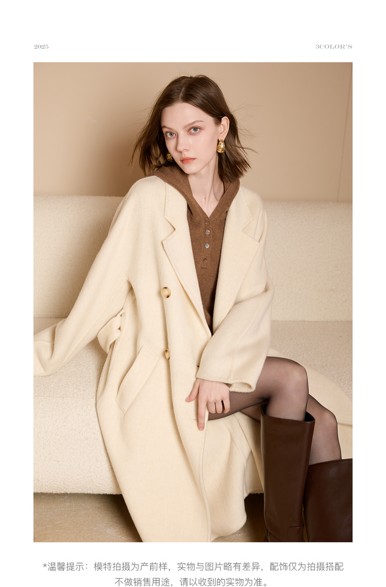 【100绵羊毛】三彩2025冬季新款双面呢大衣毛呢外套长款S