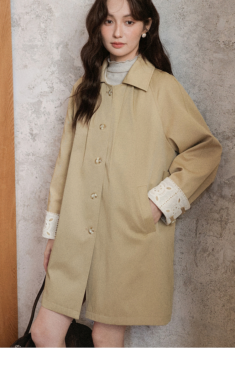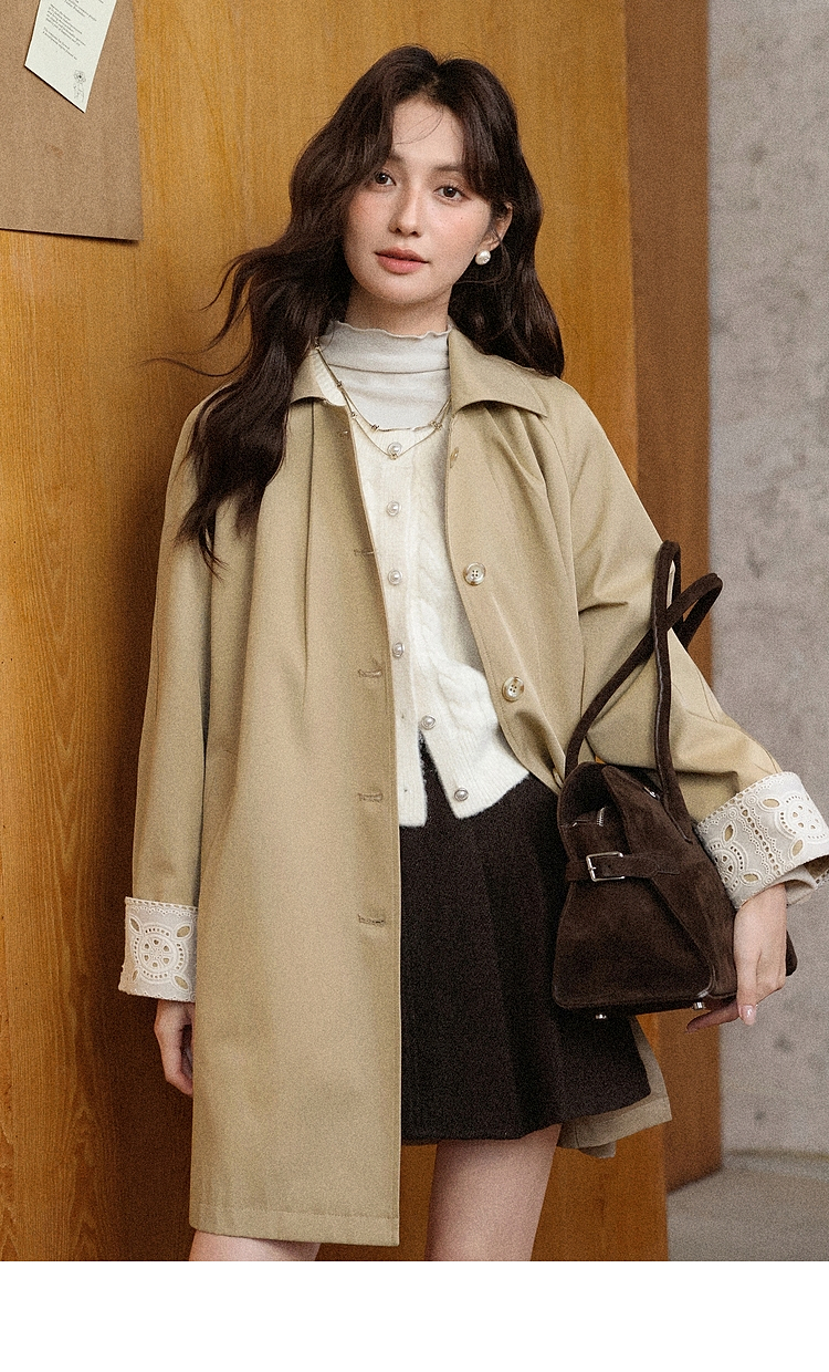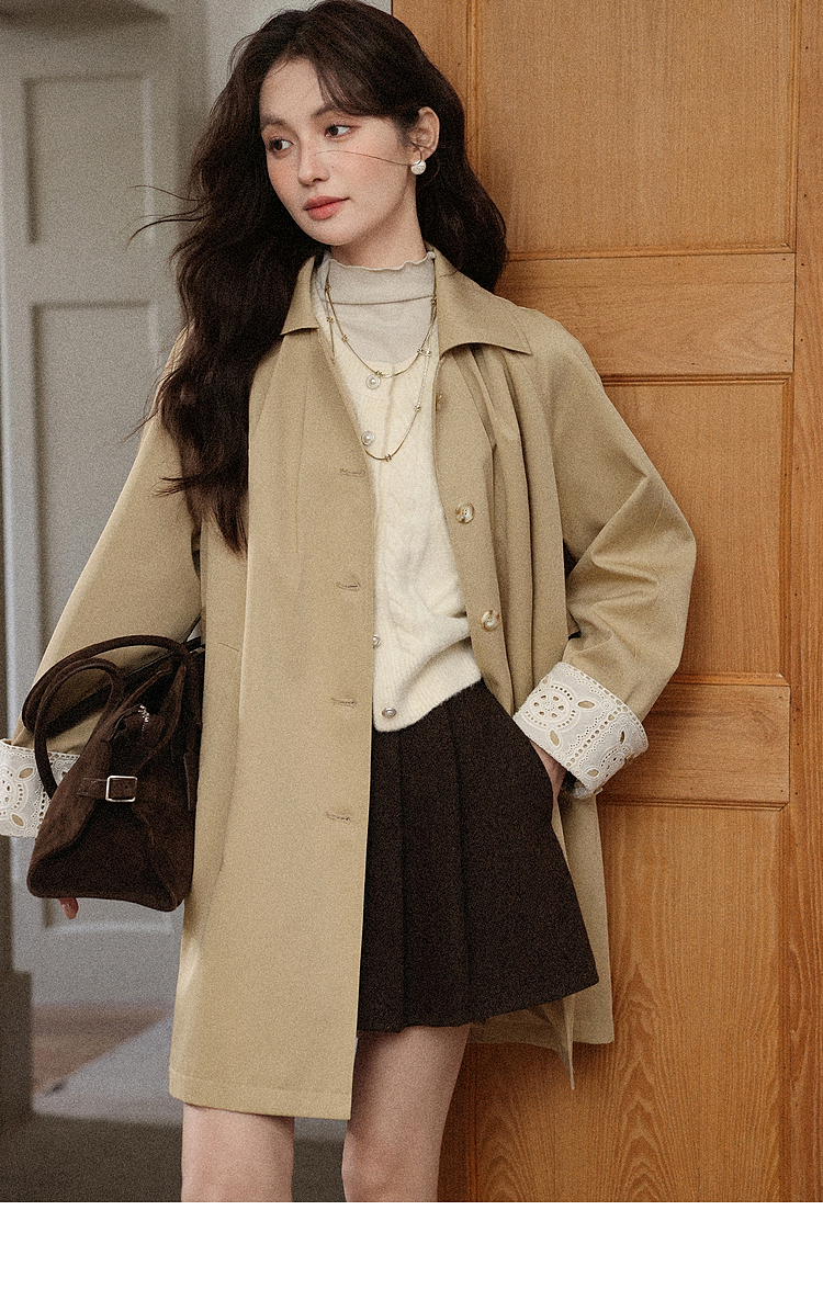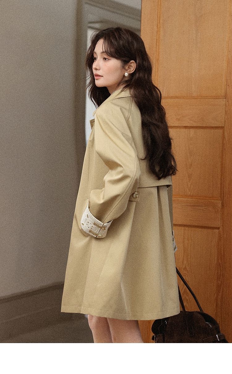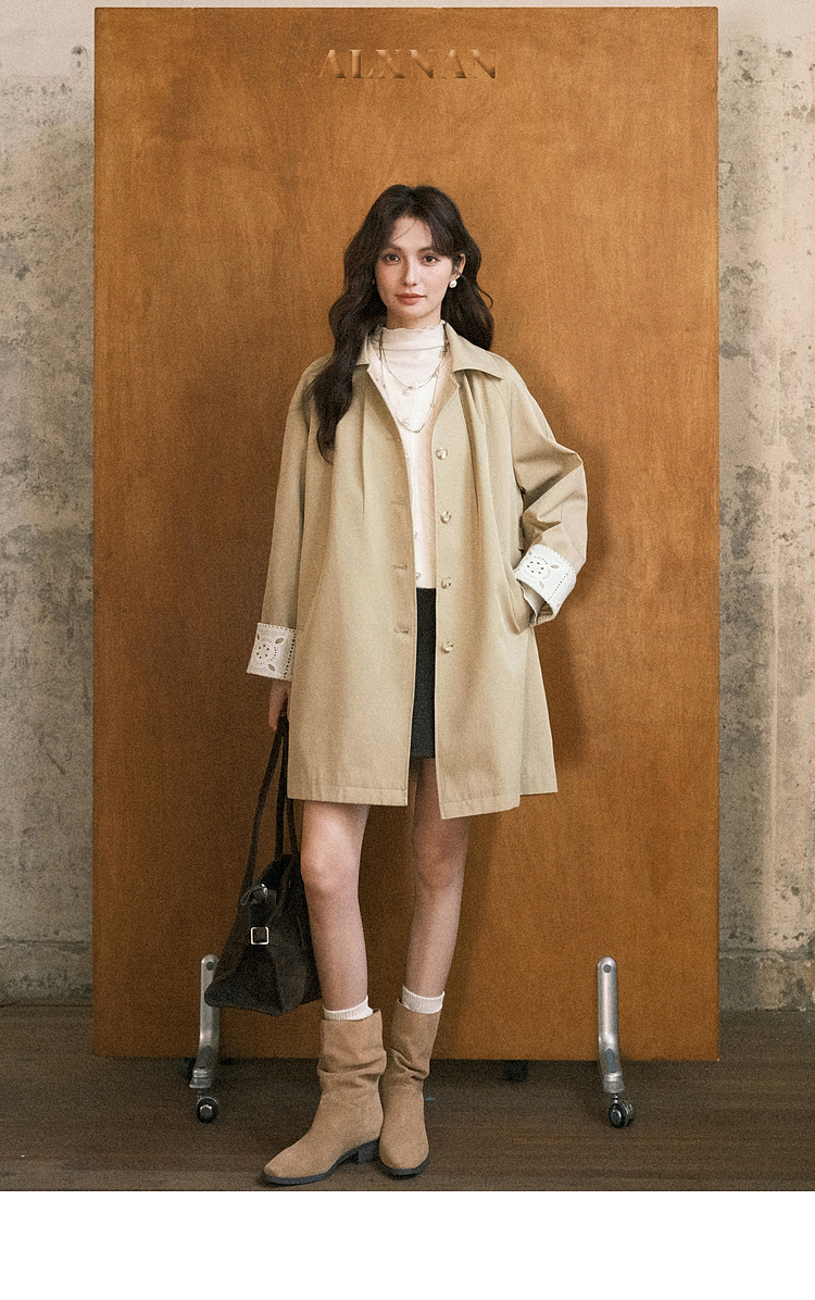 【6折秒杀】鹿向南「秋日入场券」卡其色中长款风衣女秋季新款洋气英伦风外套L57531