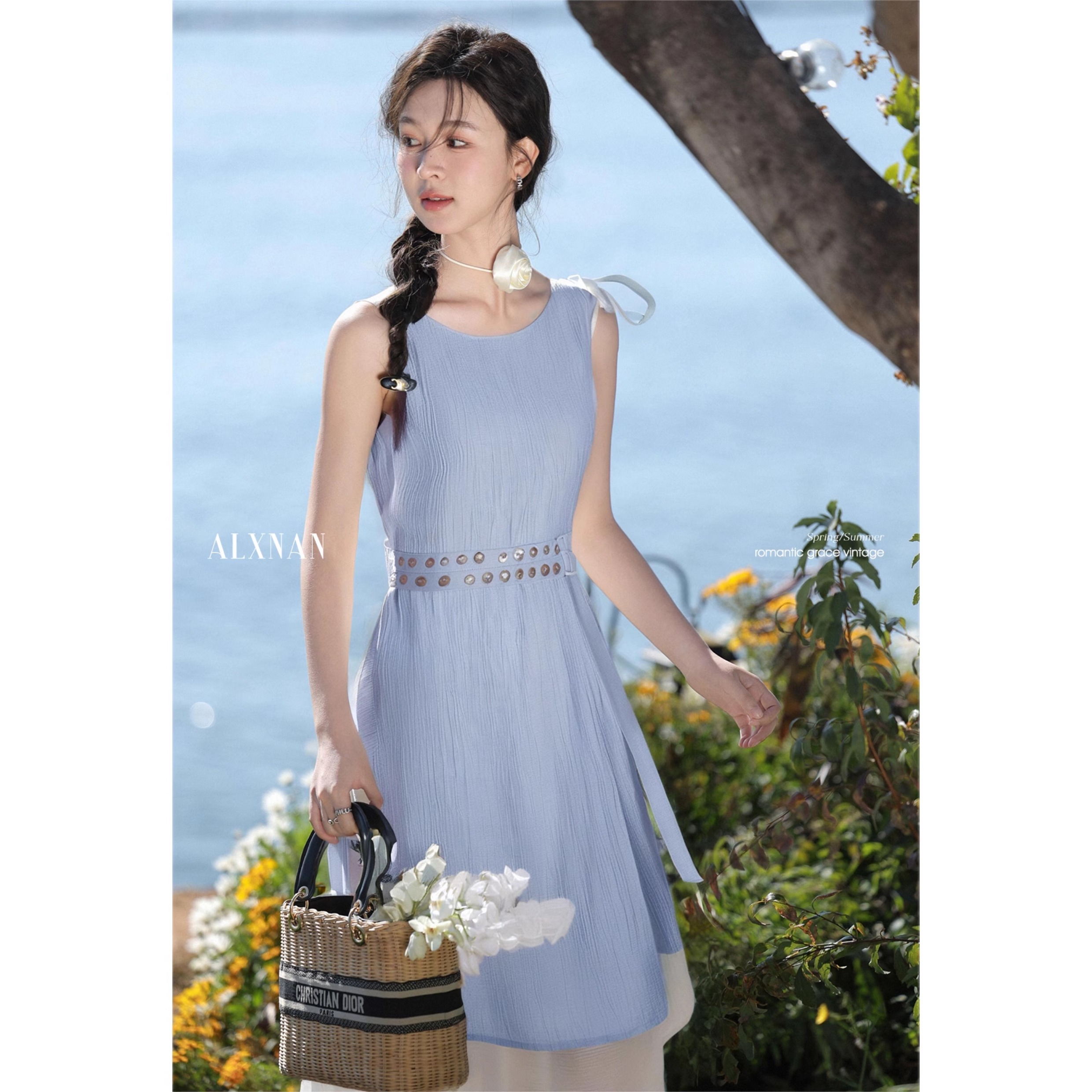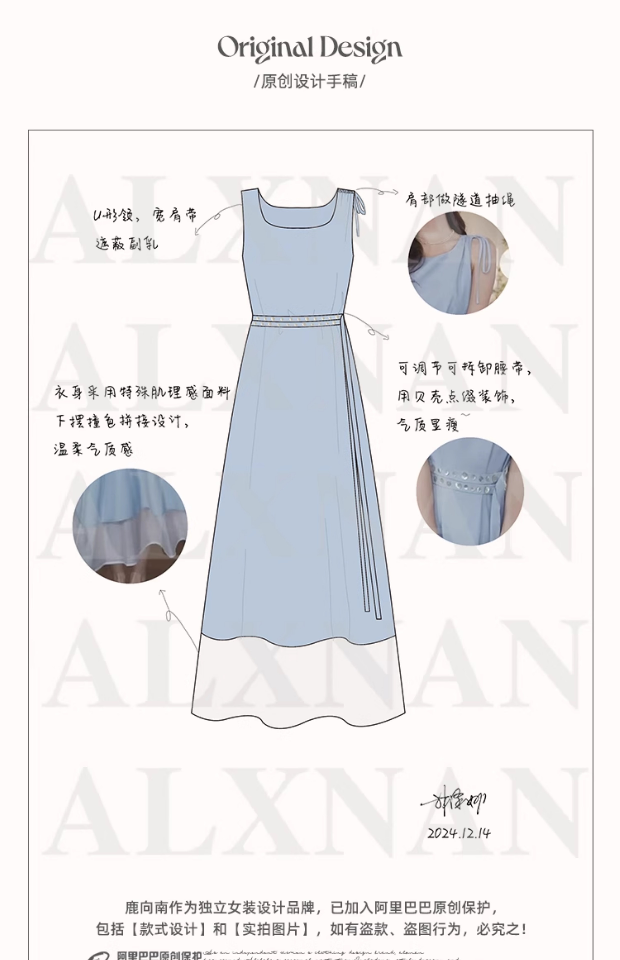 鹿向南《蔚蓝夜旅人》法式假两件时尚2025秋季连衣裙女新款长裙子LXN273183