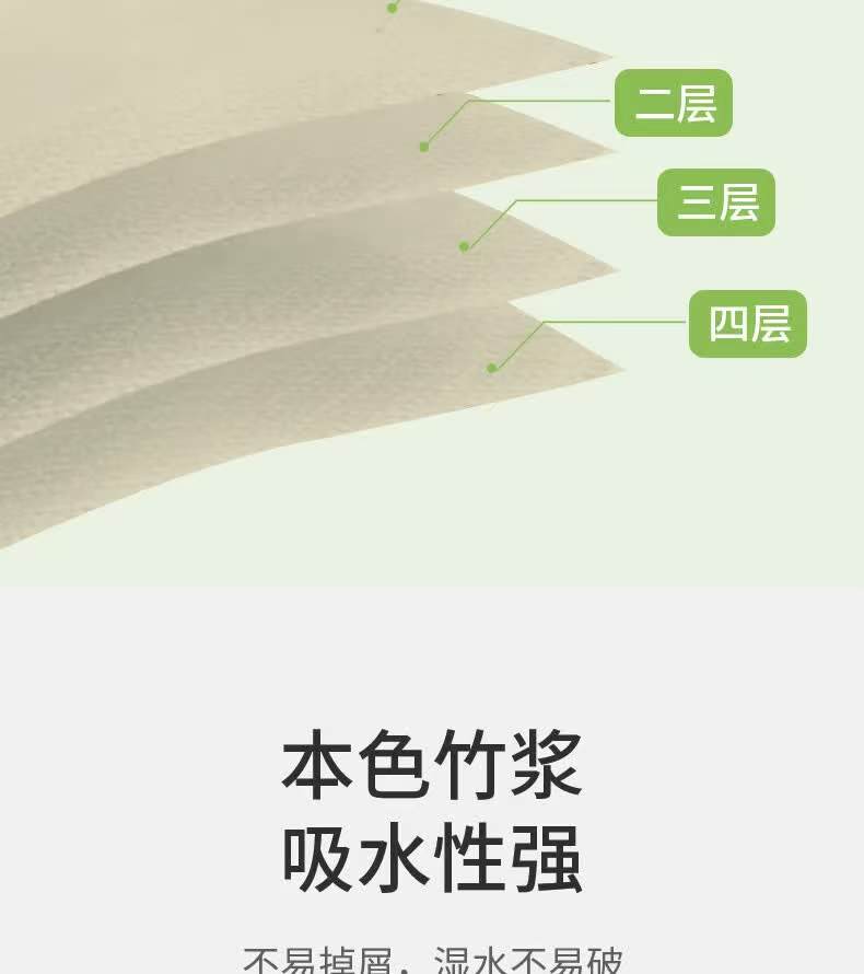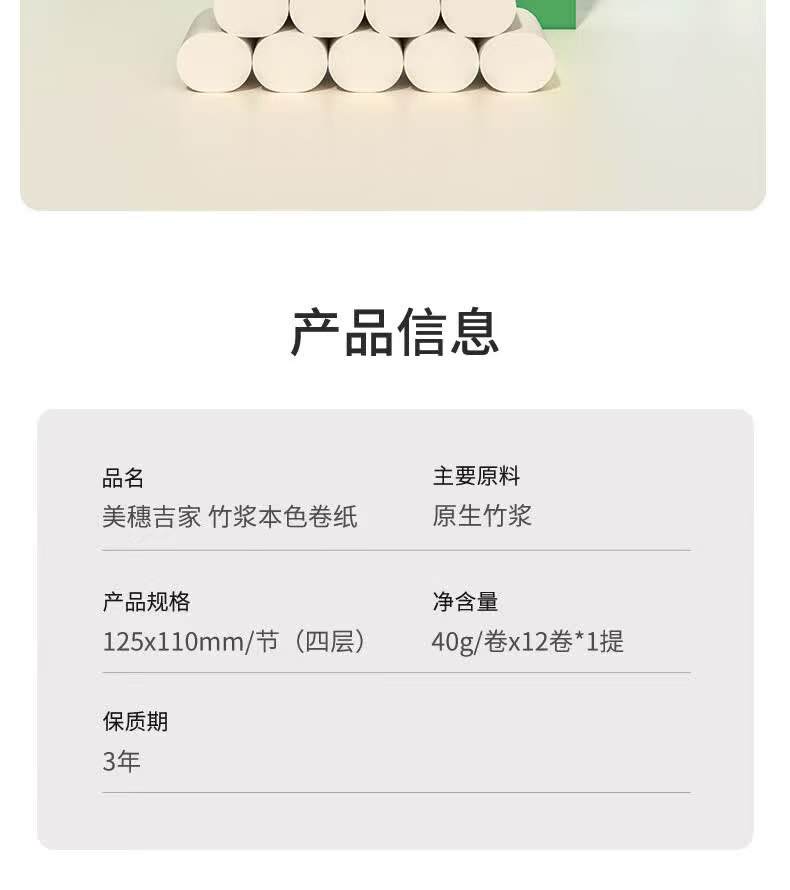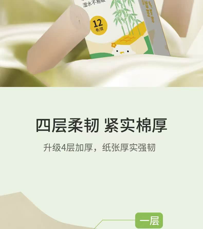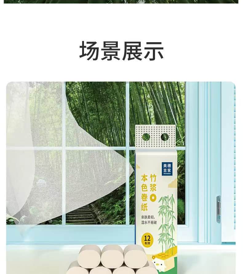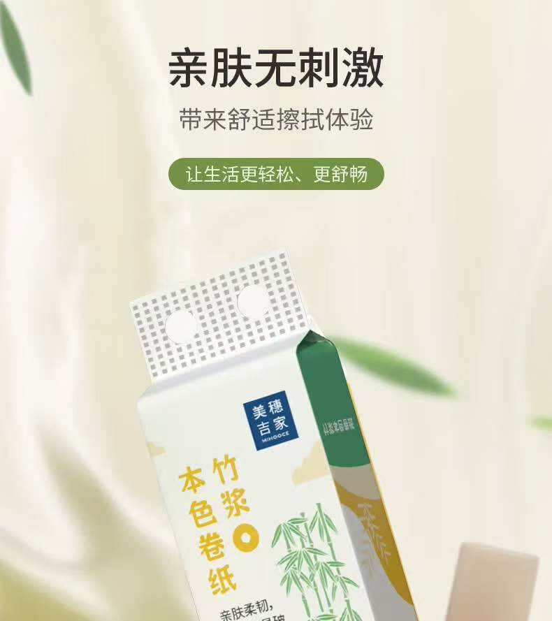 美穗吉家(mihooce)本色竹浆卷纸 4层加厚 卫生纸卷筒纸 纸巾 40g/卷*12卷/提(
