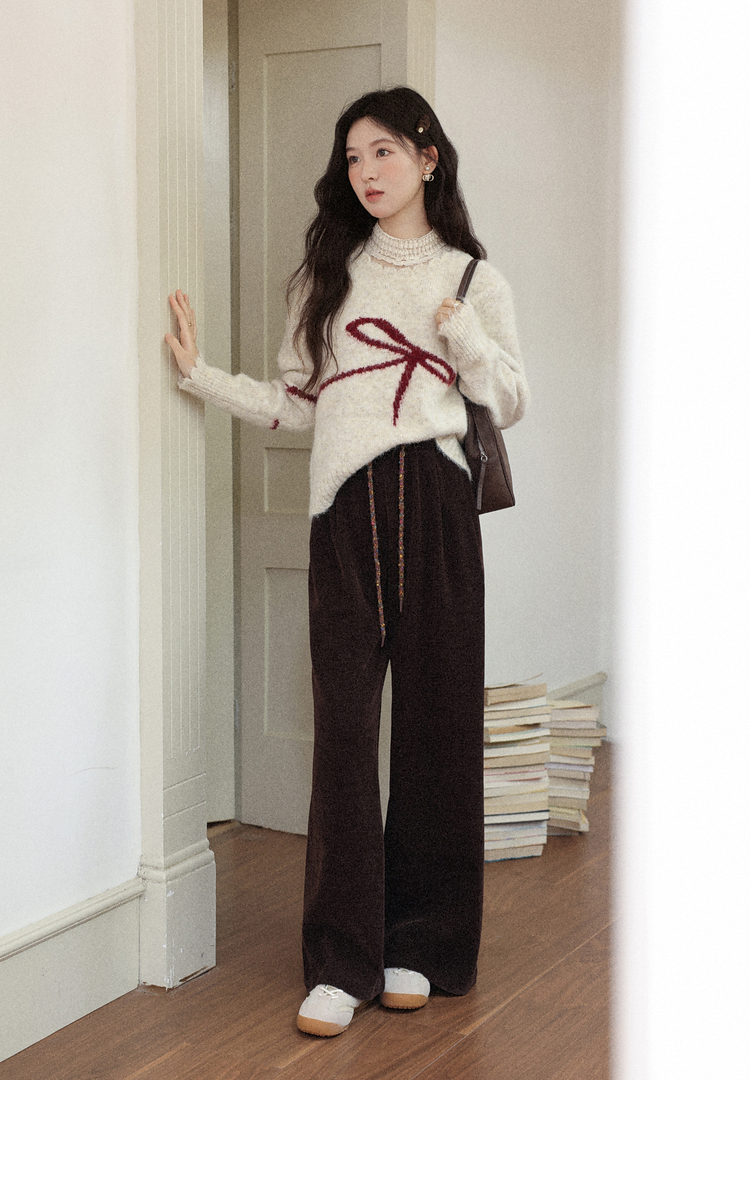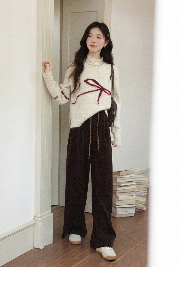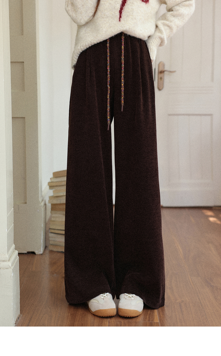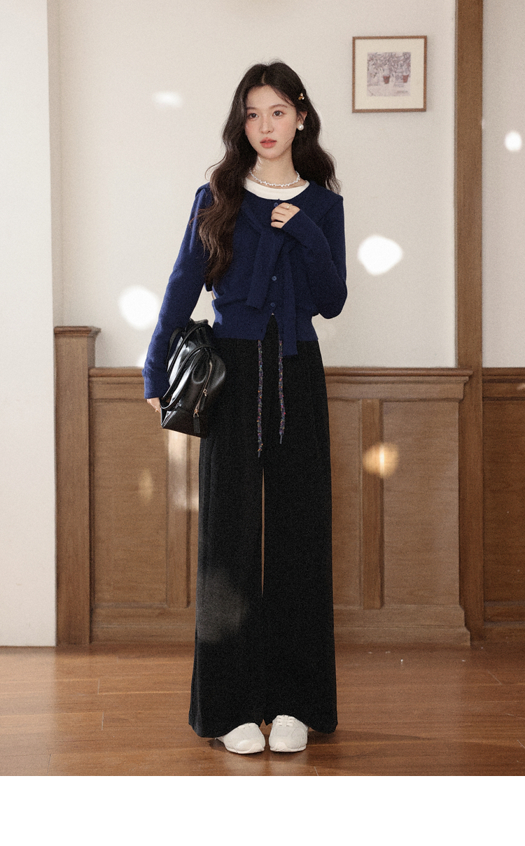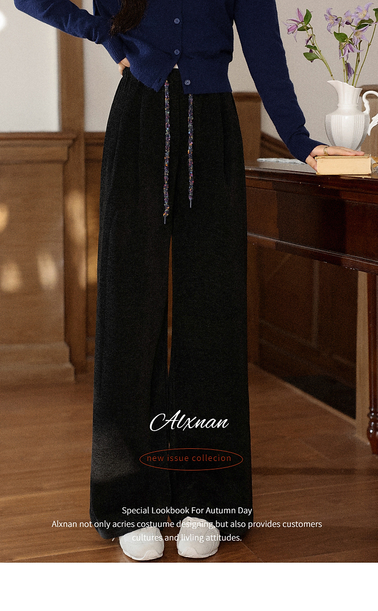 鹿向南「烛光私语」黑色垂感高腰休闲裤女秋季巨显瘦直筒宽松长裤