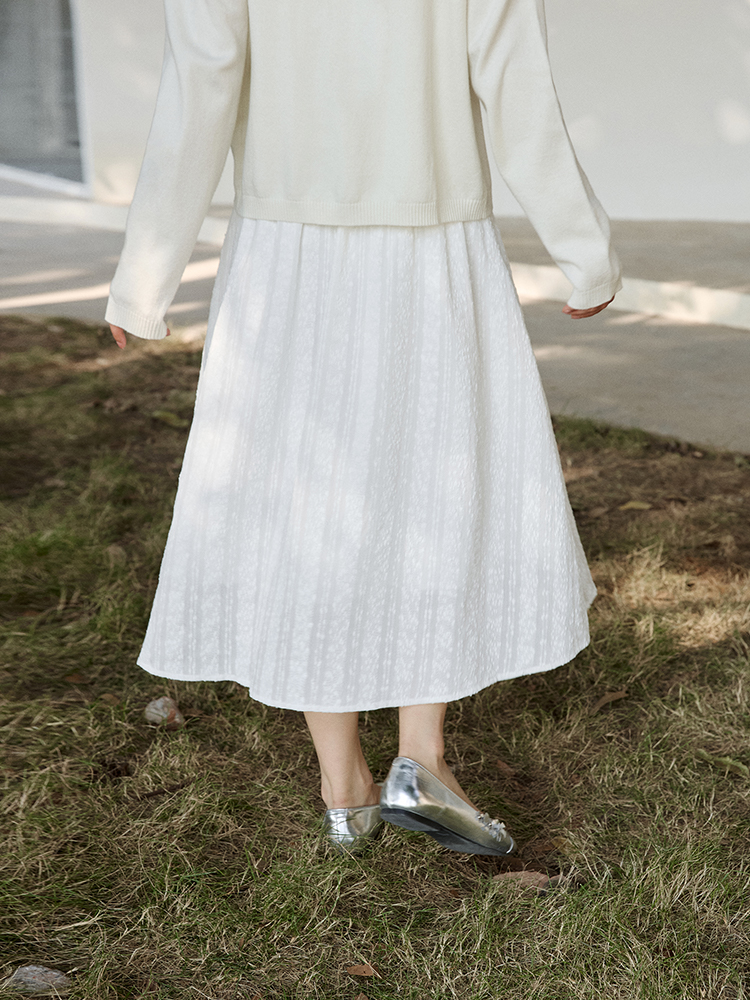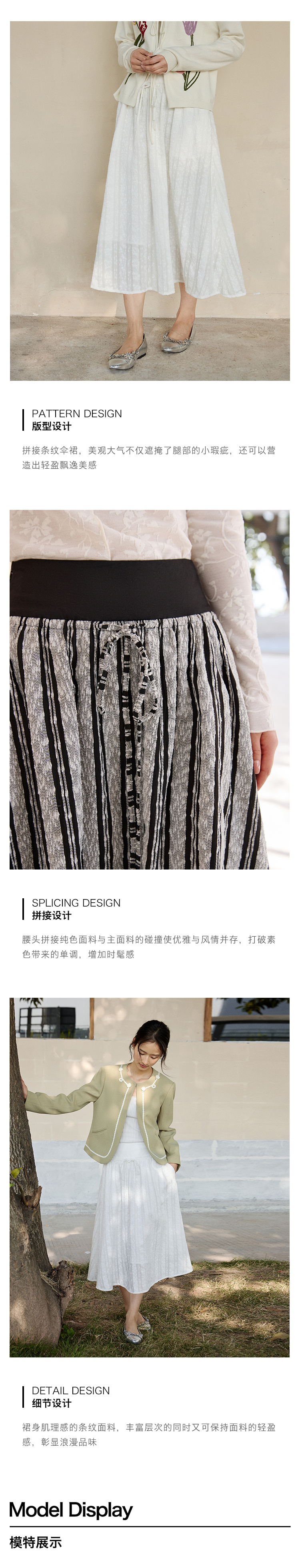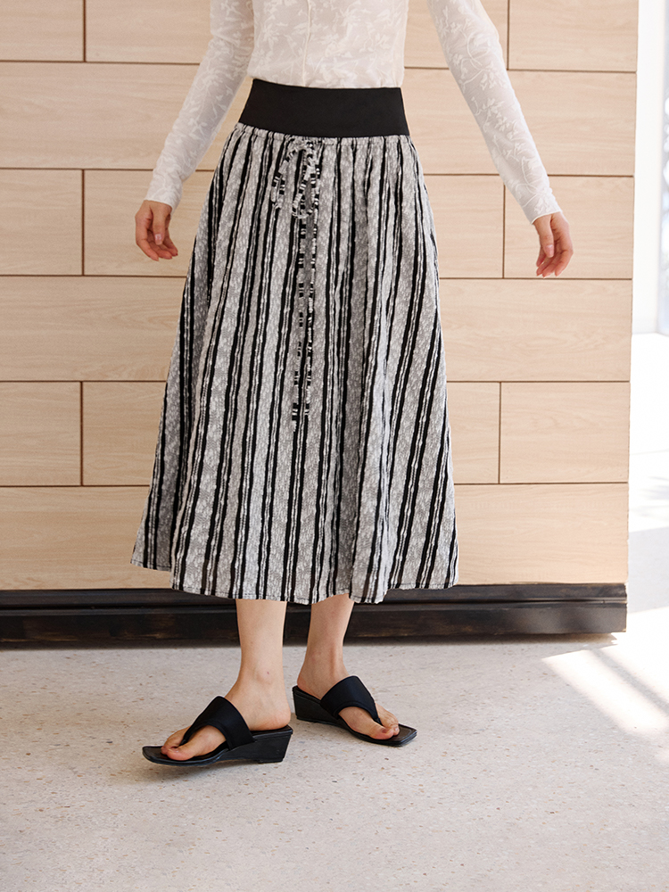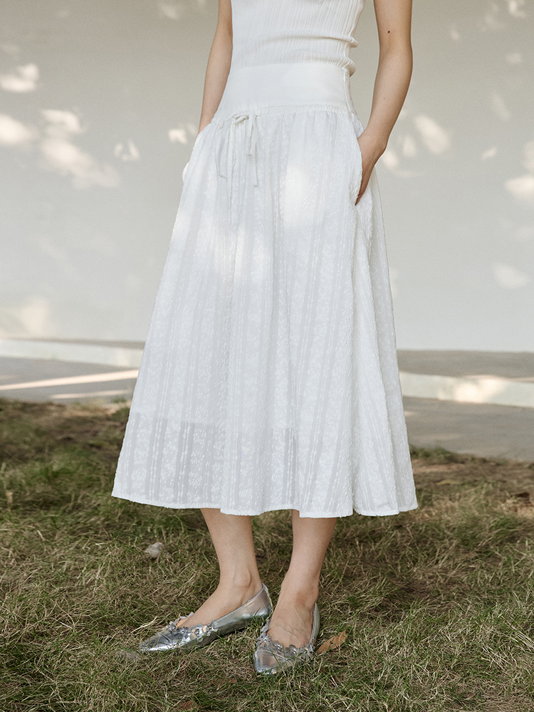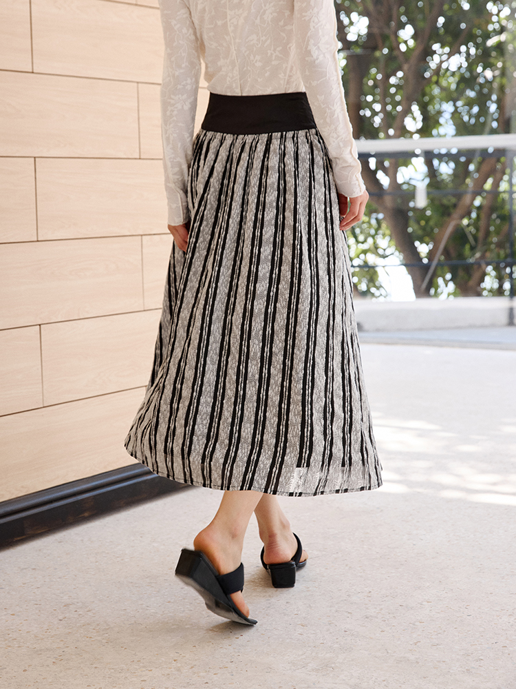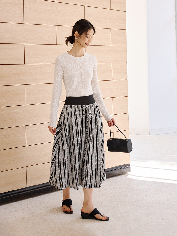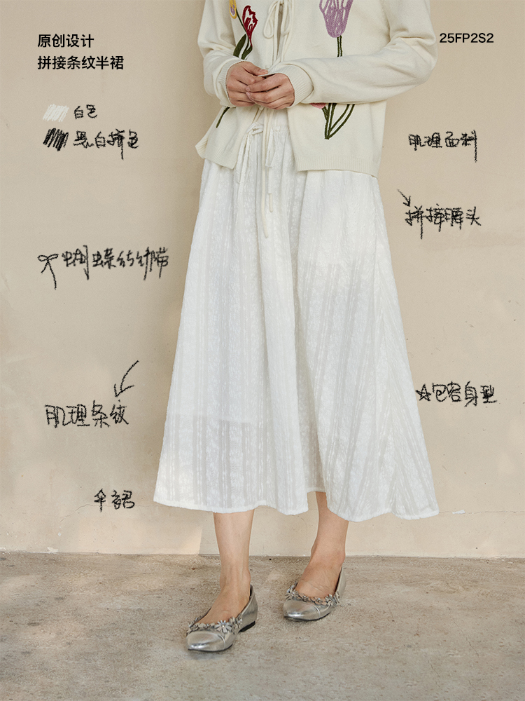 ForPoem 现货 25/SS原创设计拼接腰头肌理面料A摆半身裙