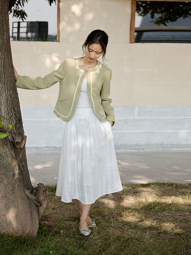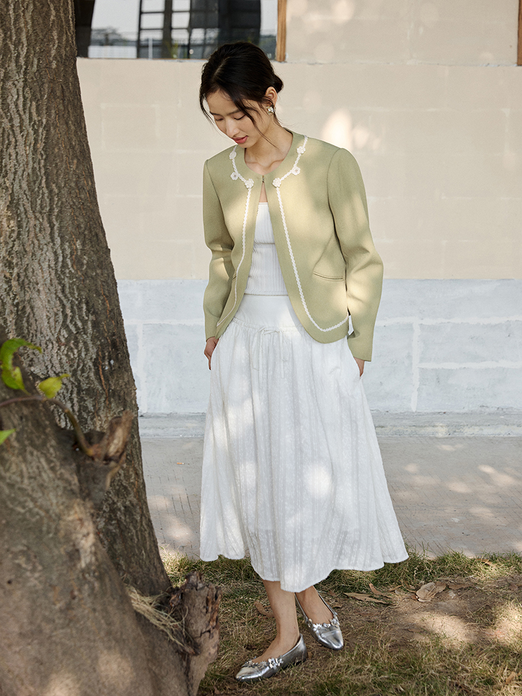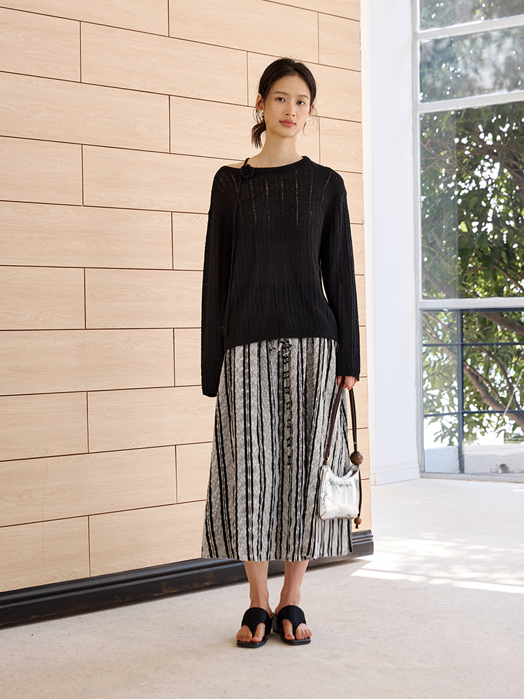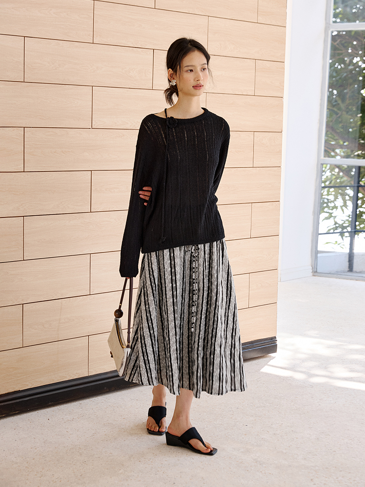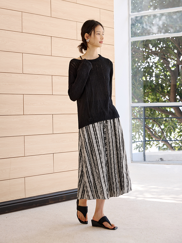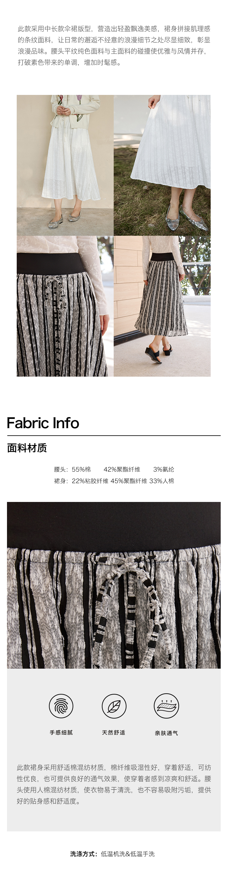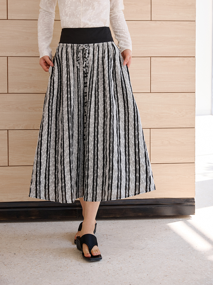 ForPoem 现货 25/SS原创设计拼接腰头肌理面料A摆半身裙