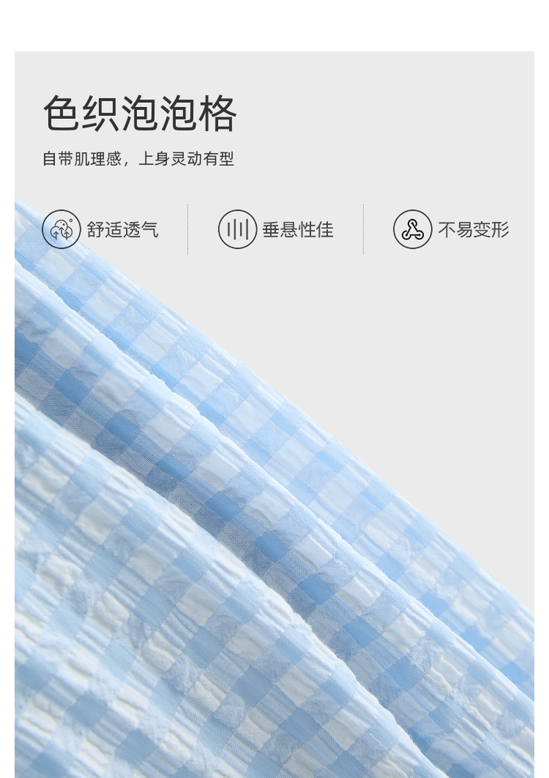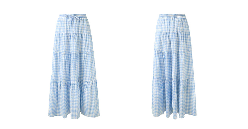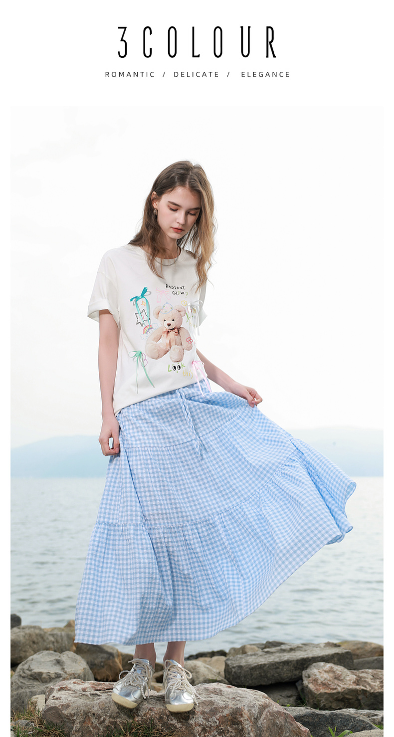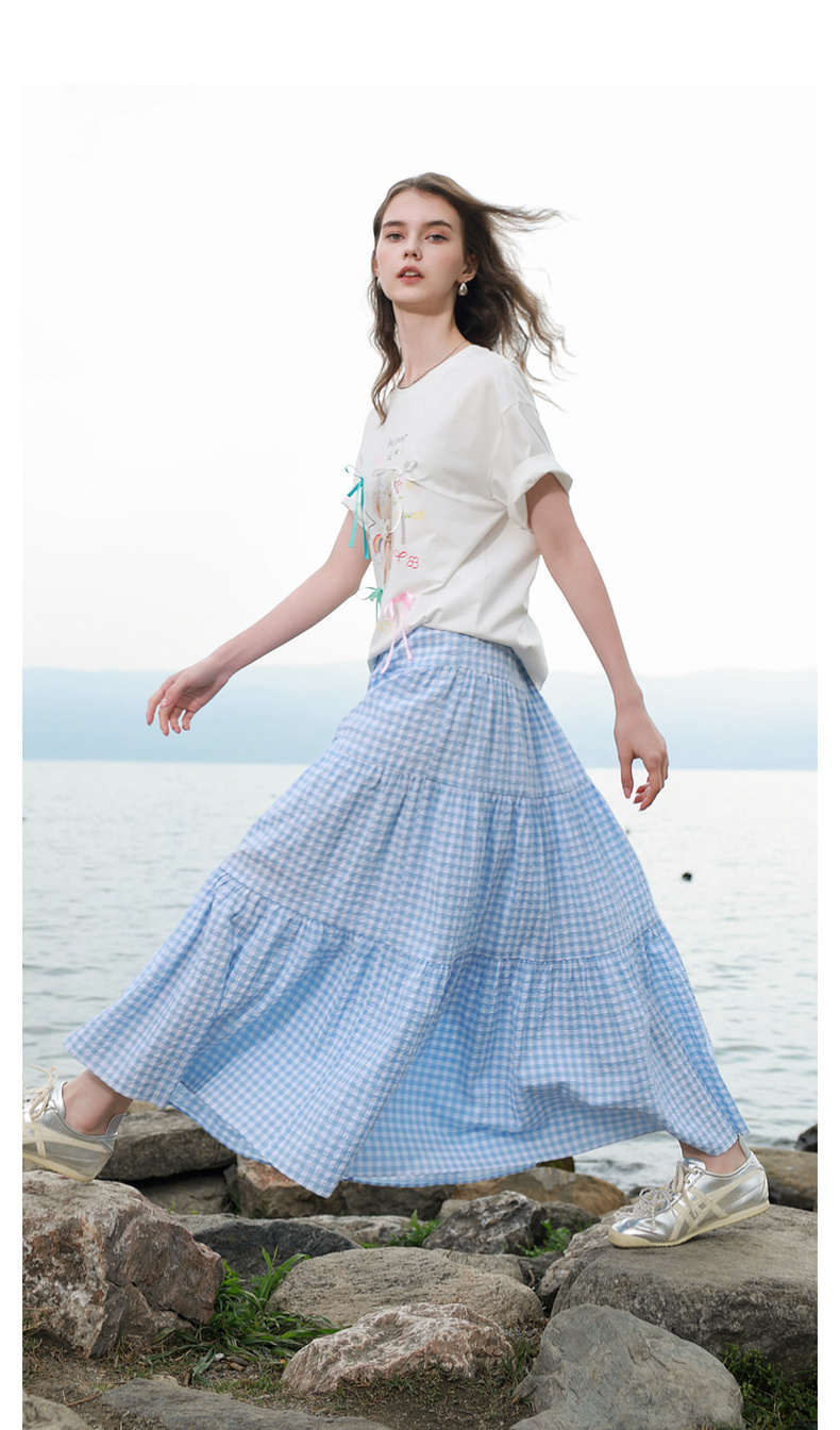 三彩2025夏季新款格纹半身裙肌理感松紧腰A字裙蛋糕长裙M