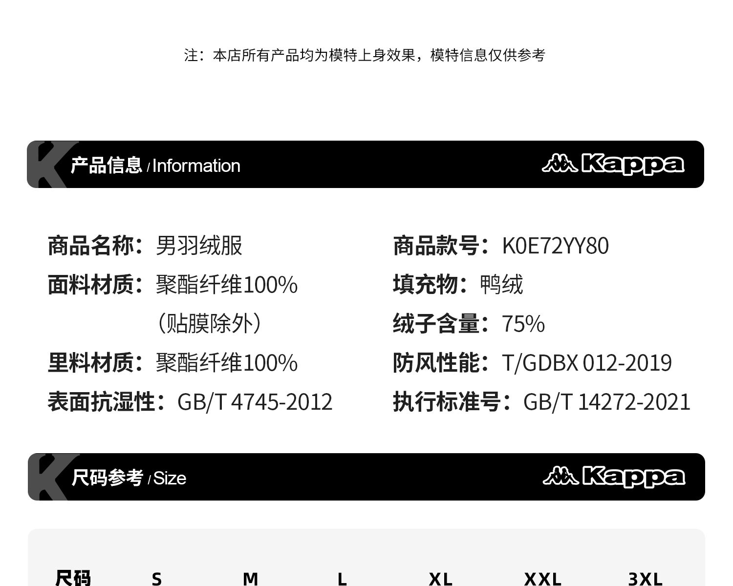 Kappa卡帕背靠背新款防风防泼水工装连帽运动羽绒服保暖防寒服男K0E72YY80