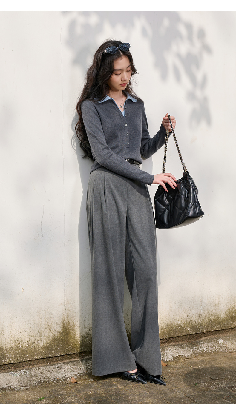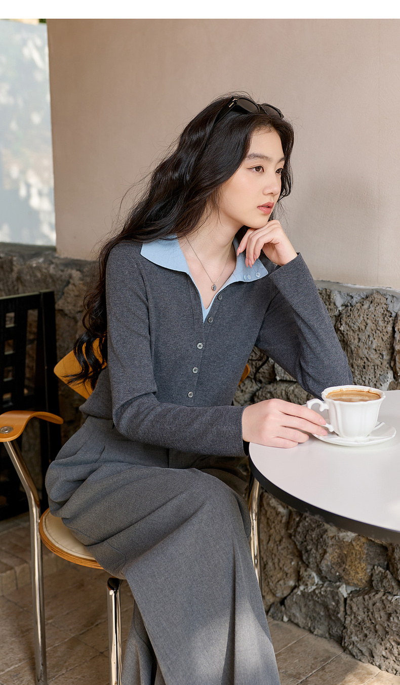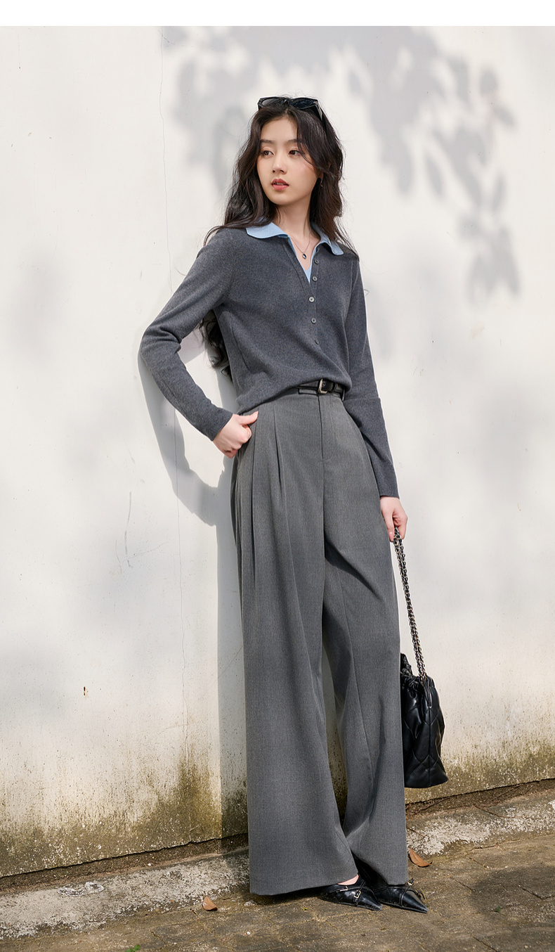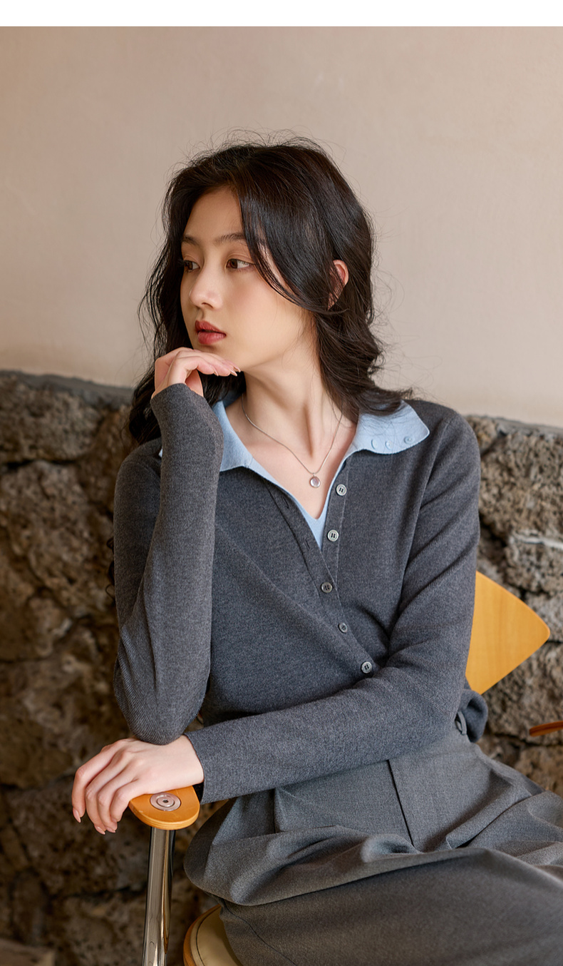 三彩2026春季新款假两件撞色Polo领长袖针织衫上衣套头衫修身S