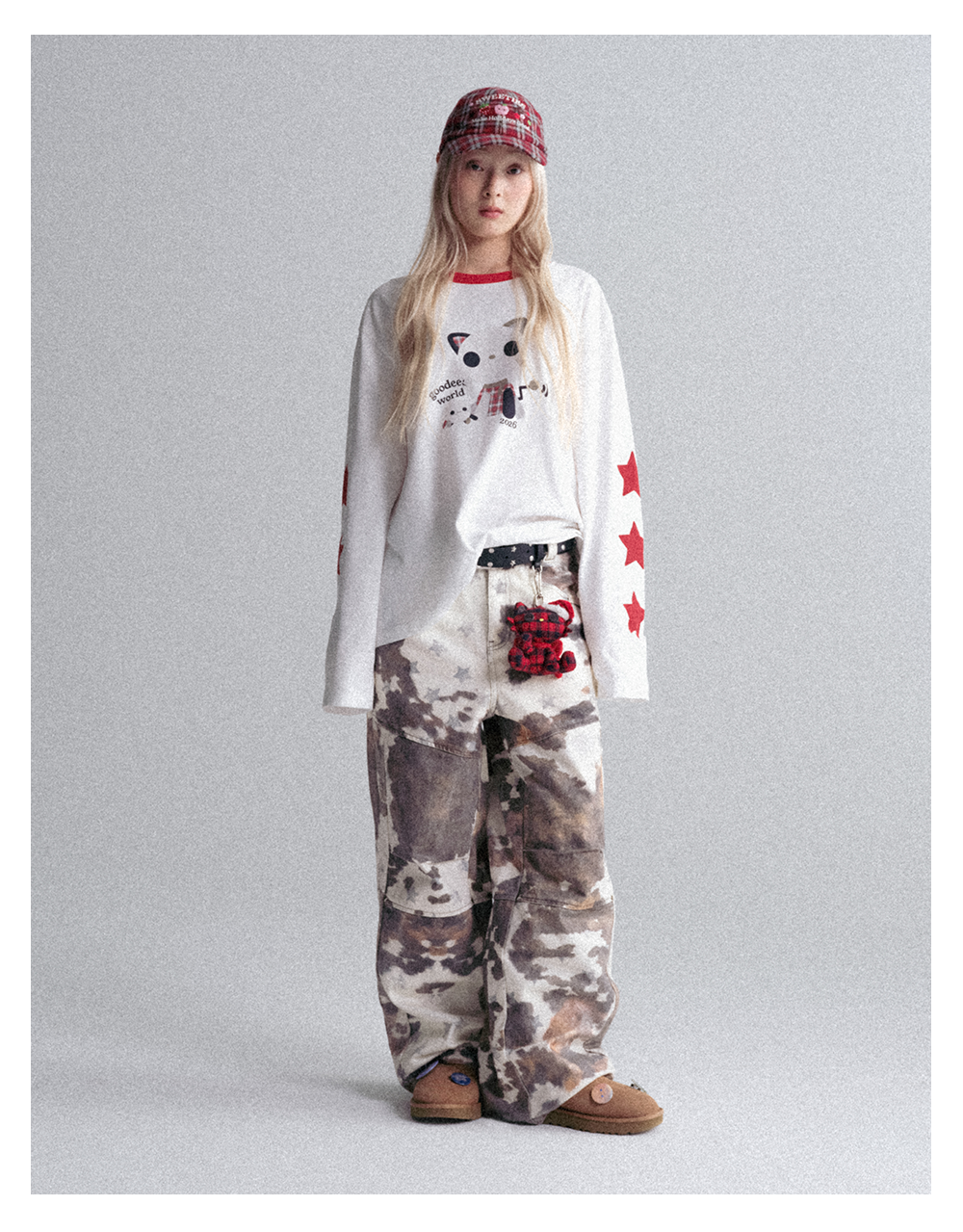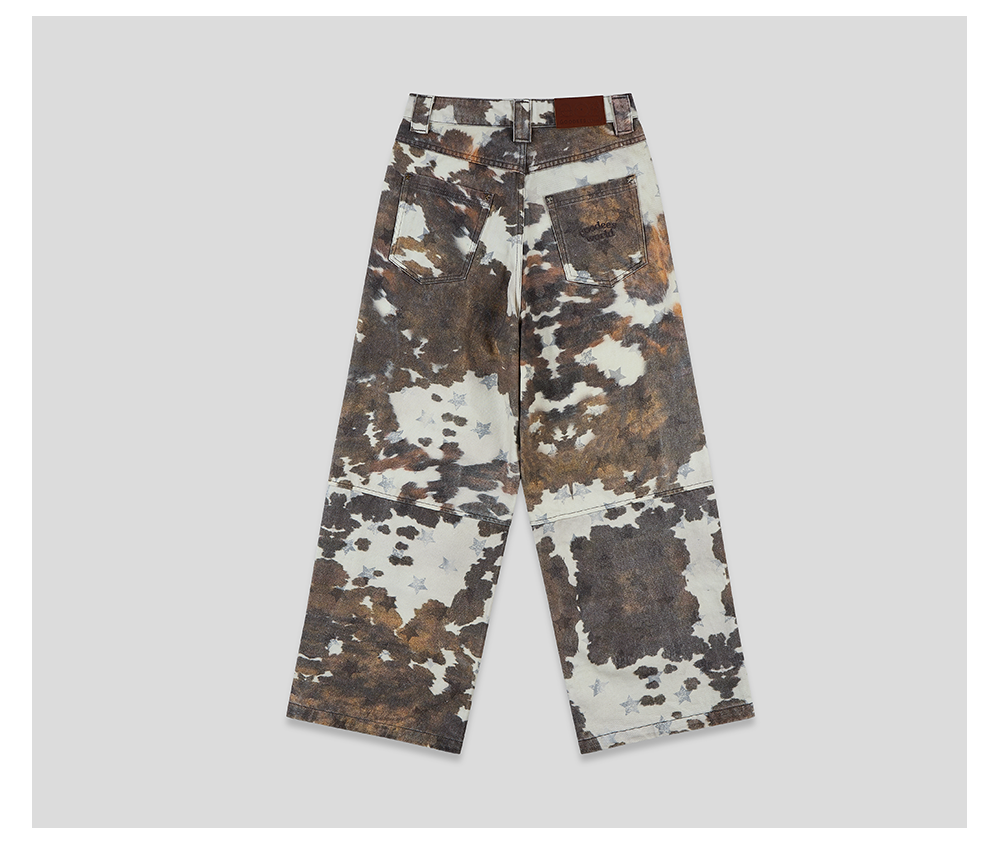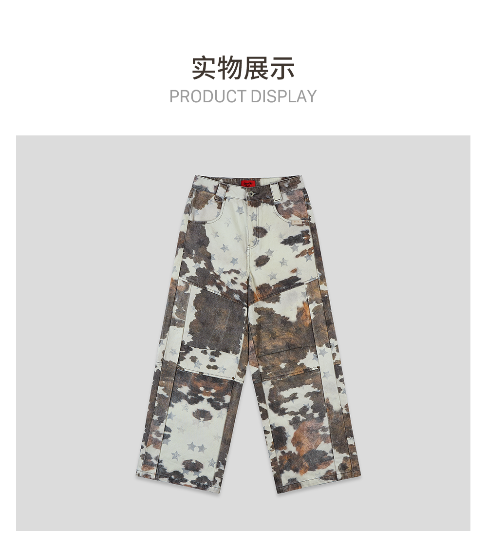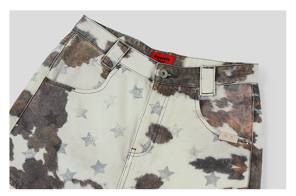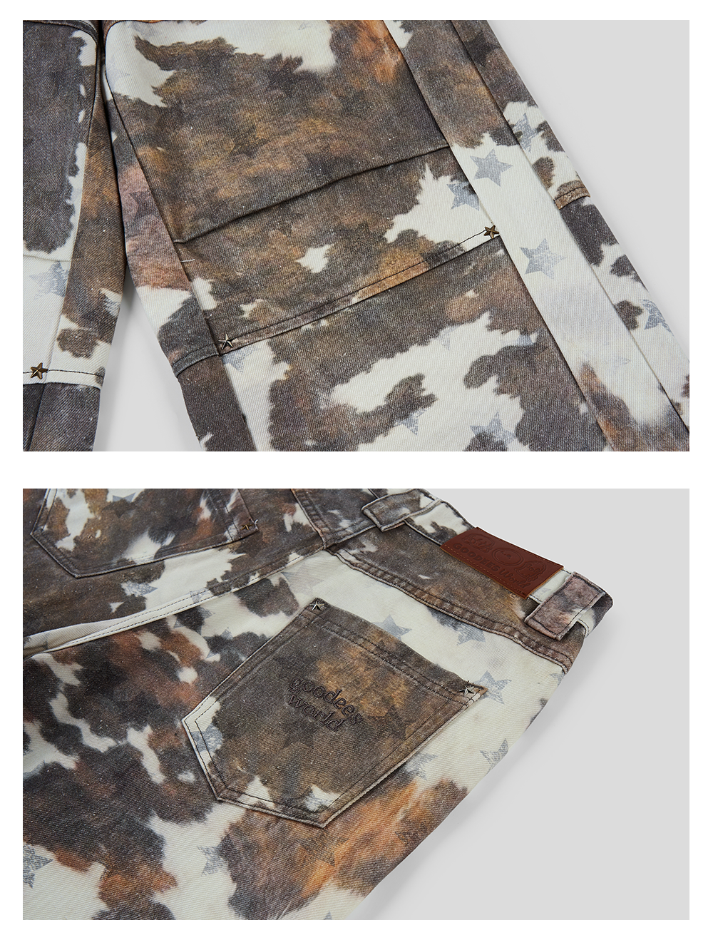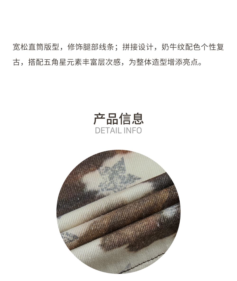 GOODBAI GOODEES 新款五角星铆钉奶牛纹直筒裤