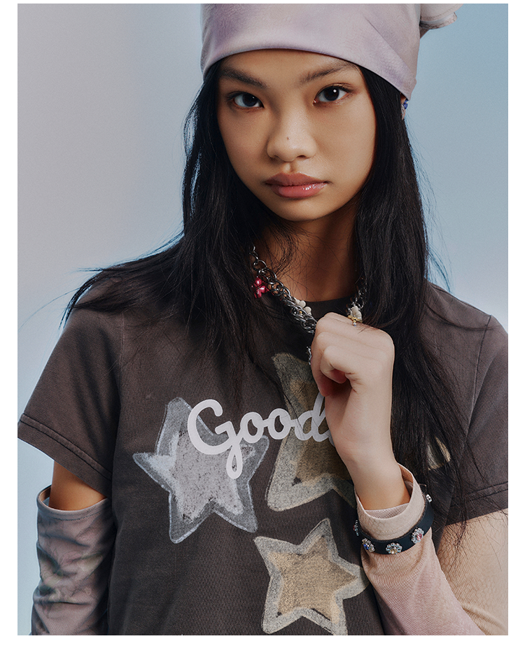 GOODBAI GOODEES梦幻星星印花logo正肩短款T恤