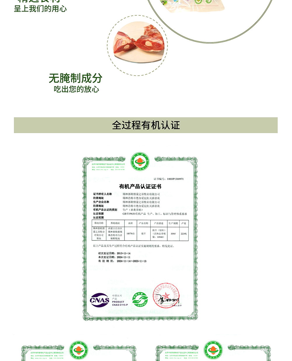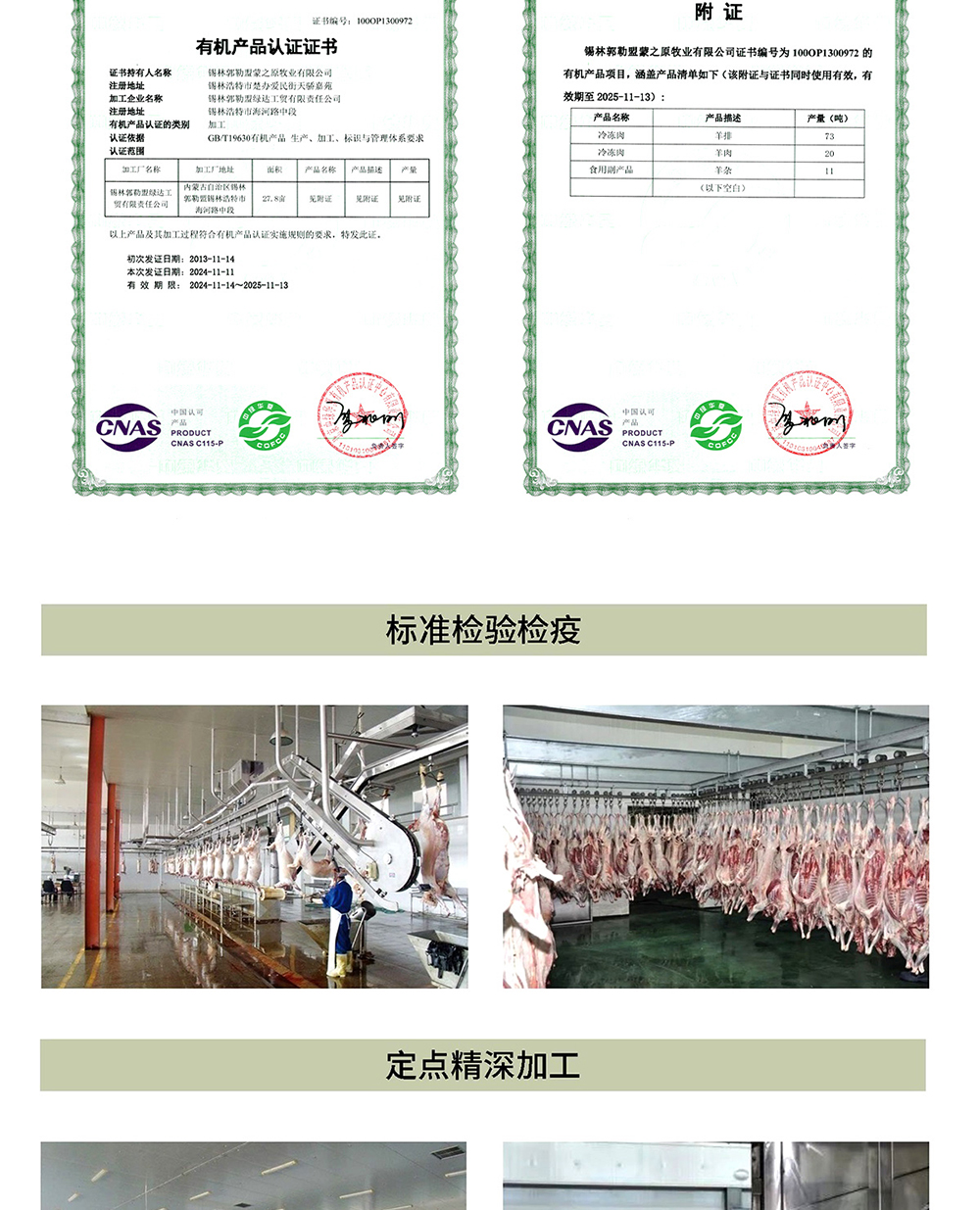 锡盟草原有机羔羊排500克*2袋 包邮|基地直发