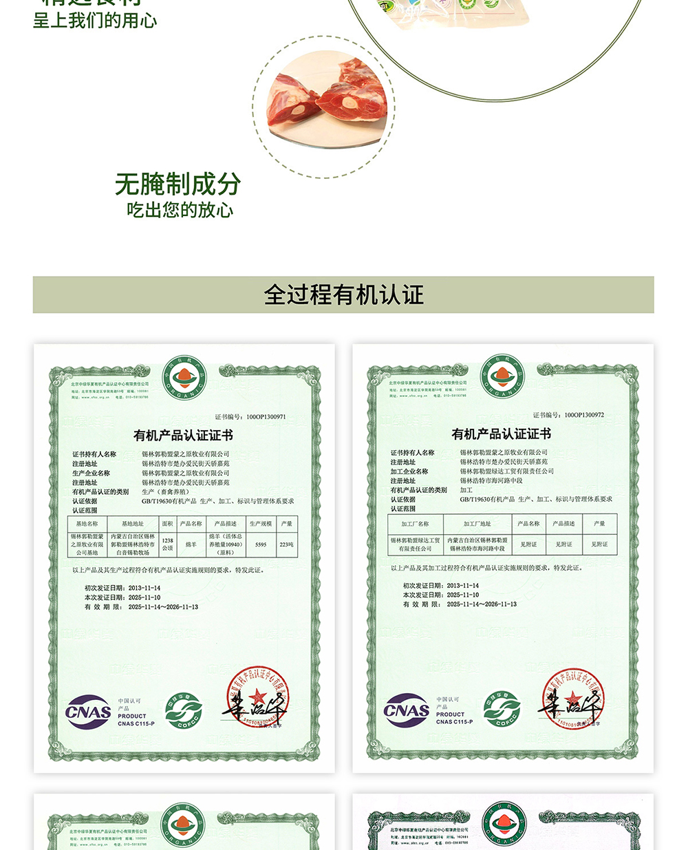 锡盟草原有机羔羊腿1kg 包邮|基地直发