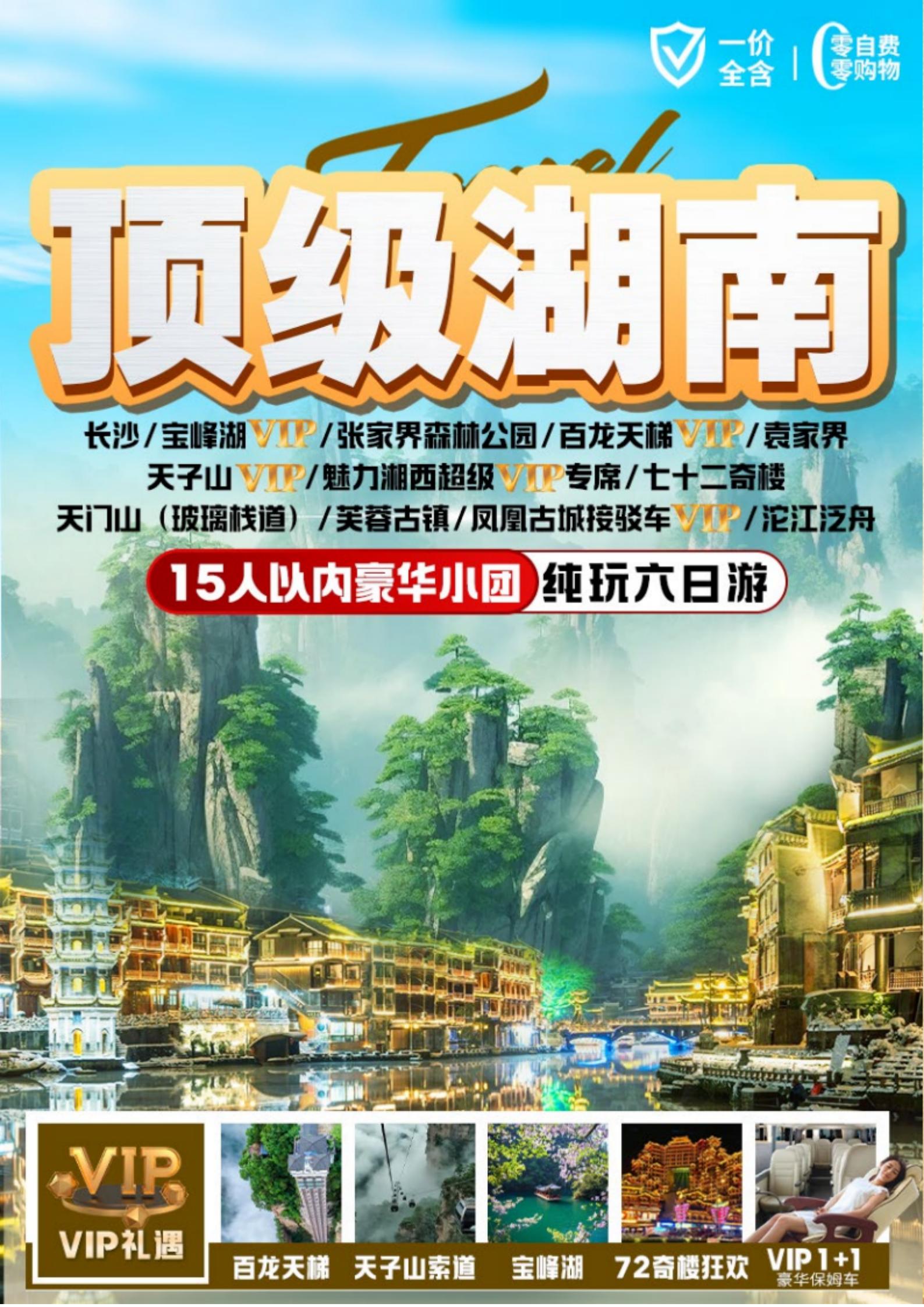 携程五钻 (长沙-天门山-凤凰-长沙往返6日游含餐)(15人以内定制小拼团)
