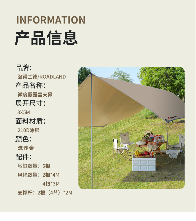 洛得兰德露营天幕流沙金 3*5MLD-TM102—rxs