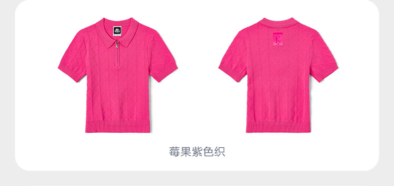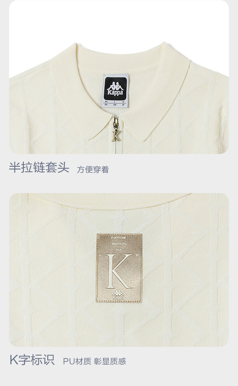 Kappa卡帕短袖2023新款女针织POLO衫半拉链运动短袖休闲提花T恤