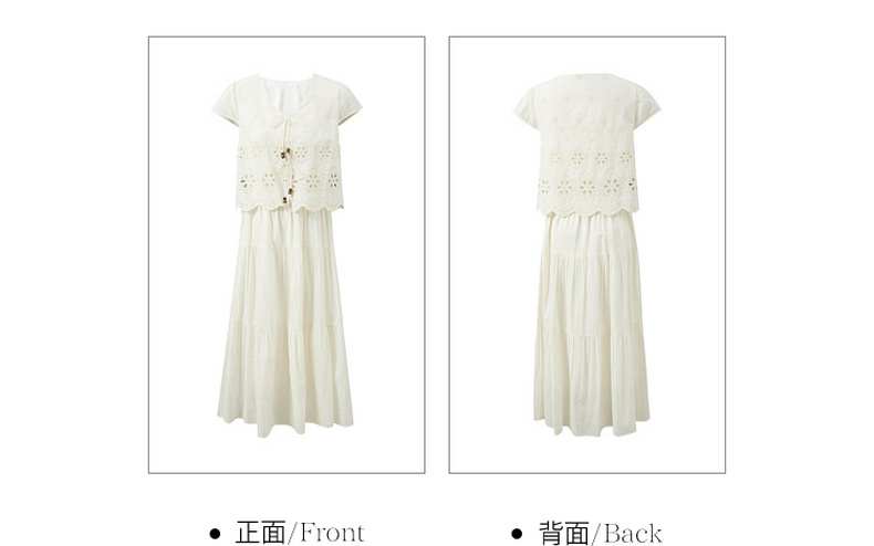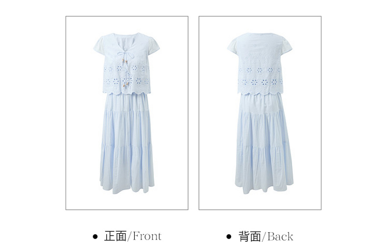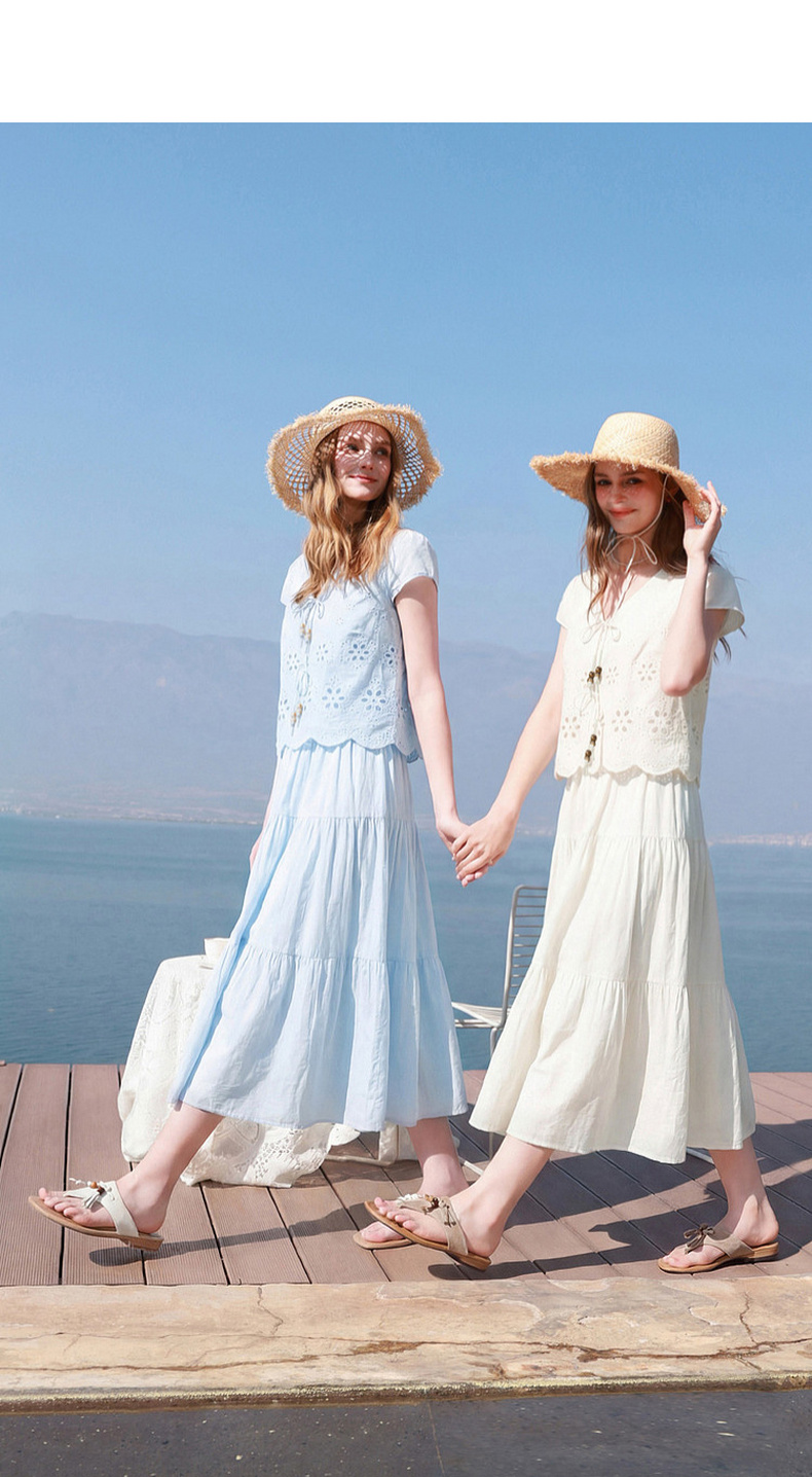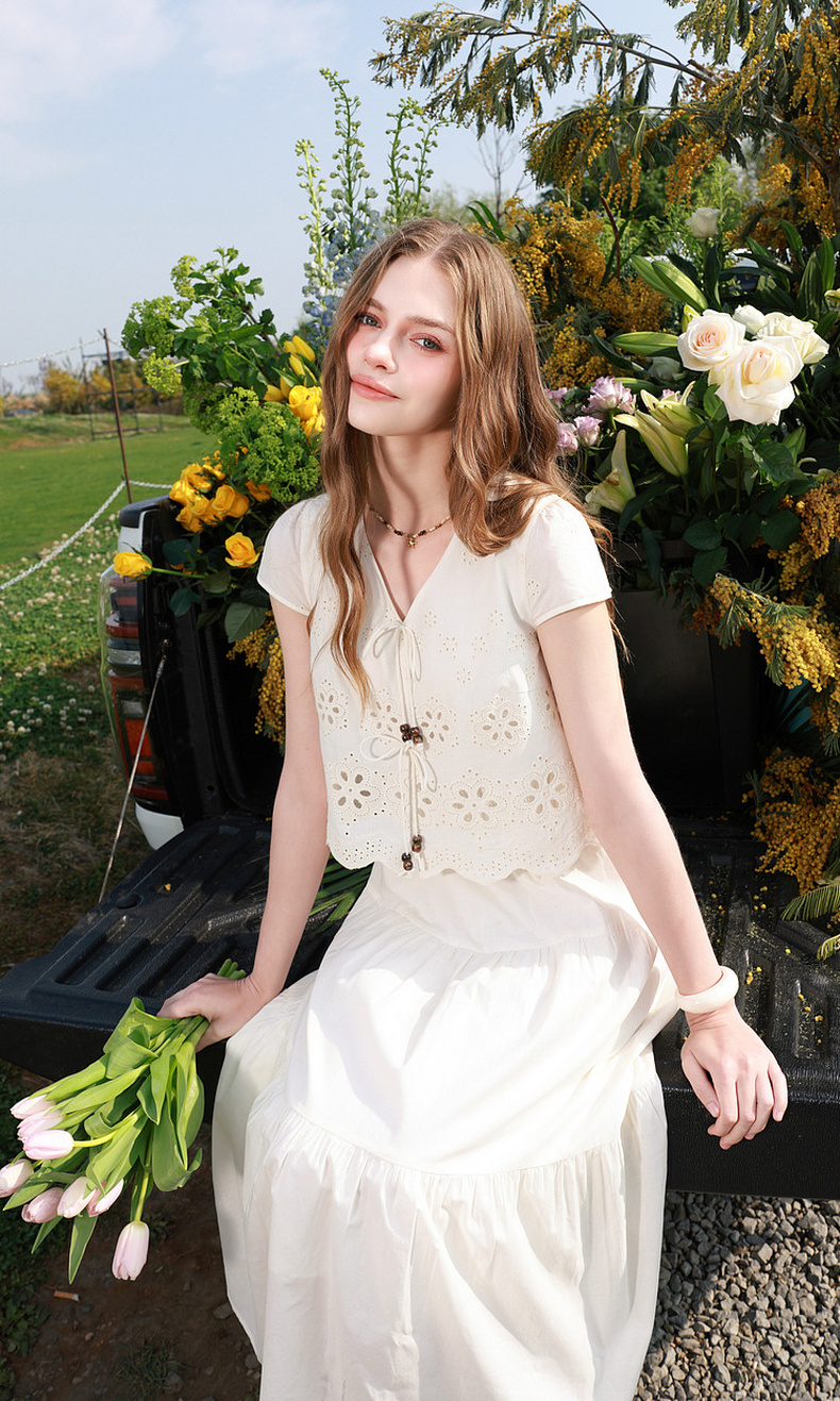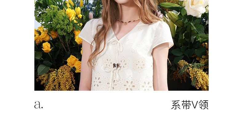 【小樱花连衣裙】三彩2026夏季新款纯棉绣花短袖V领A字裙长裙M