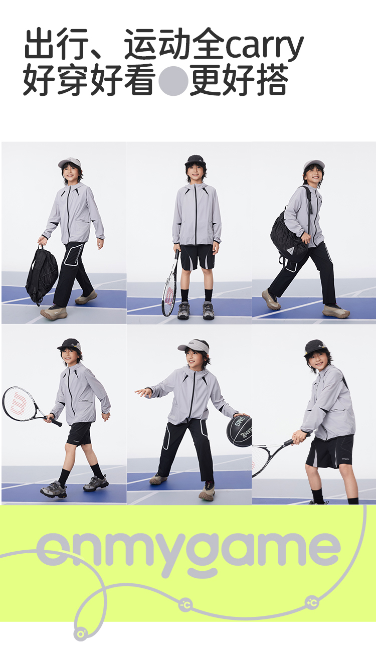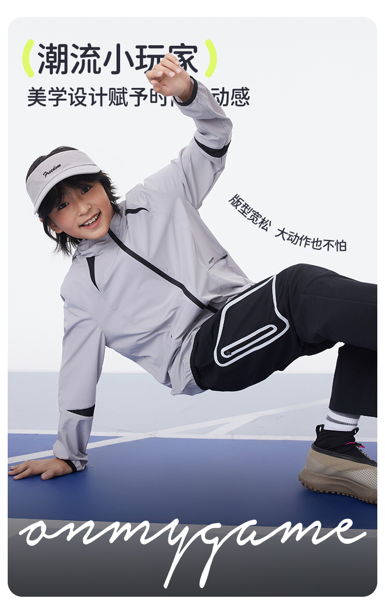 onmygame儿童专业运动品牌男女童款耐脏不易皱,柔软但不软踏