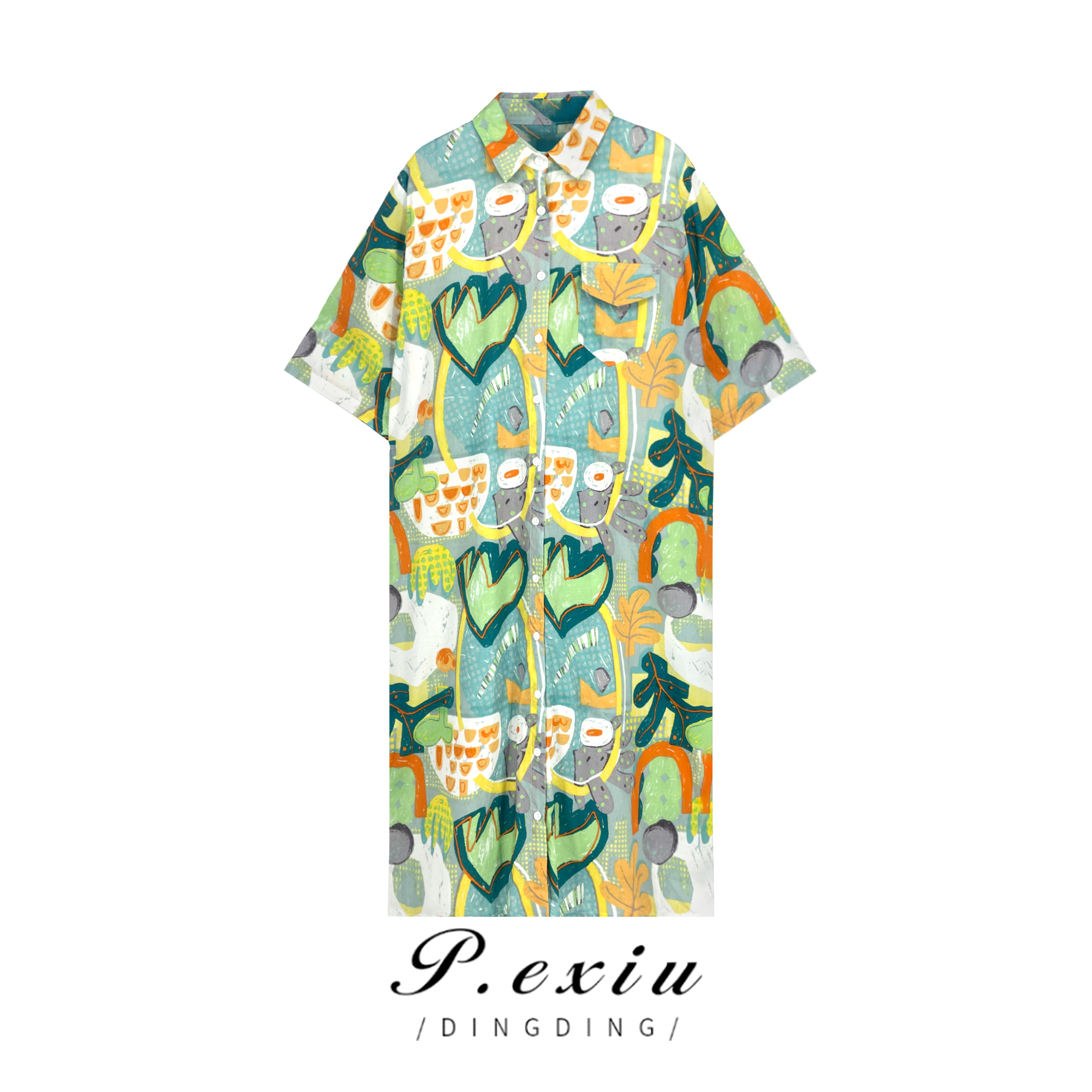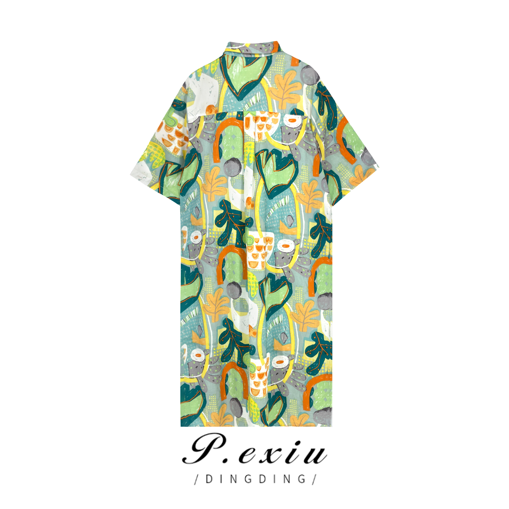 03-3潘依绣丁丁宠粉【现货】0610 夏季新款印花宽松时尚休闲百搭长款短袖衬衫 Q16251
