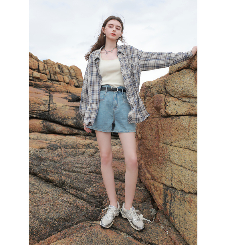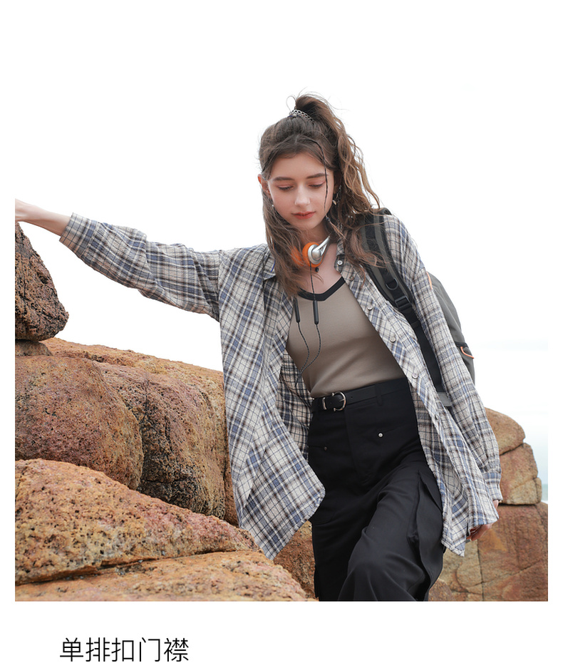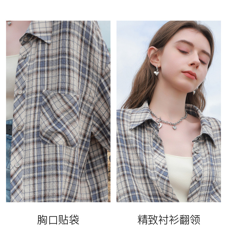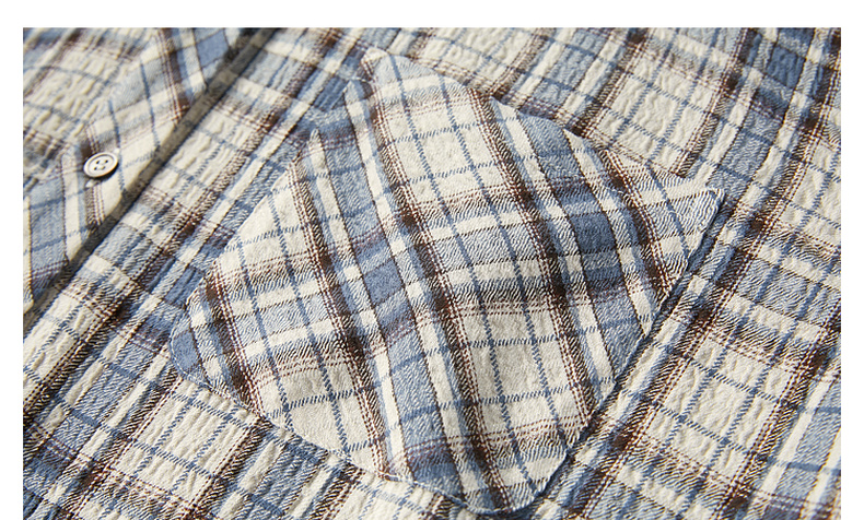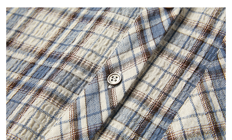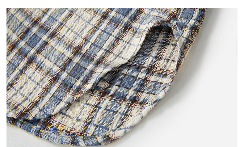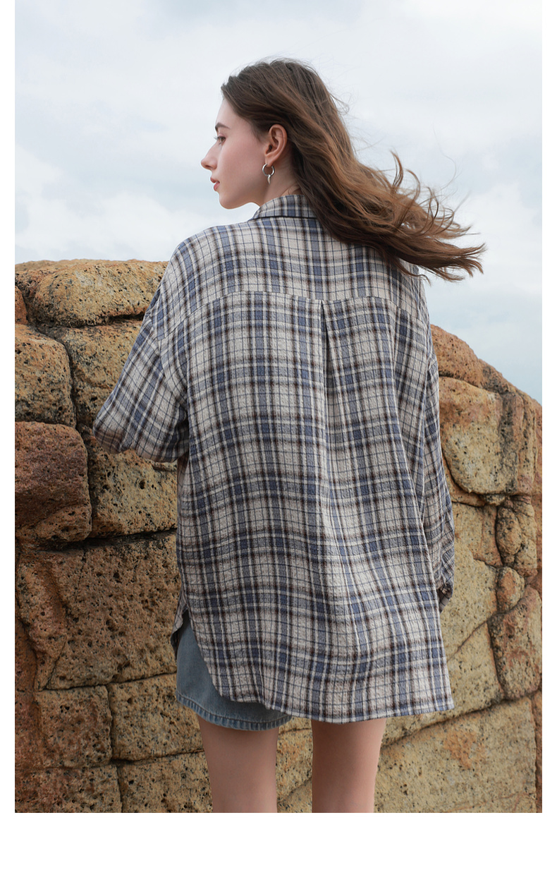 三彩2025夏季新款易打理衬衫肌理格纹小衫休闲宽松中长衬衣M