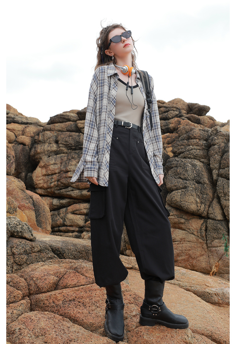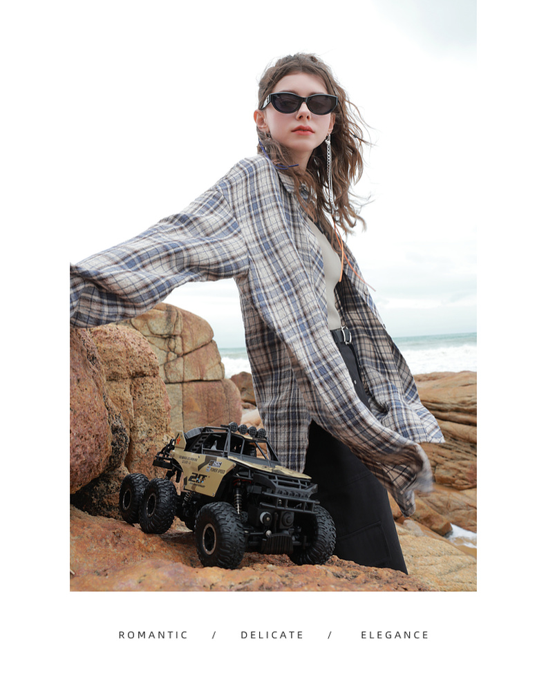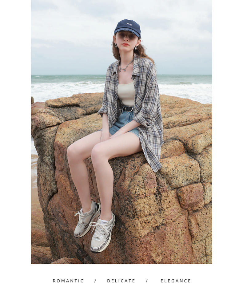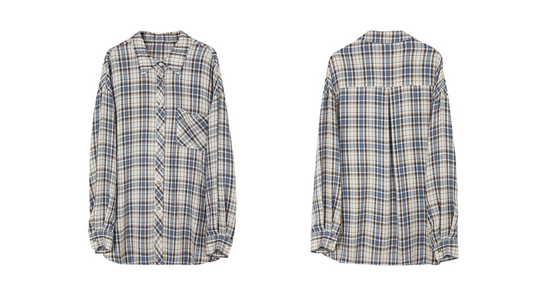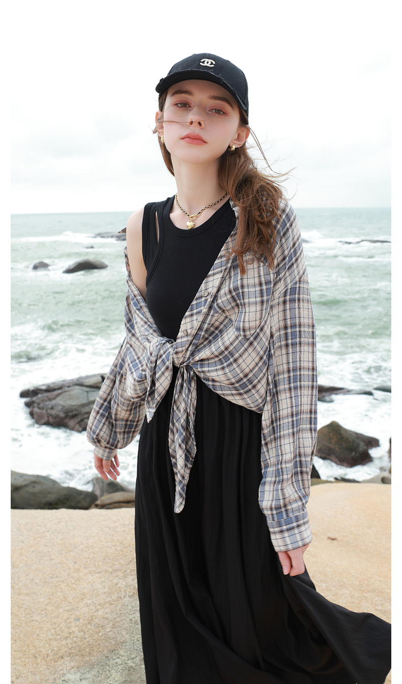 三彩2025夏季新款易打理衬衫肌理格纹小衫休闲宽松中长衬衣M