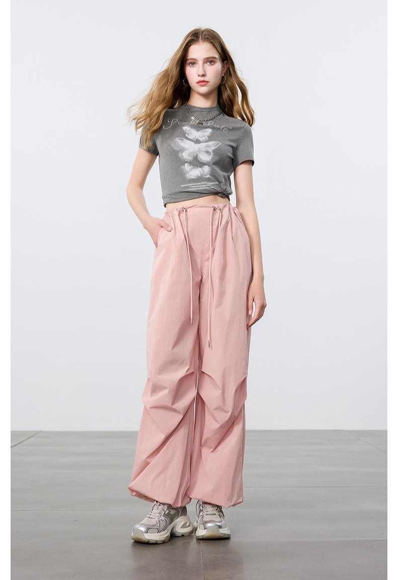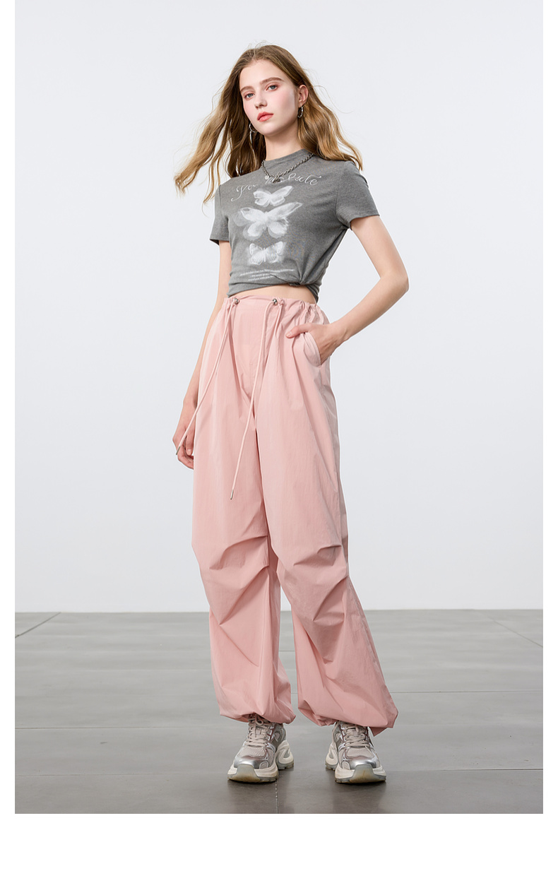 三彩独醒2025春季新款高腰宽松工装裤伞兵裤长裤户外休闲F