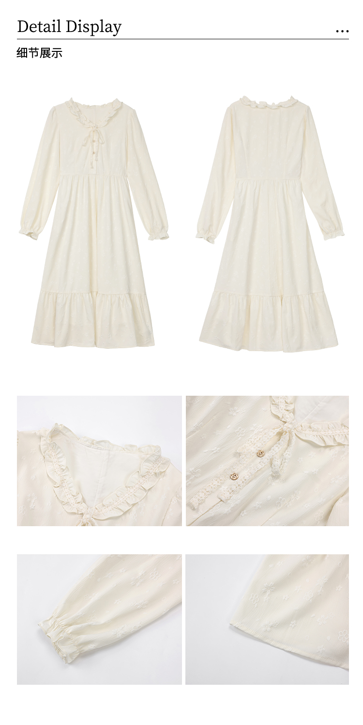鹿向南 [柔光铃兰] 2025年秋季新款法式气质连衣裙女显瘦杏色长裙QJD00631