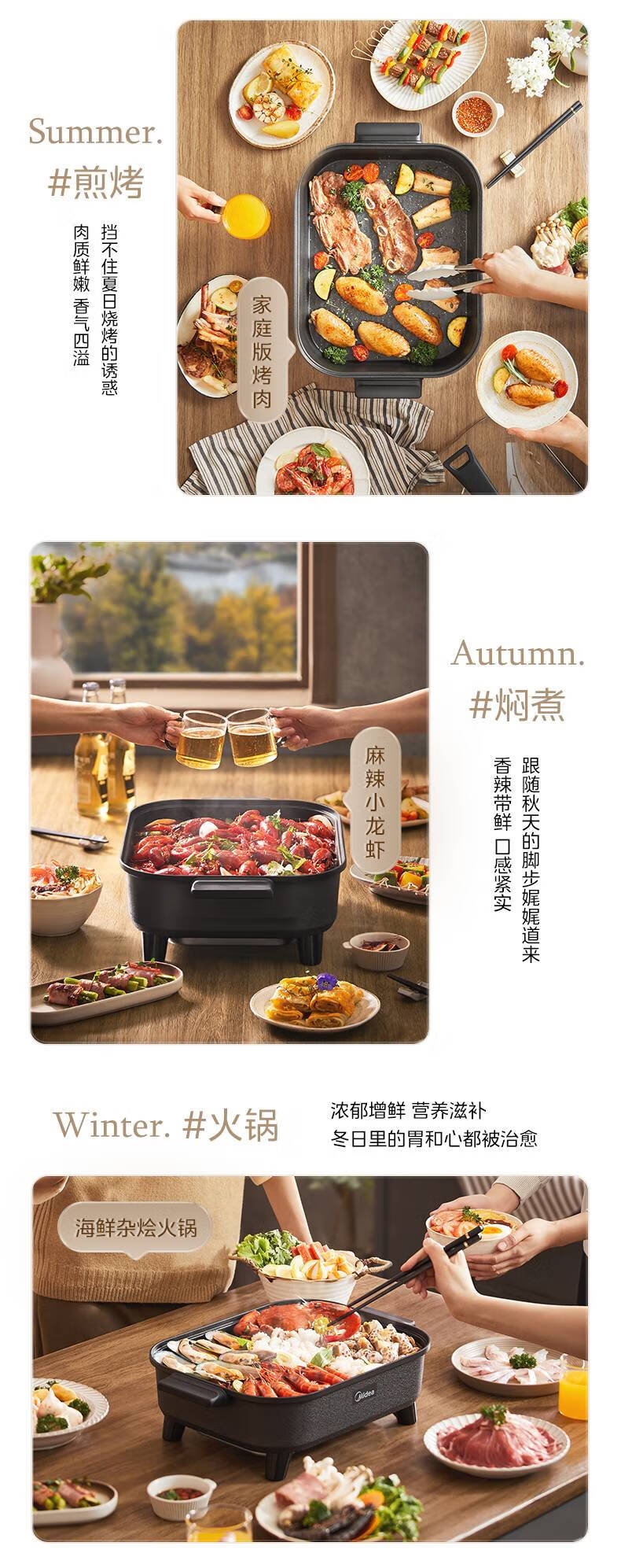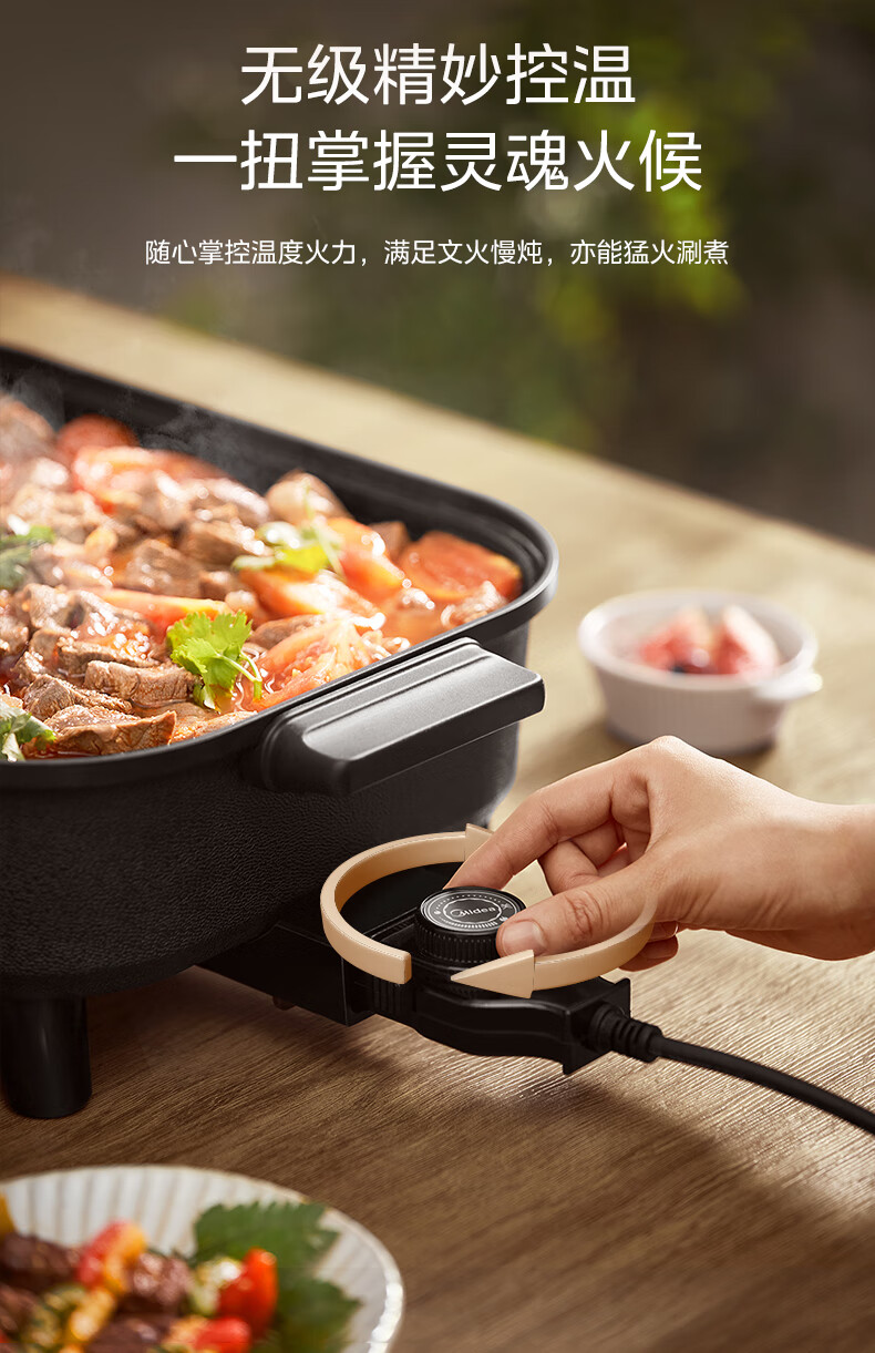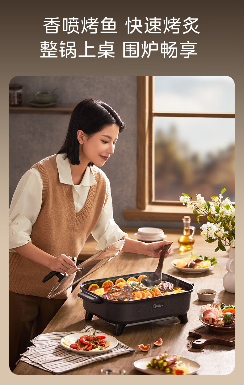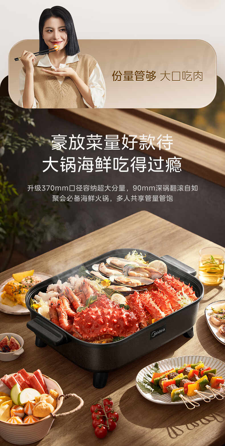 美的(Midea)火锅专用锅 电火锅 烤鱼锅6分钟速沸电锅一体多功能锅电煮锅火锅锅 8L大容量 HGE383051