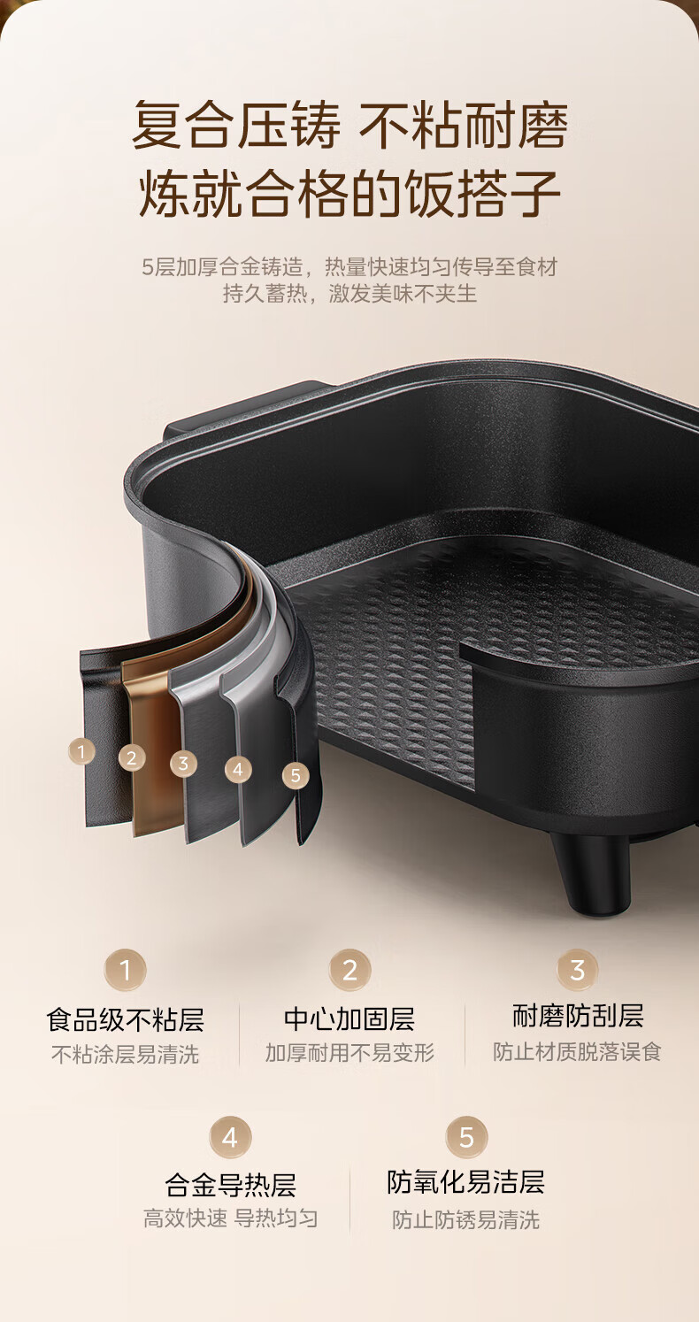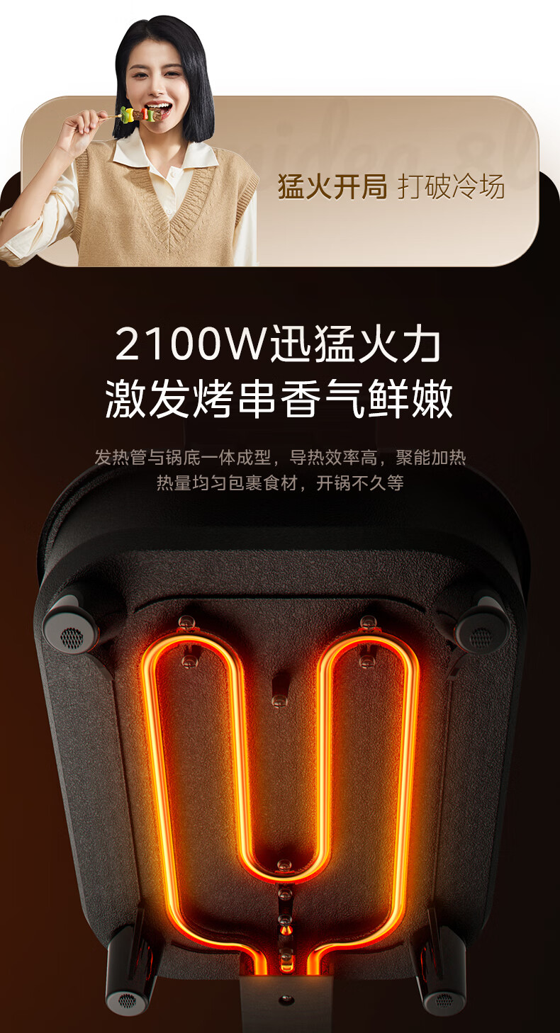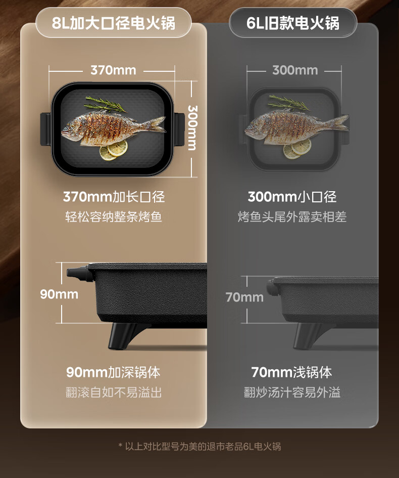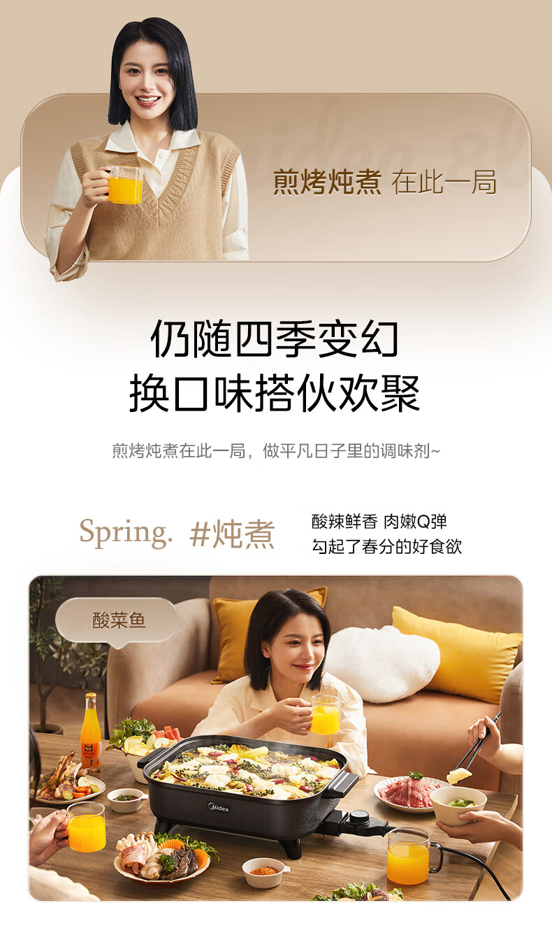 美的(Midea)火锅专用锅 电火锅 烤鱼锅6分钟速沸电锅一体多功能锅电煮锅火锅锅 8L大容量 HGE383051