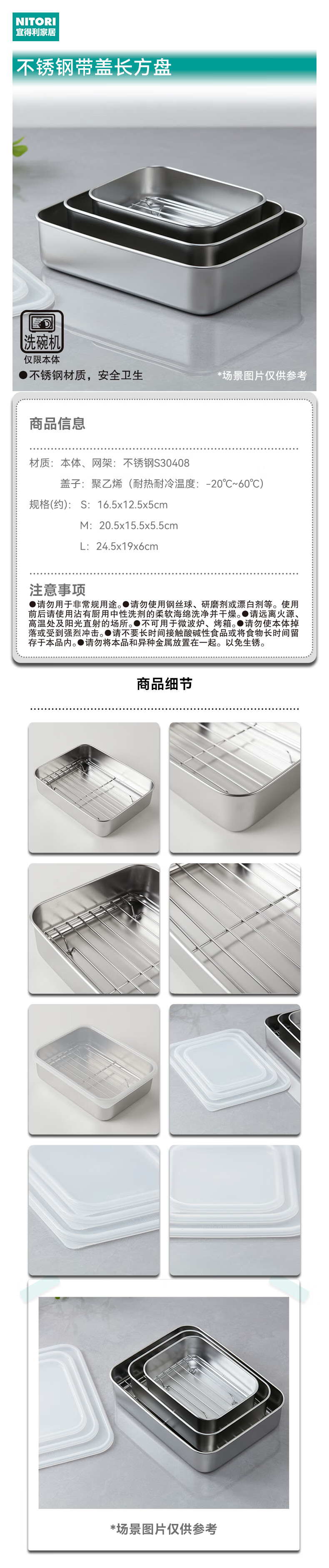 厨房食品存储保鲜盒保存容器不锈钢带盖长方盘