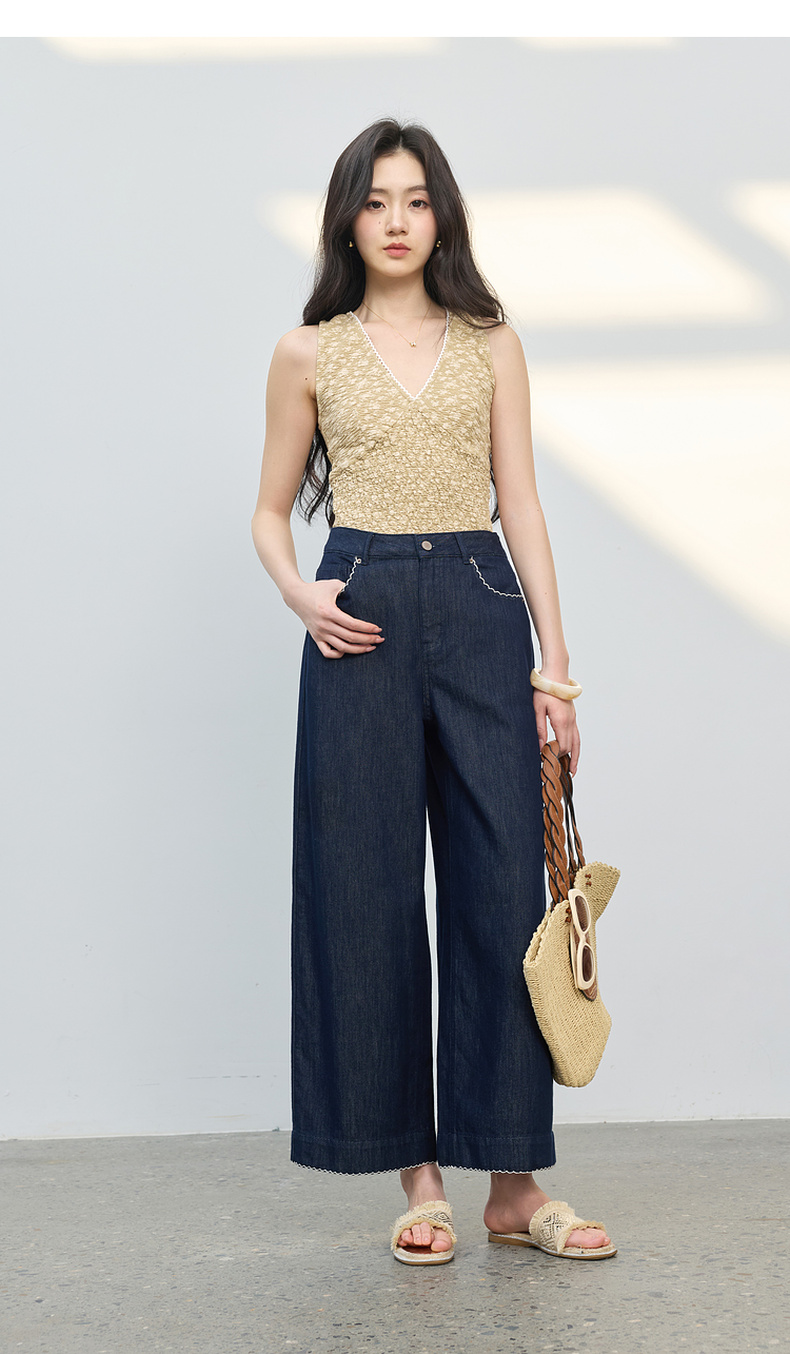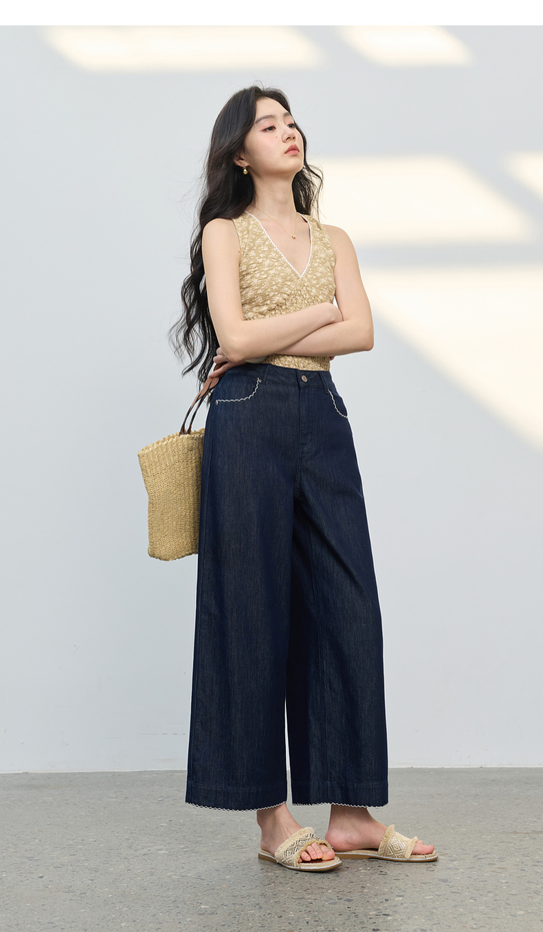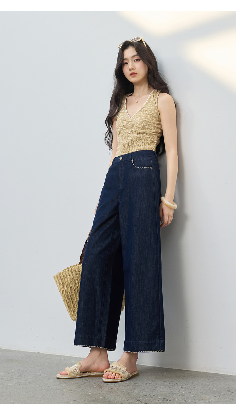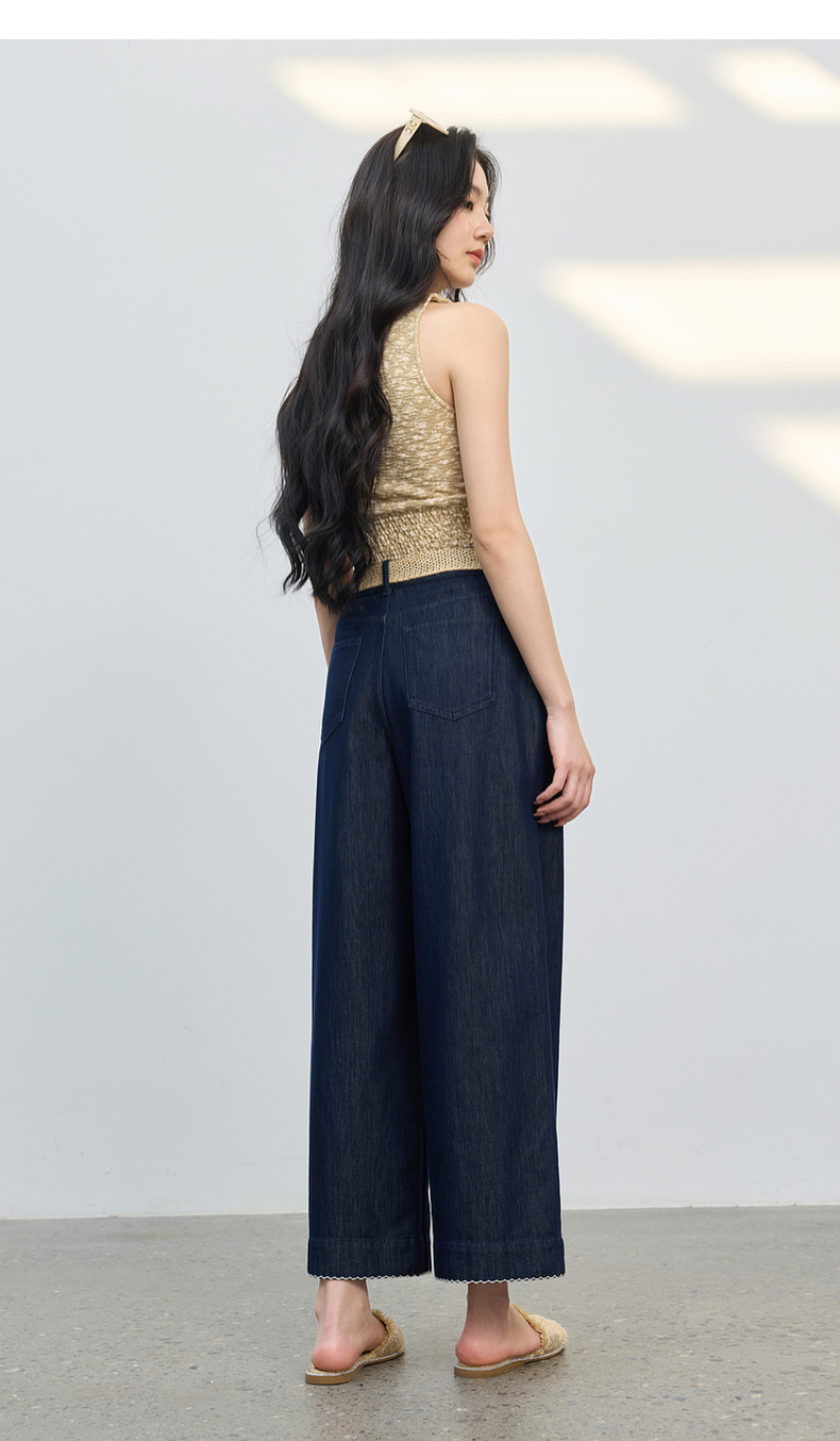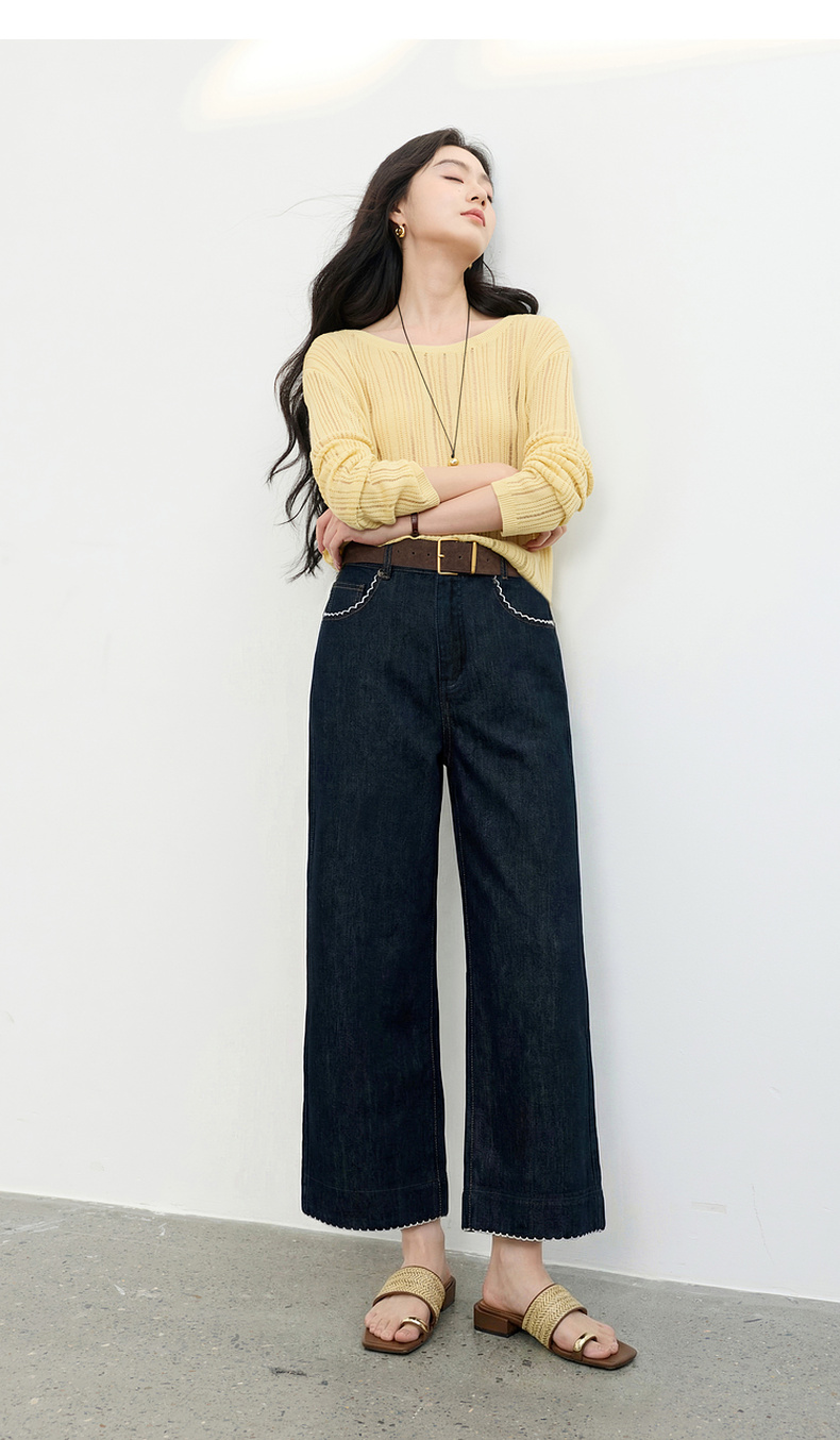 三彩2026春季新款复古休闲裤高腰牛仔裤九分裤宽松显瘦垂感M