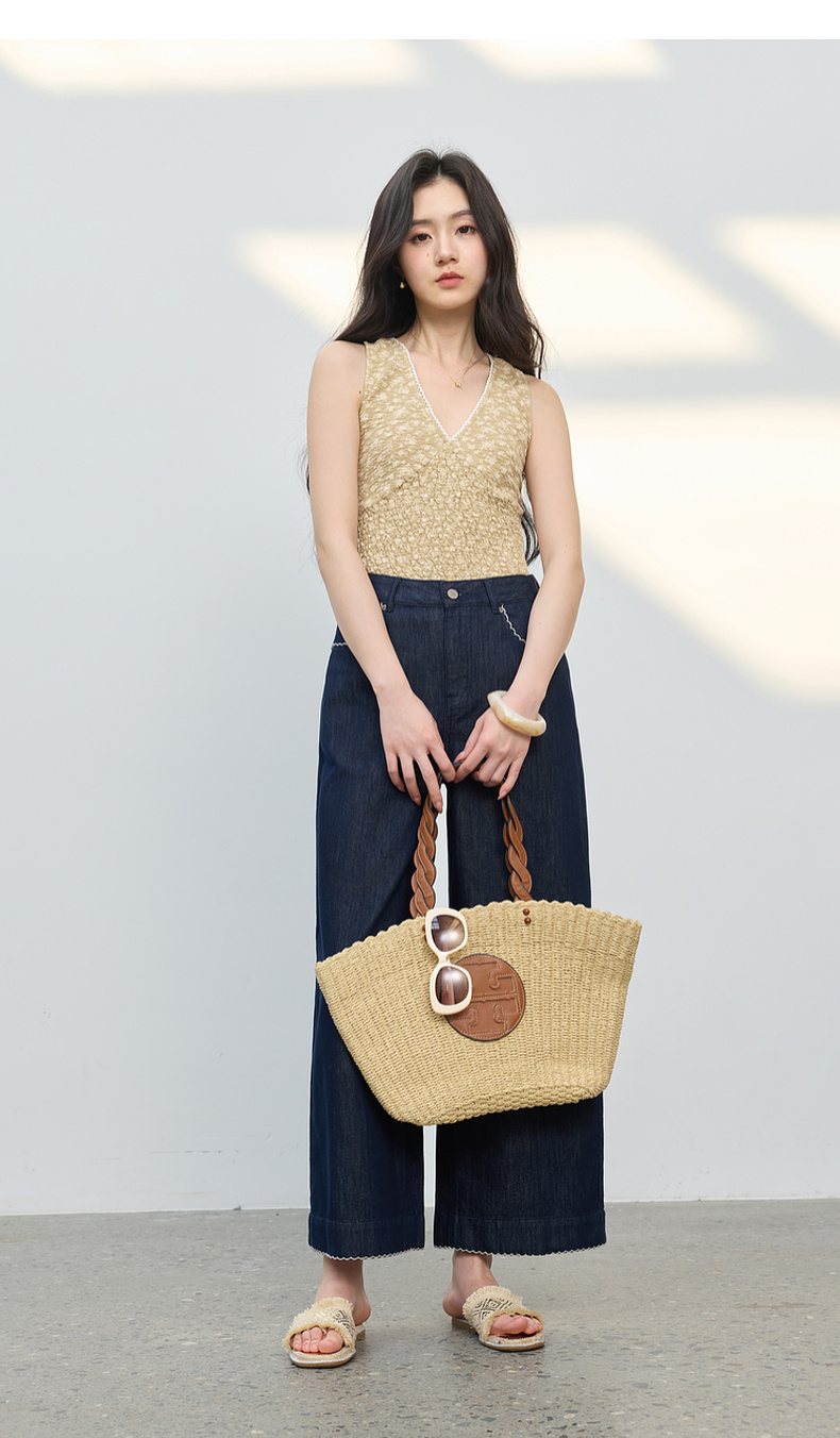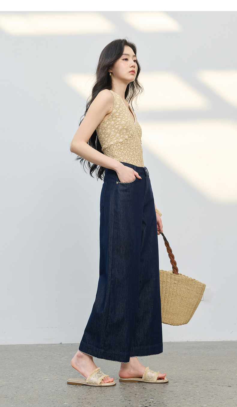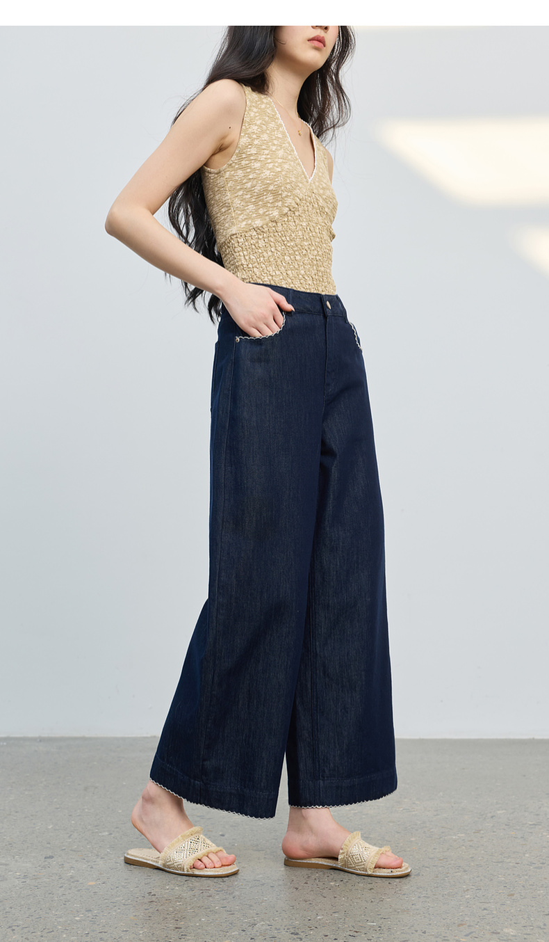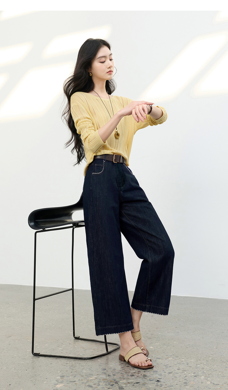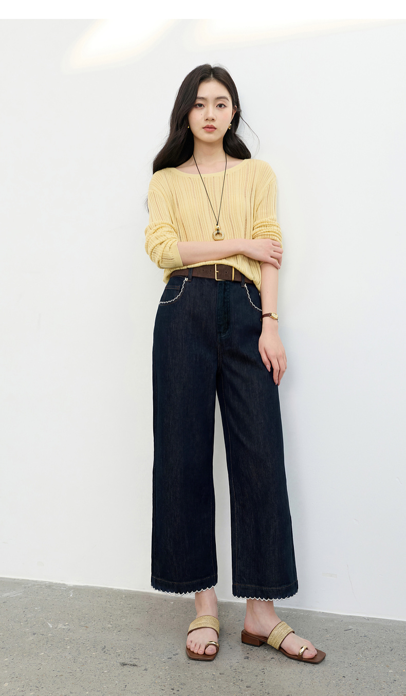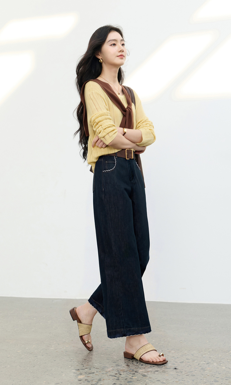 三彩2026春季新款复古休闲裤高腰牛仔裤九分裤宽松显瘦垂感M