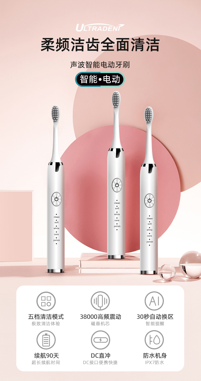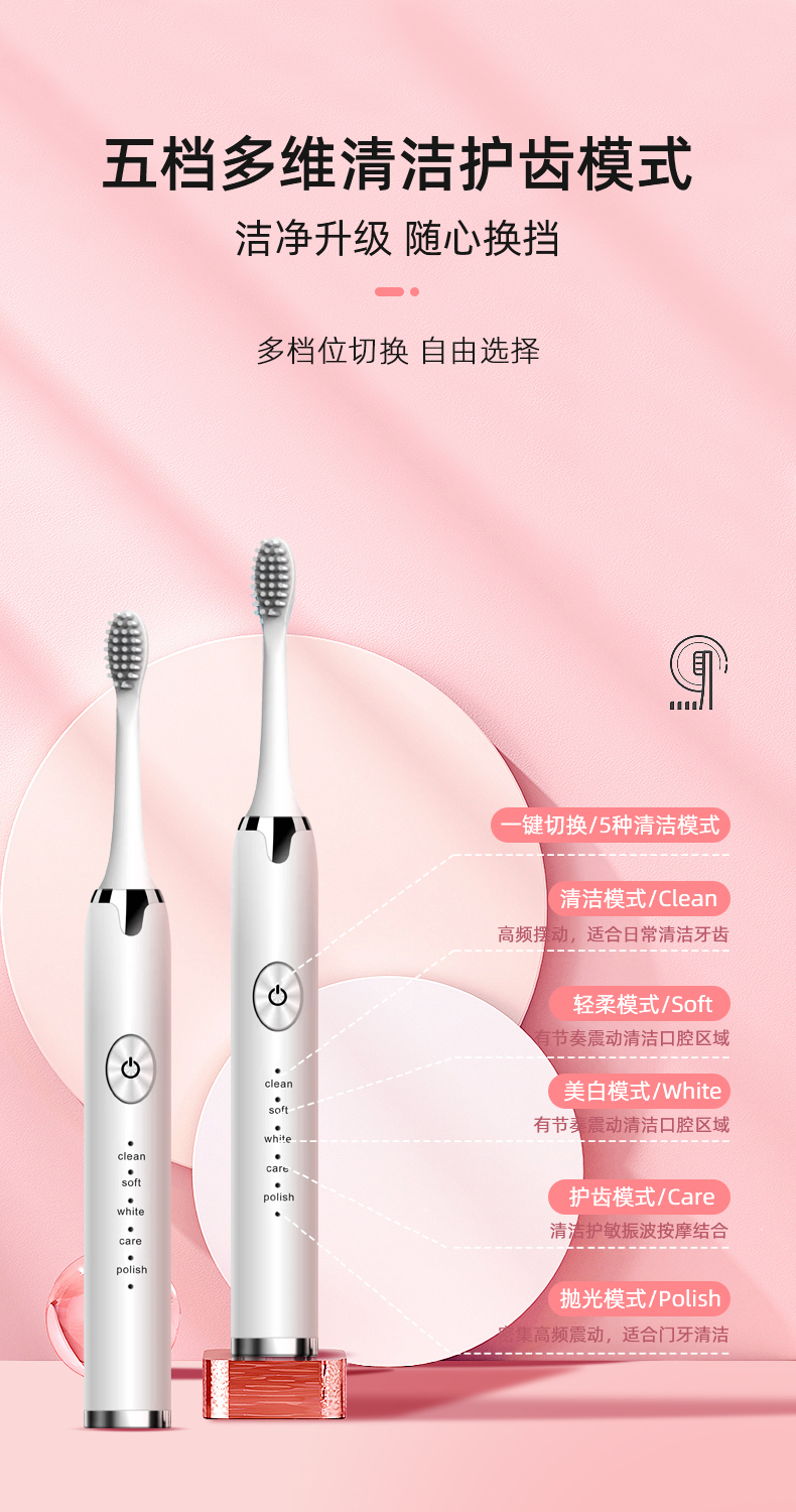 【专为儿童设计】希尔顿儿童声波智能电动牙刷EC810充电款五档清洁模式IPX7防水超长续航90天38000次高频震动杜邦软毛刷丝