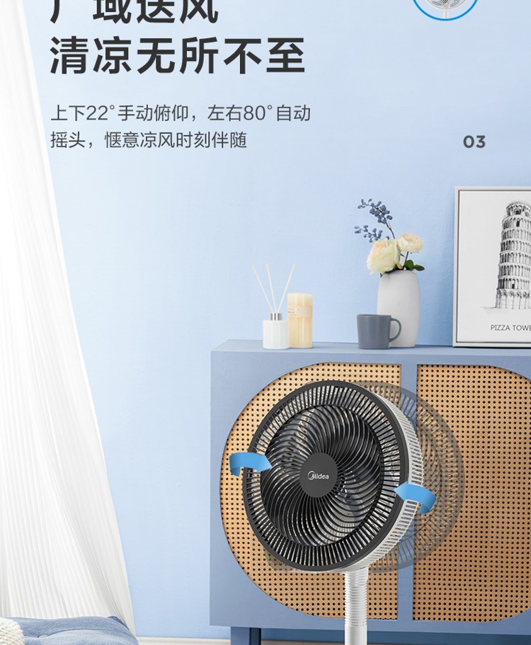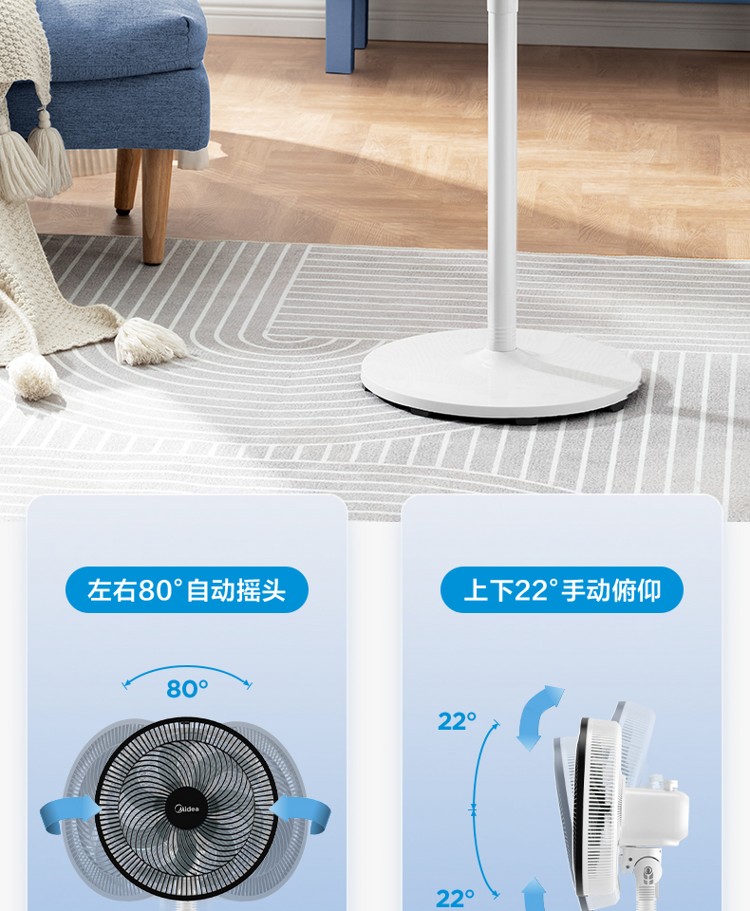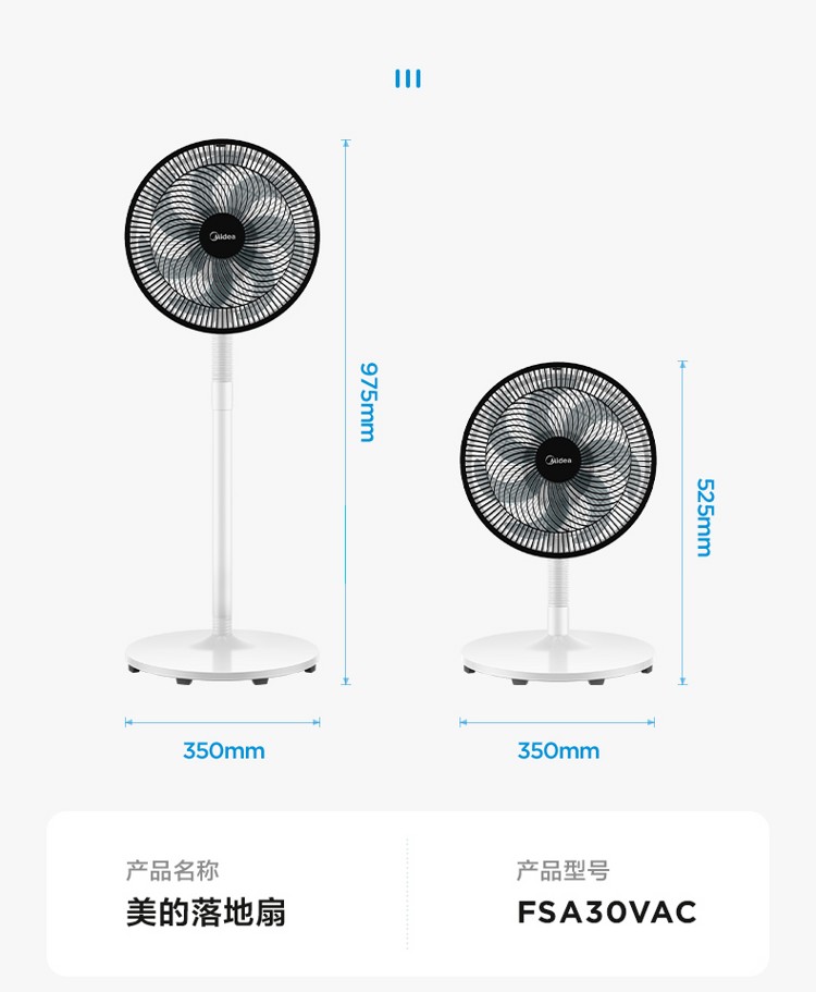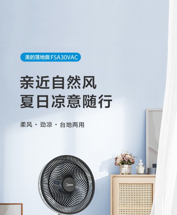 美的大风力台立式强力节能摇头落地扇FSA30VAC