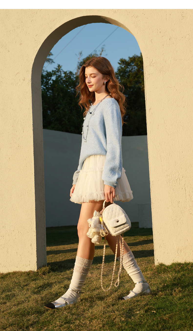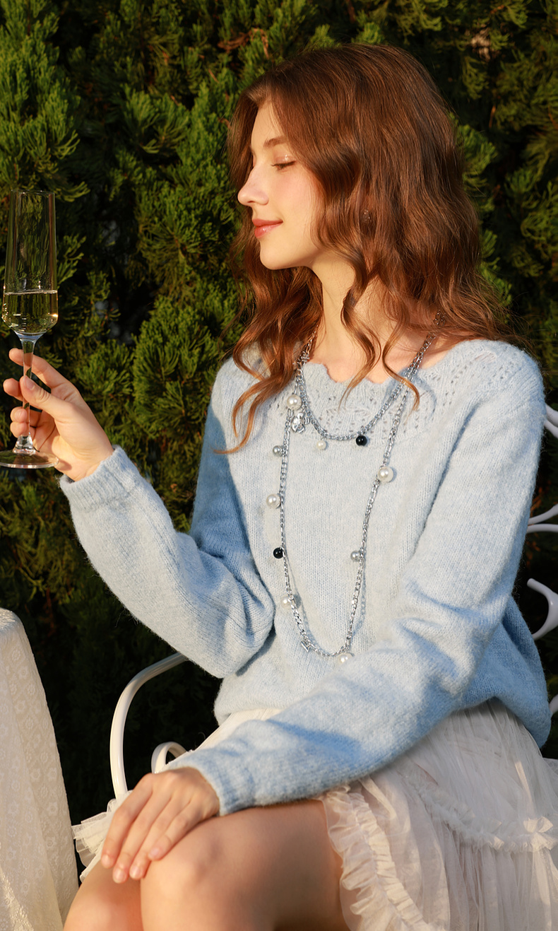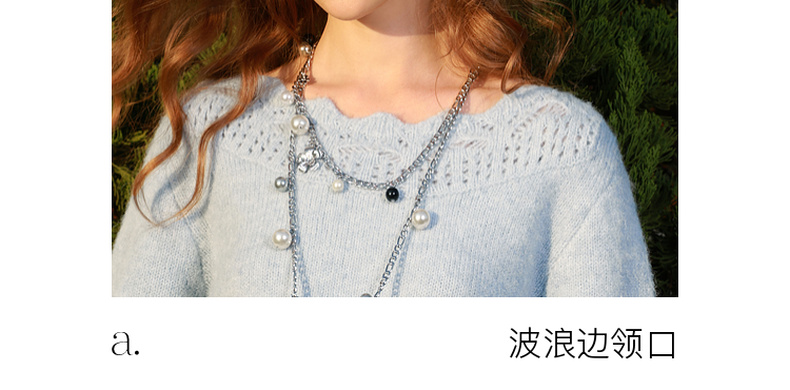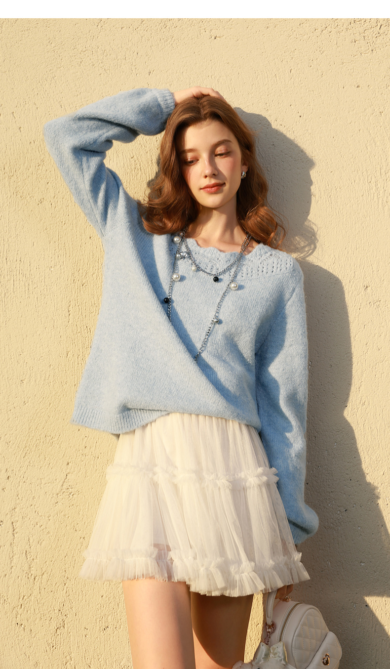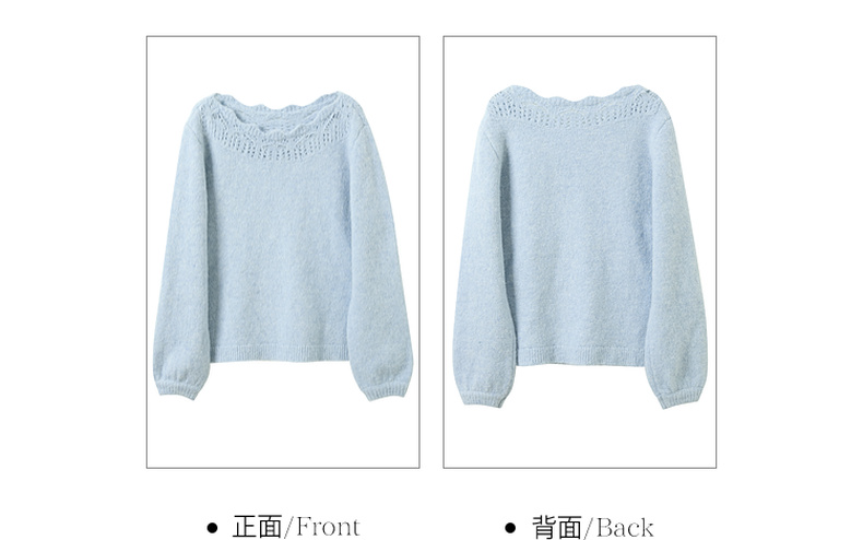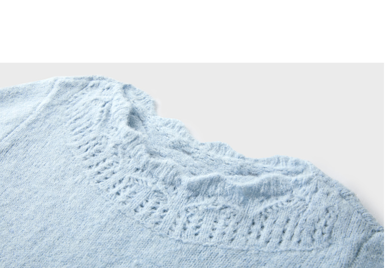 三彩2026春季新款一字领针织衫镂空毛衫宽松落肩袖套头上衣M