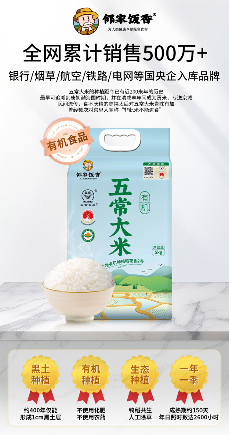 邻家饭香 有机五常大米稻花香2号 2袋5kg/袋 商品图0