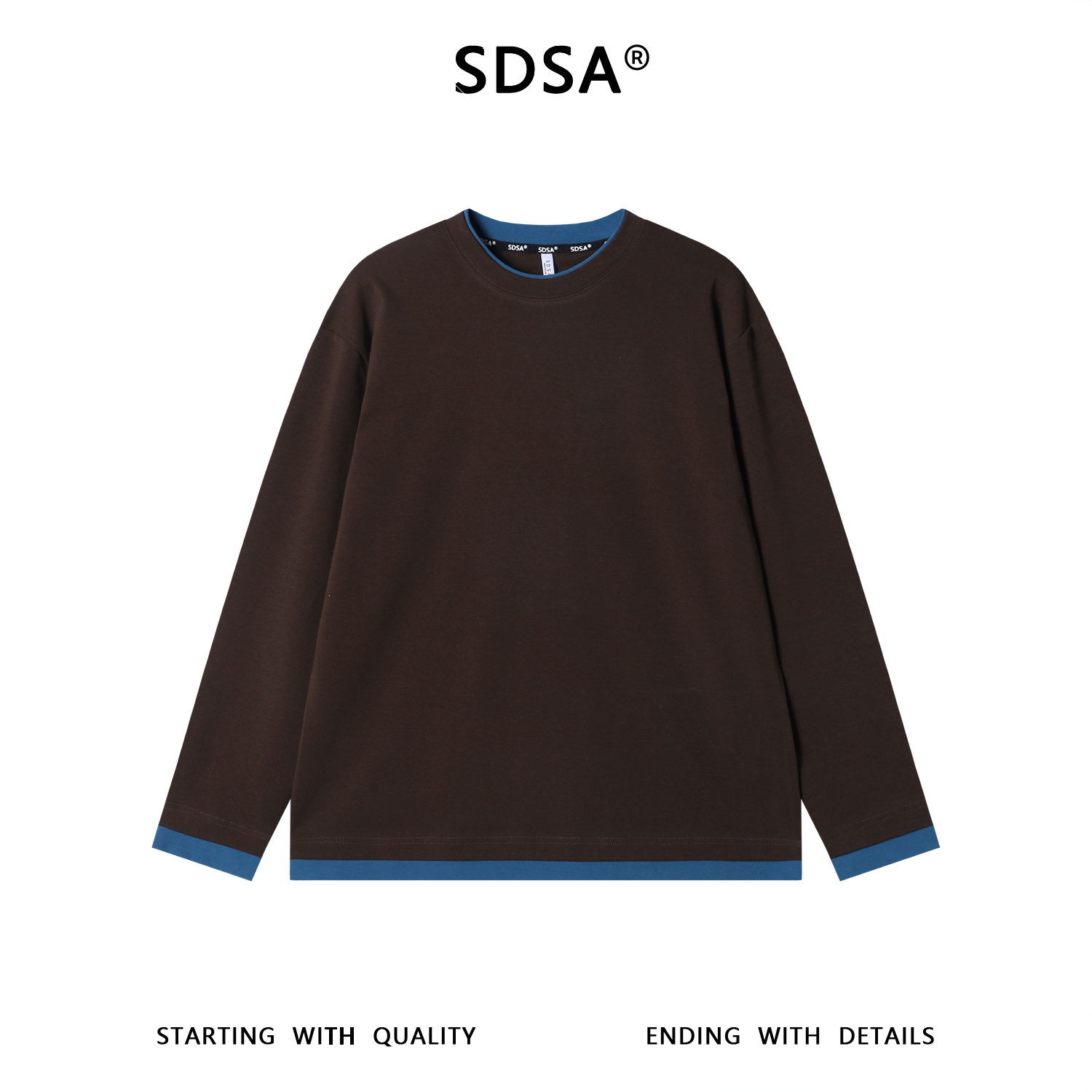 T5055SDSA男士秋冬新款痞帅男装简约撞色假两件圆领长袖T恤百搭时尚潮