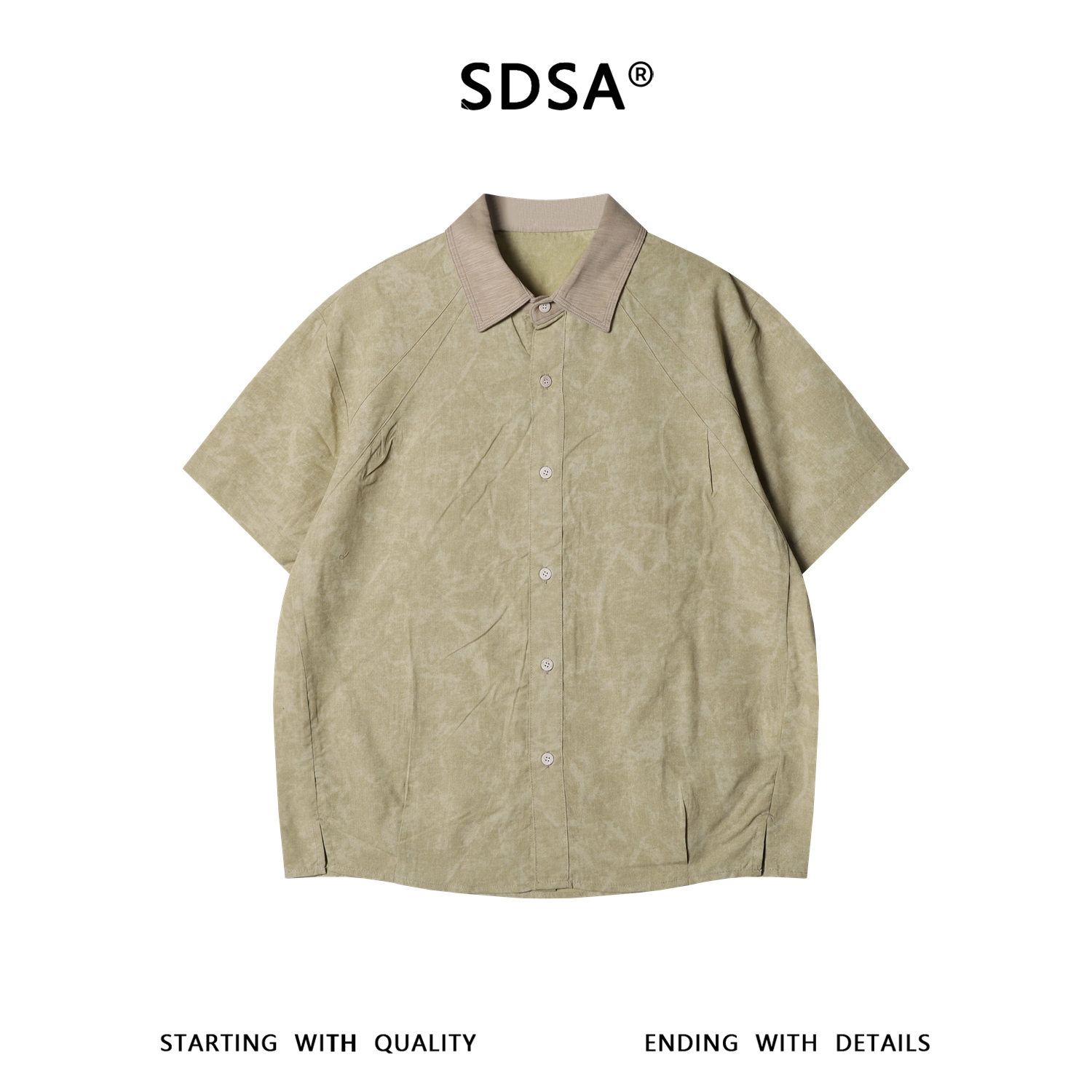SDSA男装2026新款高贵轻奢潮牌扎染拼接翻领短袖衬衫百搭宽松上衣
