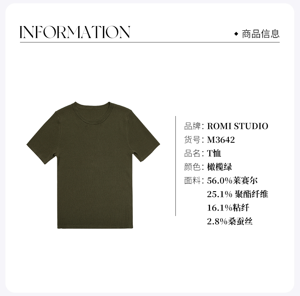 ROMI STUDIO“都市休闲”莱赛尔桑蚕丝混纺圆领休闲短袖T恤 M3642