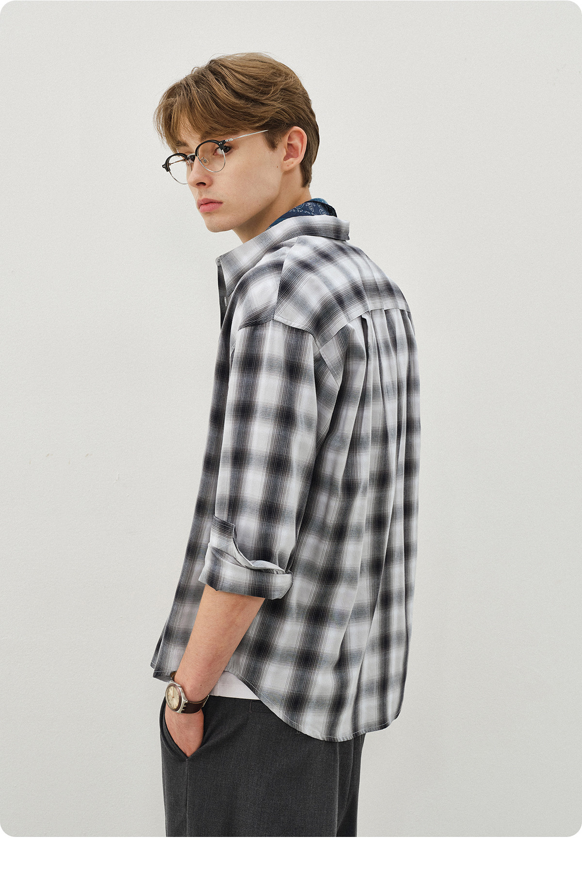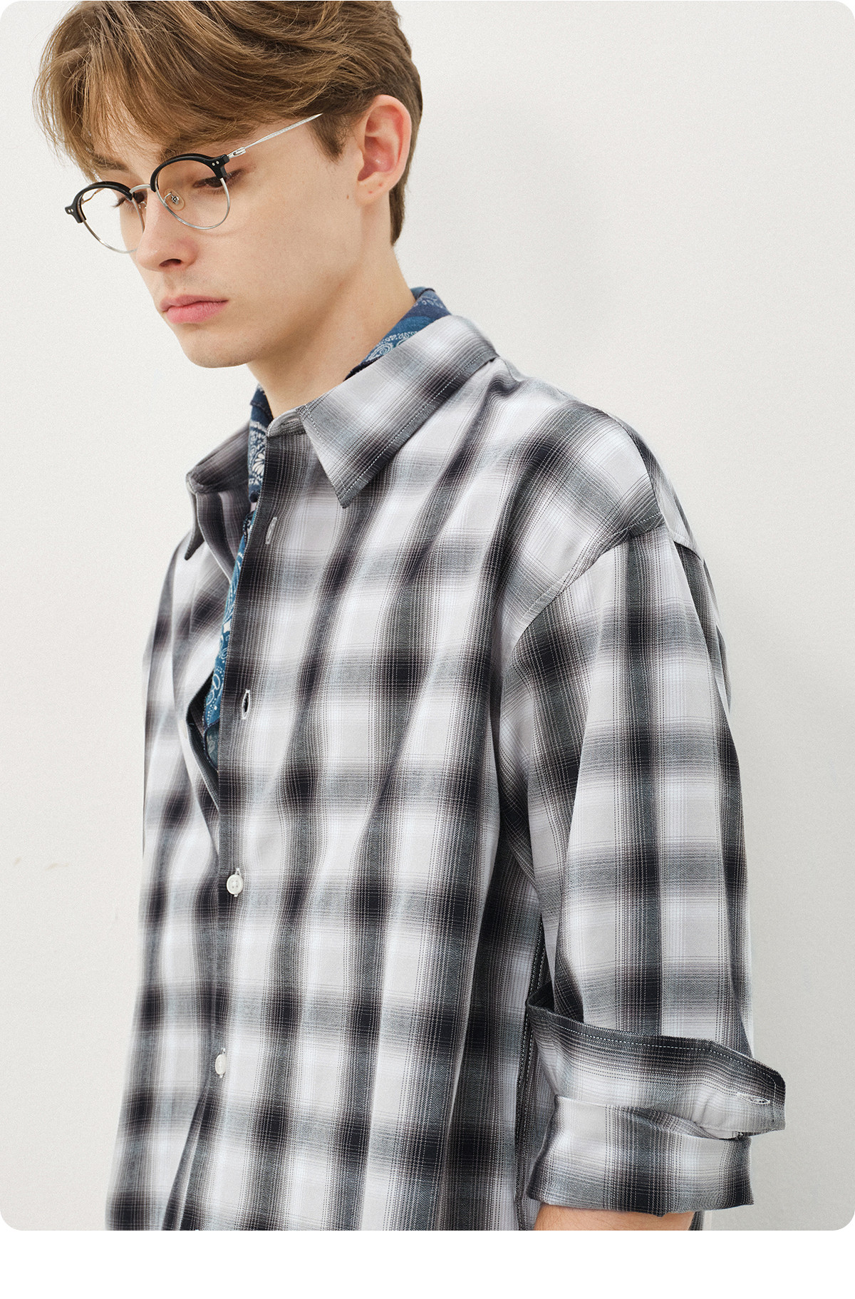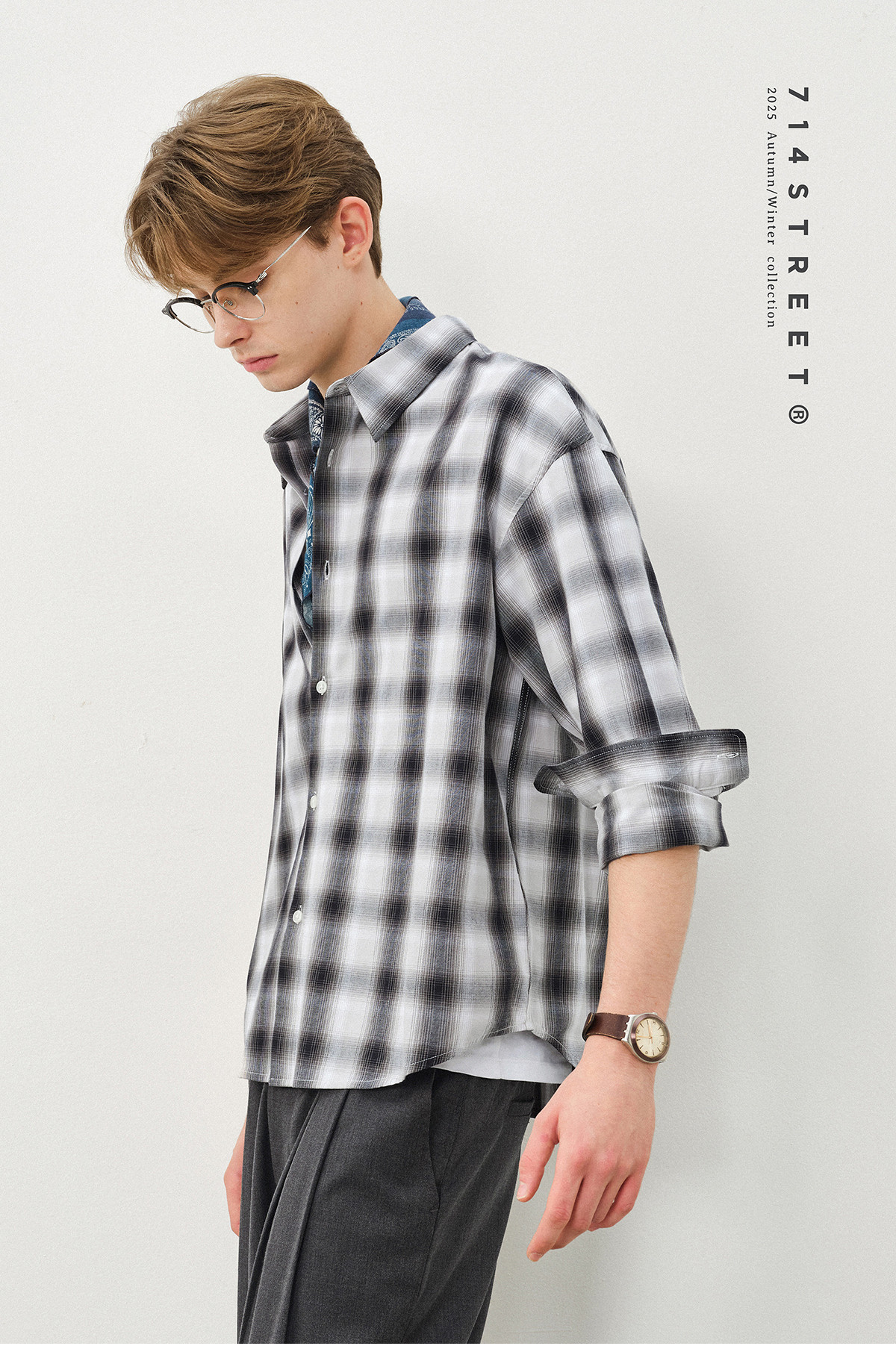 714street复古渐变格子衬衫男2025秋季宽松纯棉情侣长袖衬衣外套