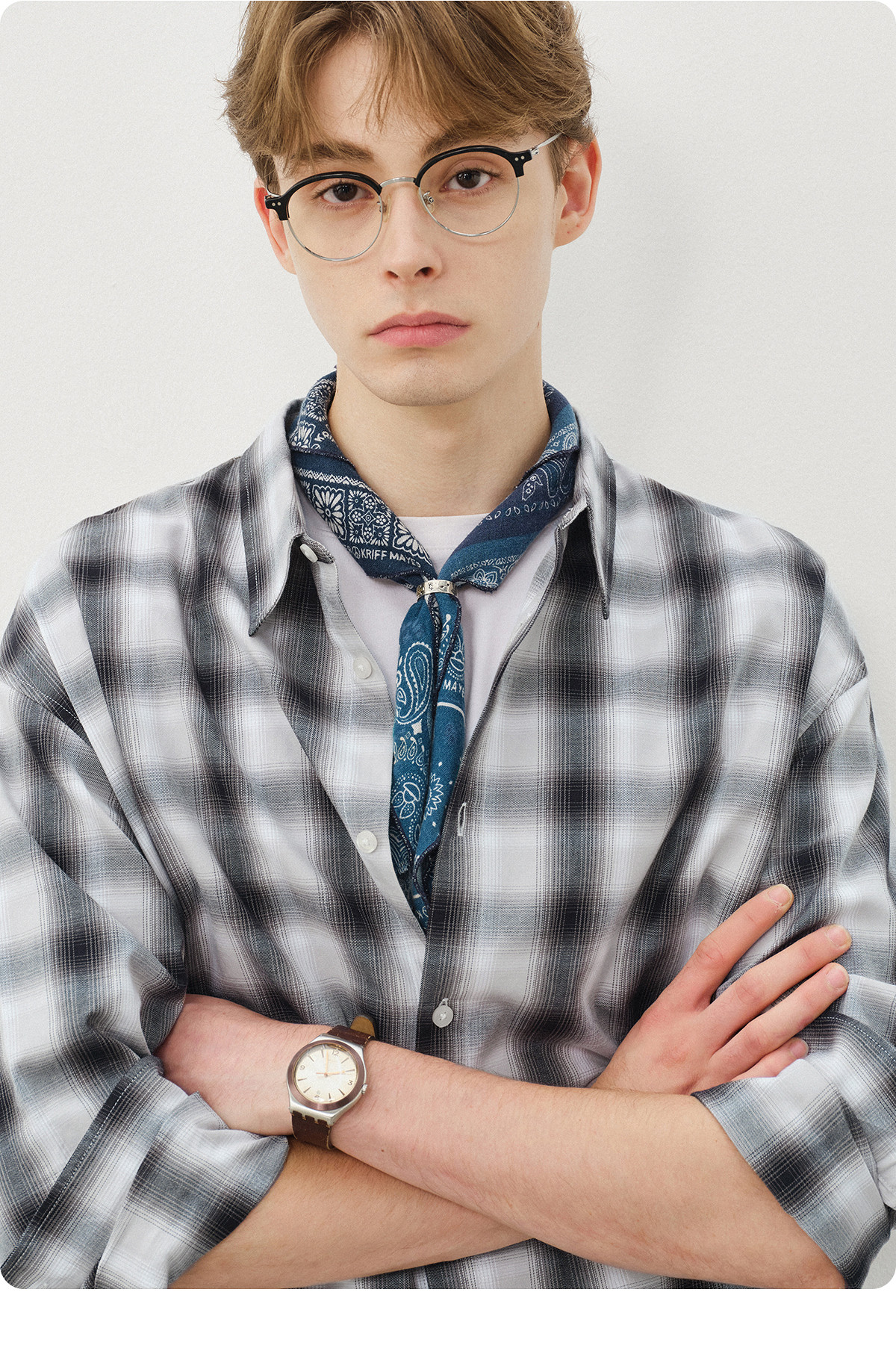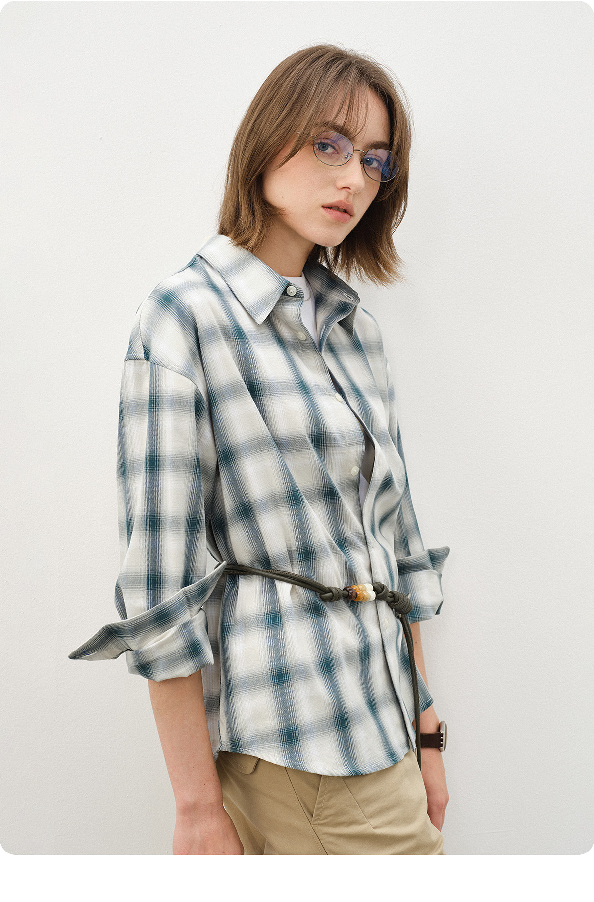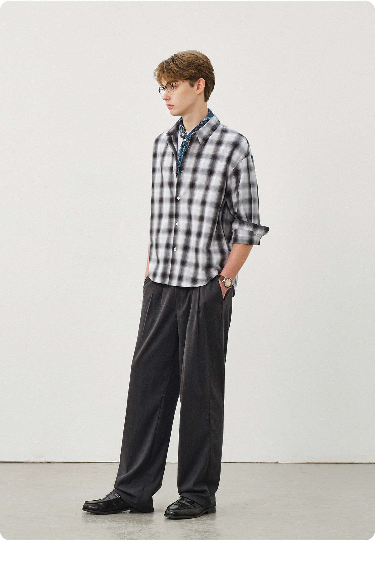 714street复古渐变格子衬衫男2025秋季宽松纯棉情侣长袖衬衣外套