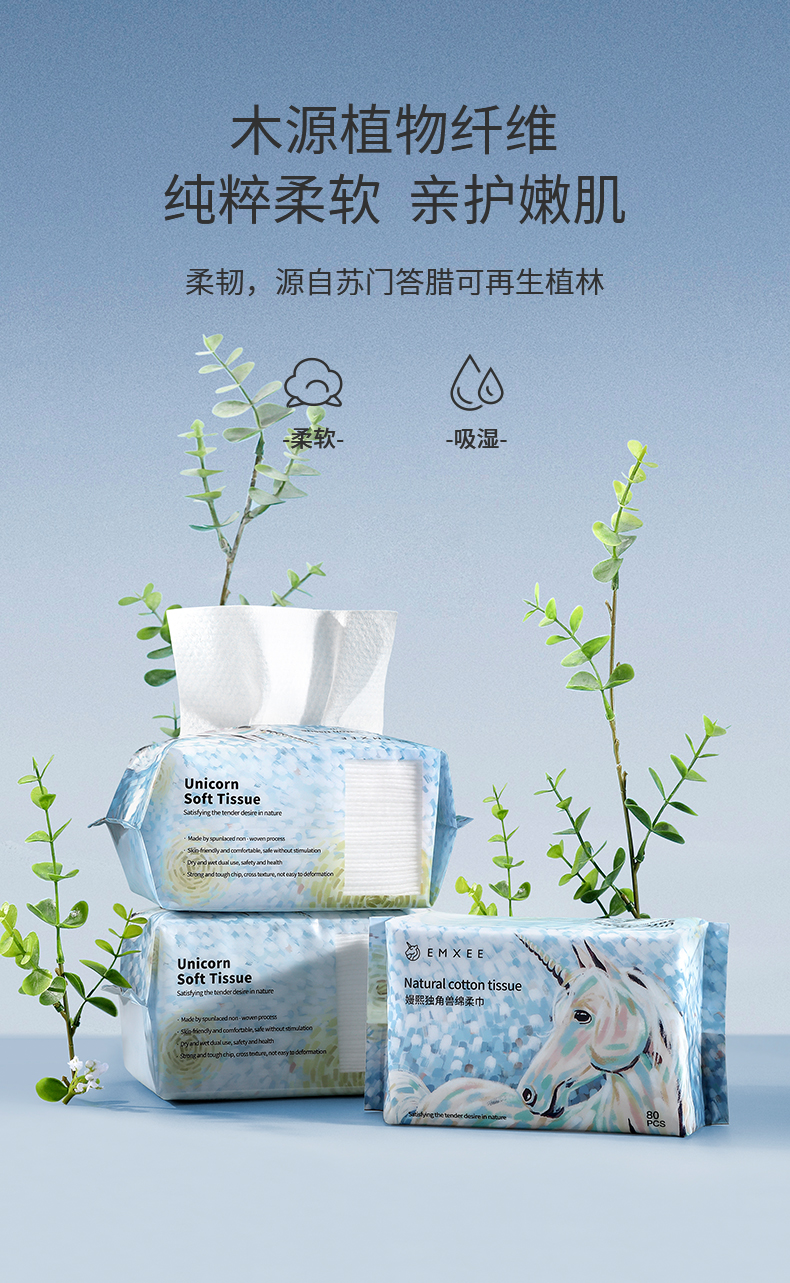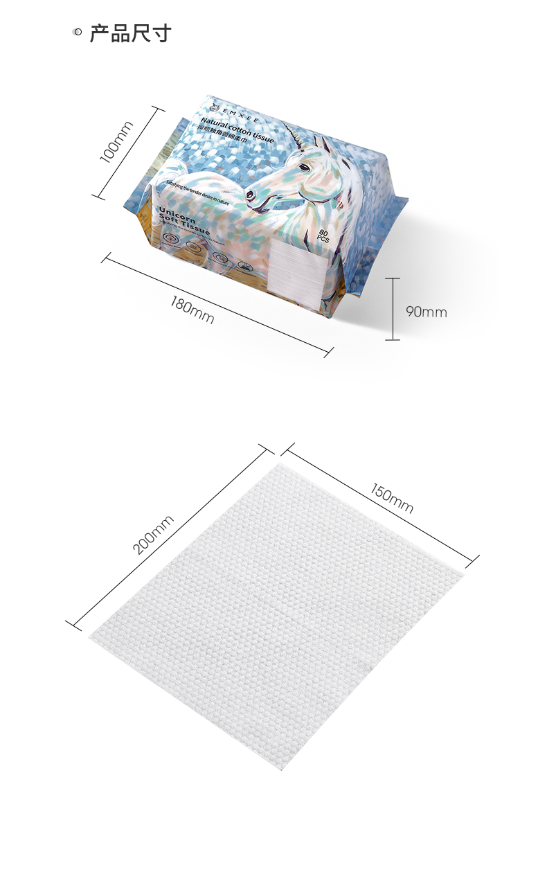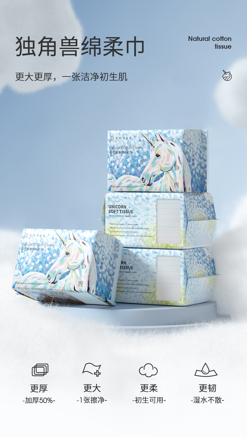EMXEE嫚熙独角兽绵柔巾婴儿成人洗脸巾干湿两用宝宝非湿巾纸棉柔巾4包