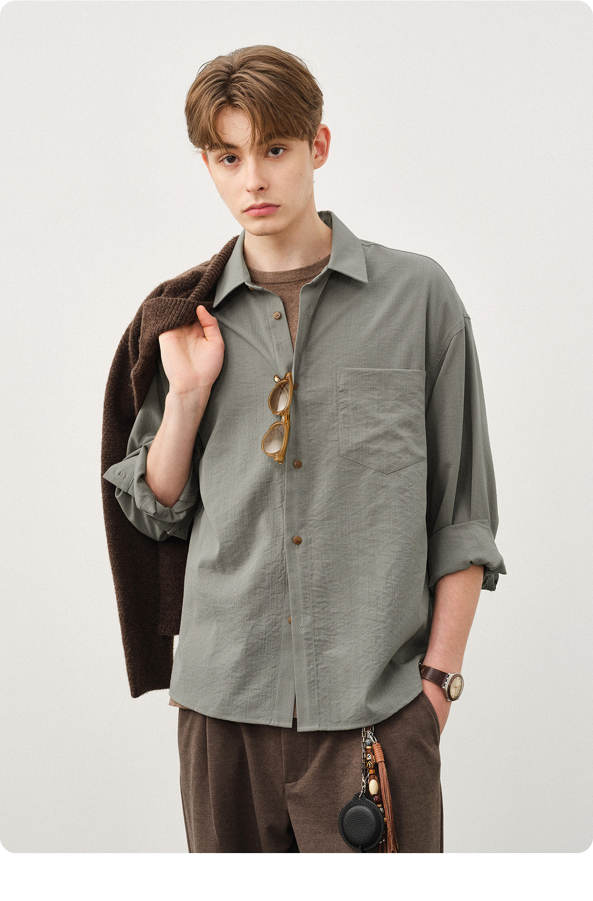 714street轻薄抗皱宽松长袖衬衫男高级感秋季新款美拉德穿搭上衣