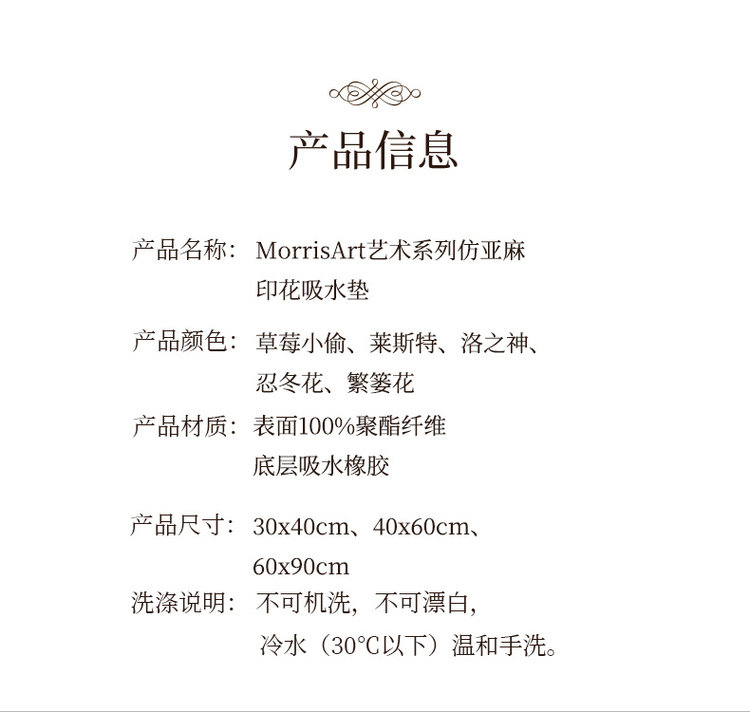 【产品名称】Morris art 仿亚麻吸水垫