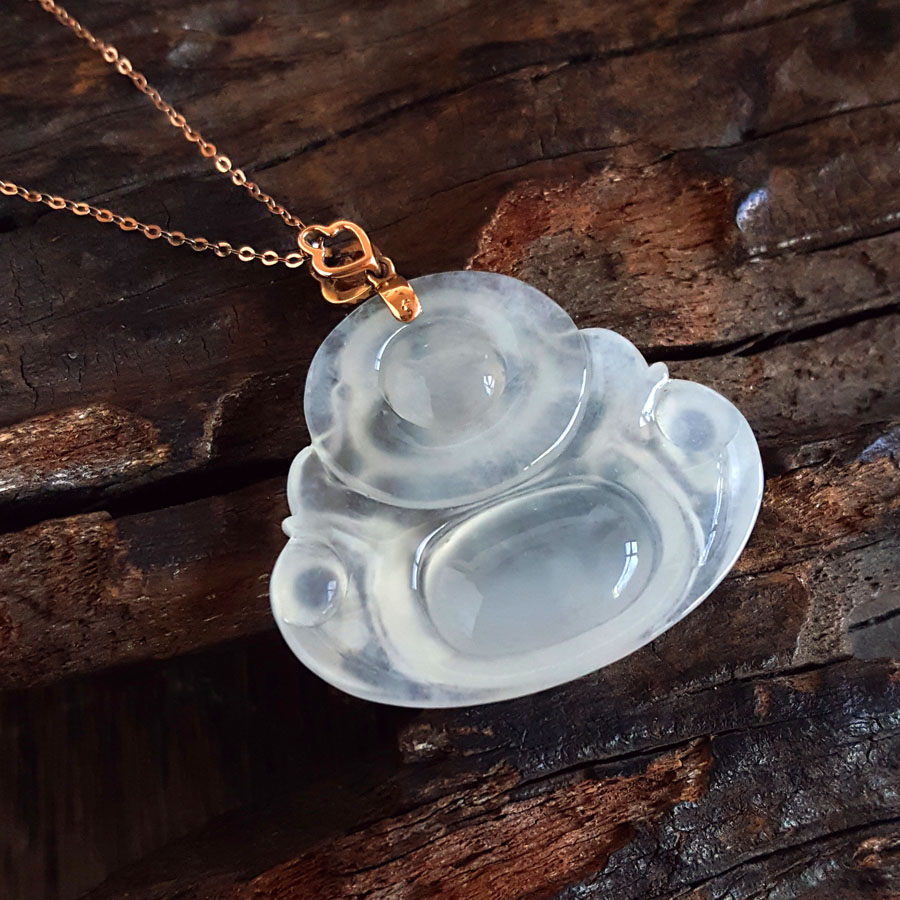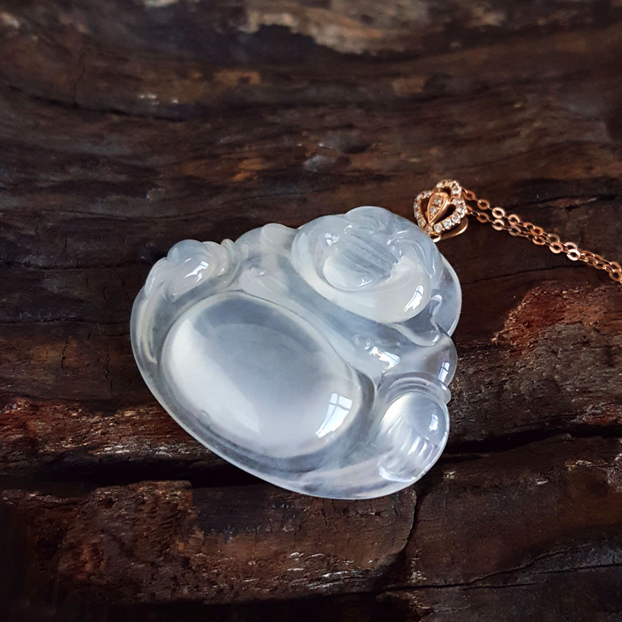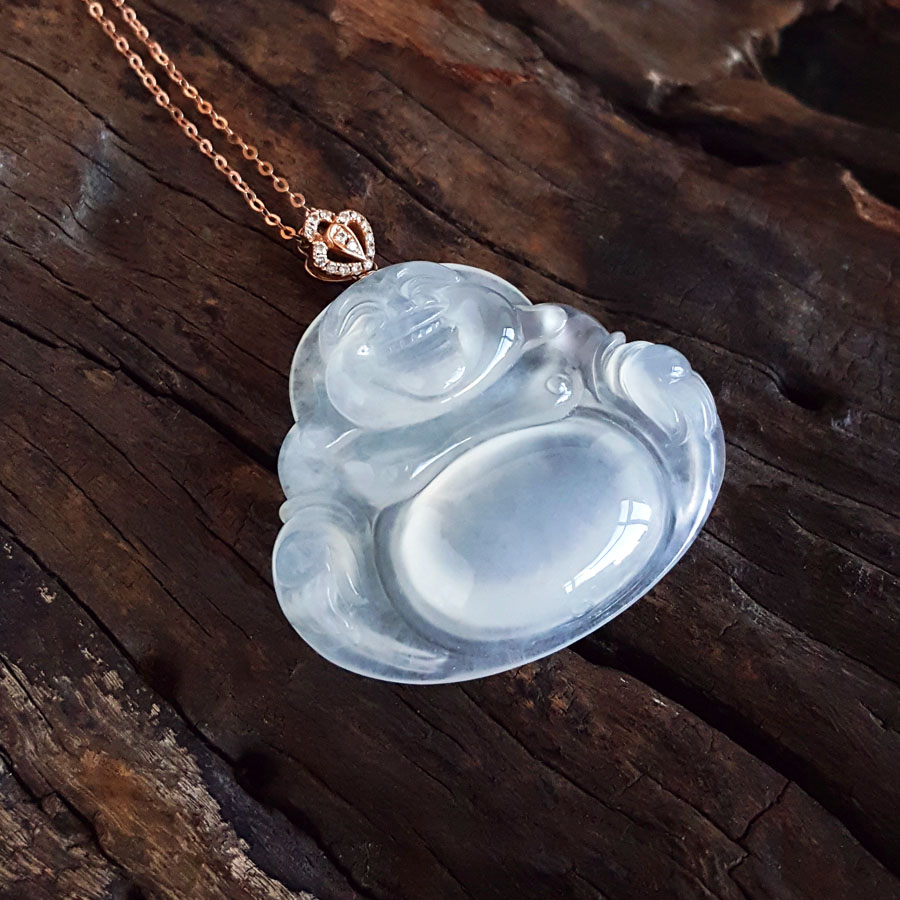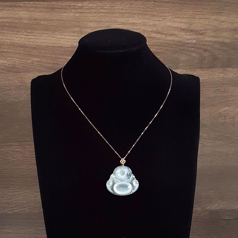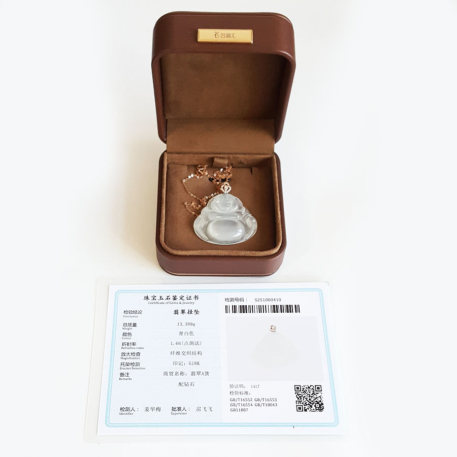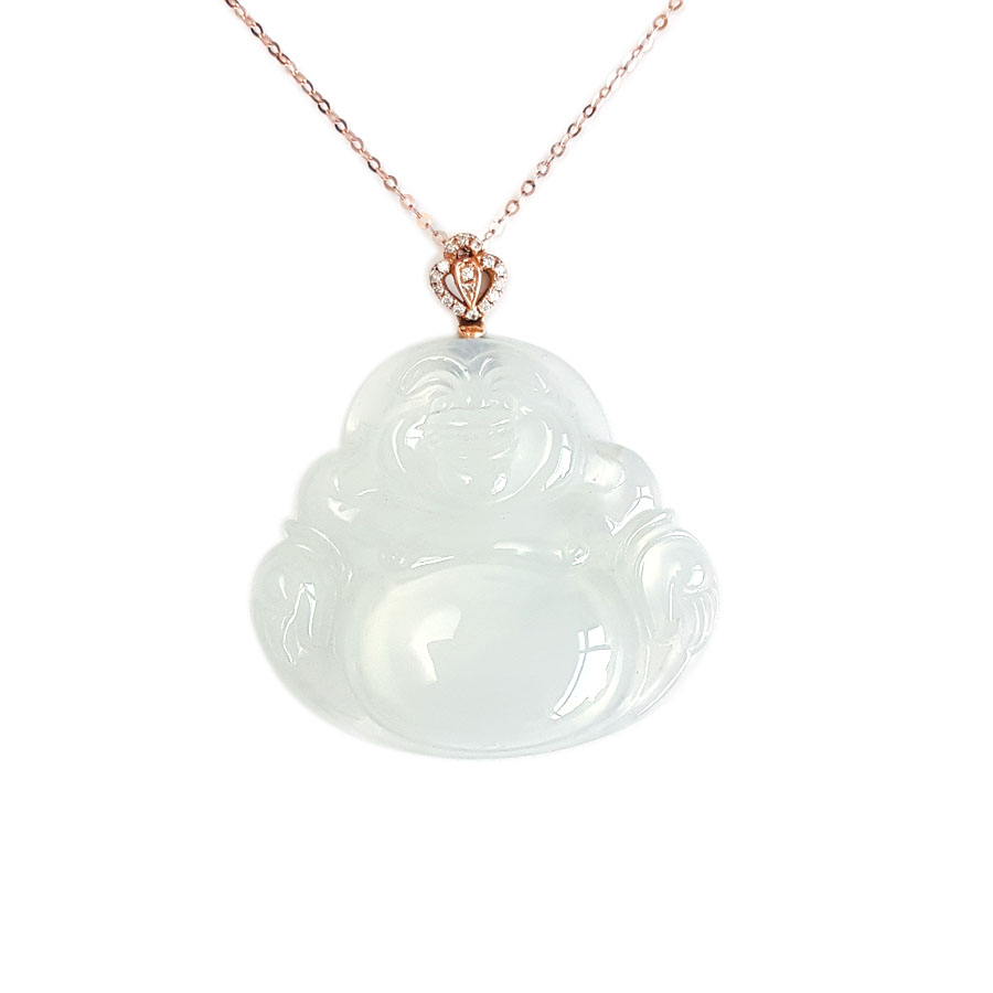 名称 | AU750收藏级玫瑰金镶钻镶天然细腻冰种佛公翡翠吊坠项链 |