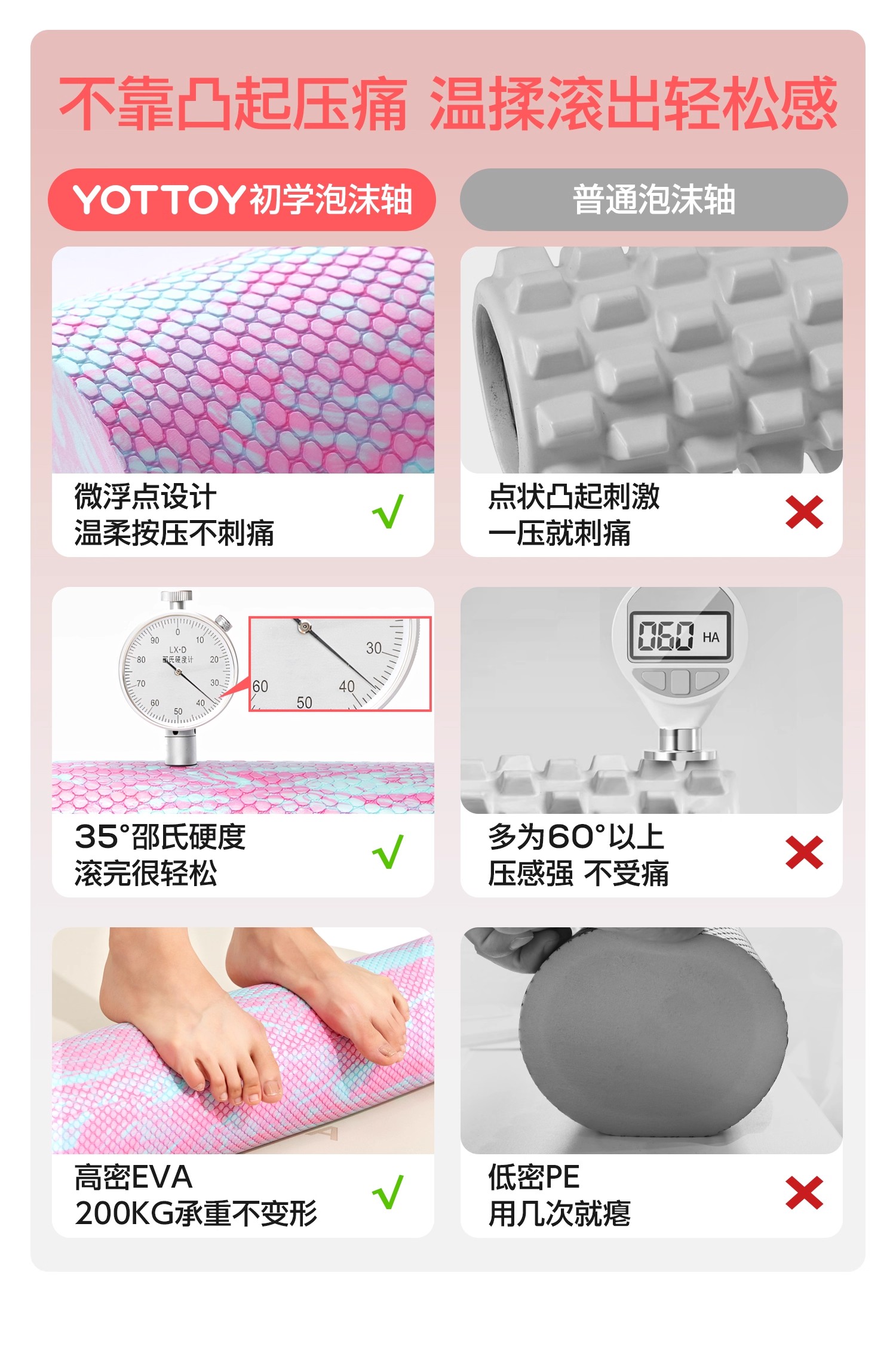 实心泡沫轴【YOTTOY】实心泡沫轴肌肉放松专业滚轴滚筒滚背神器辅助浮点初学者瑜伽柱