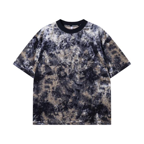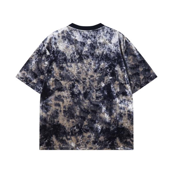 T2818夏季高级感新款潮牌撞色晕染圆领短袖T恤宽松复古情侣套头上衣
