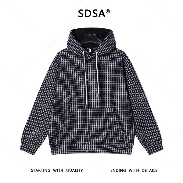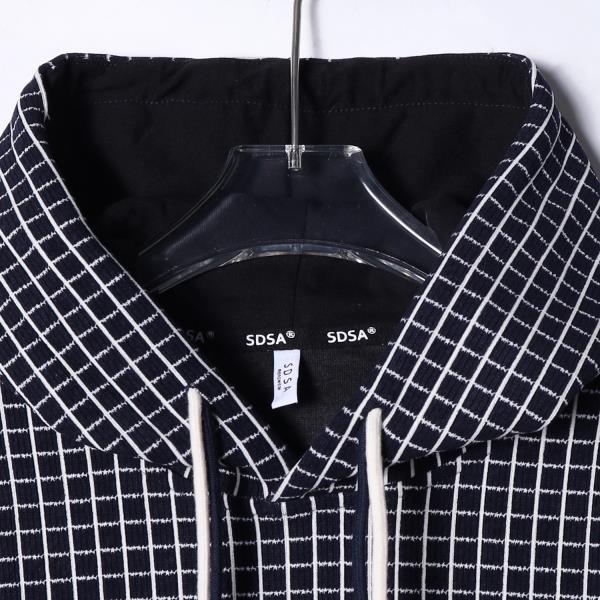 WY1086SDSA男士秋冬新款痞帅男装撞色格纹格子设计抽绳连帽卫衣复古百搭