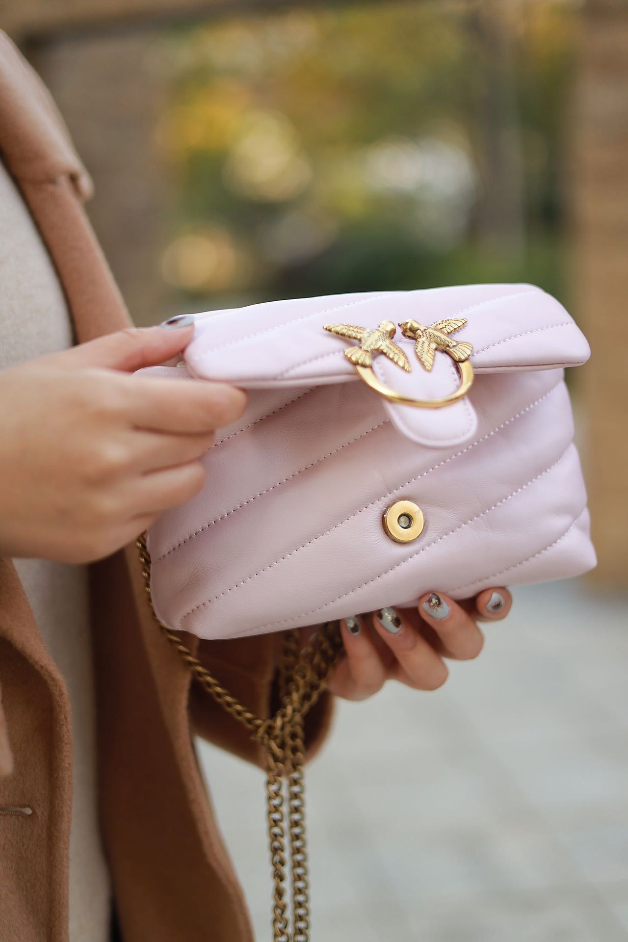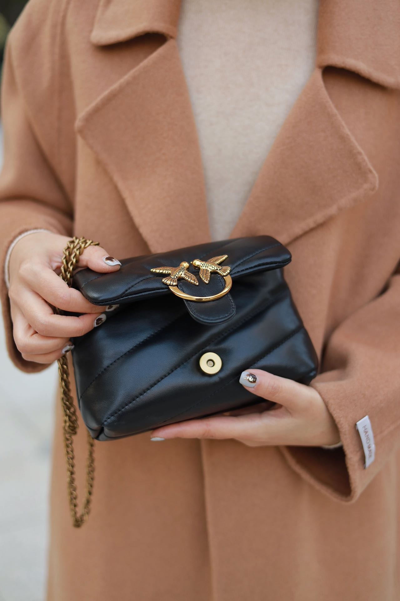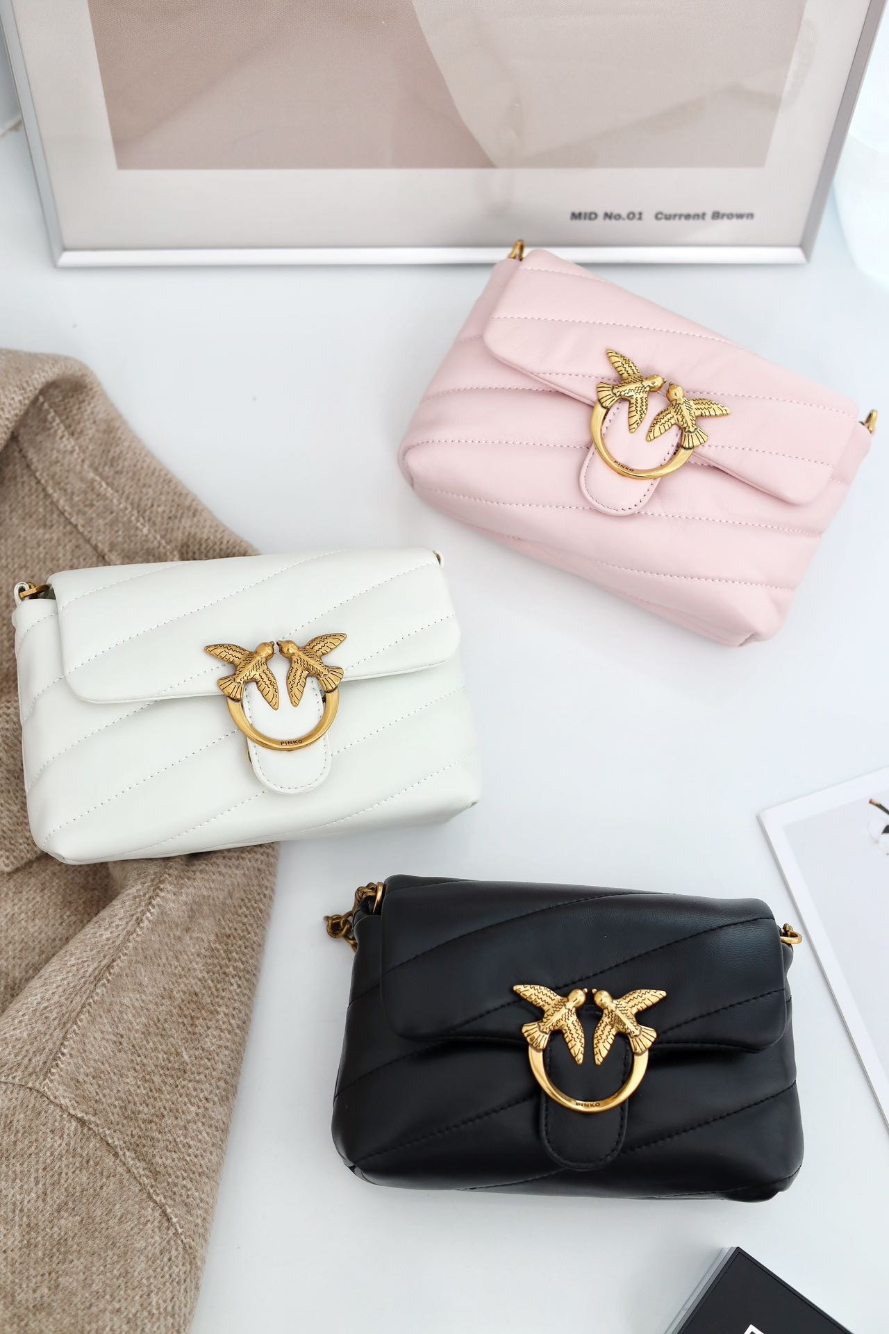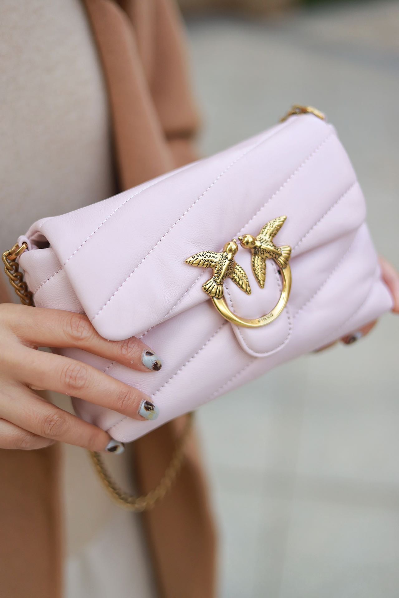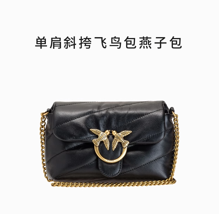 PINKO羊皮绗缝PUFF小号单肩斜挎飞鸟包燕子包
